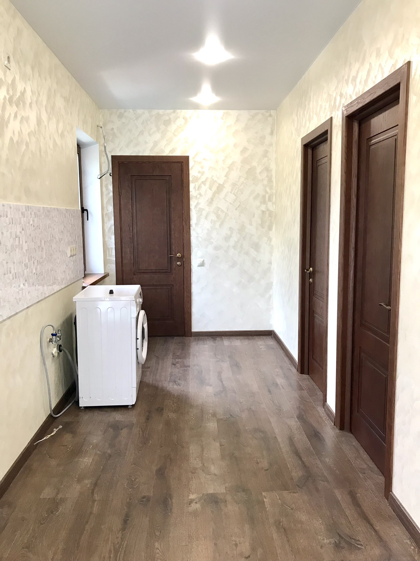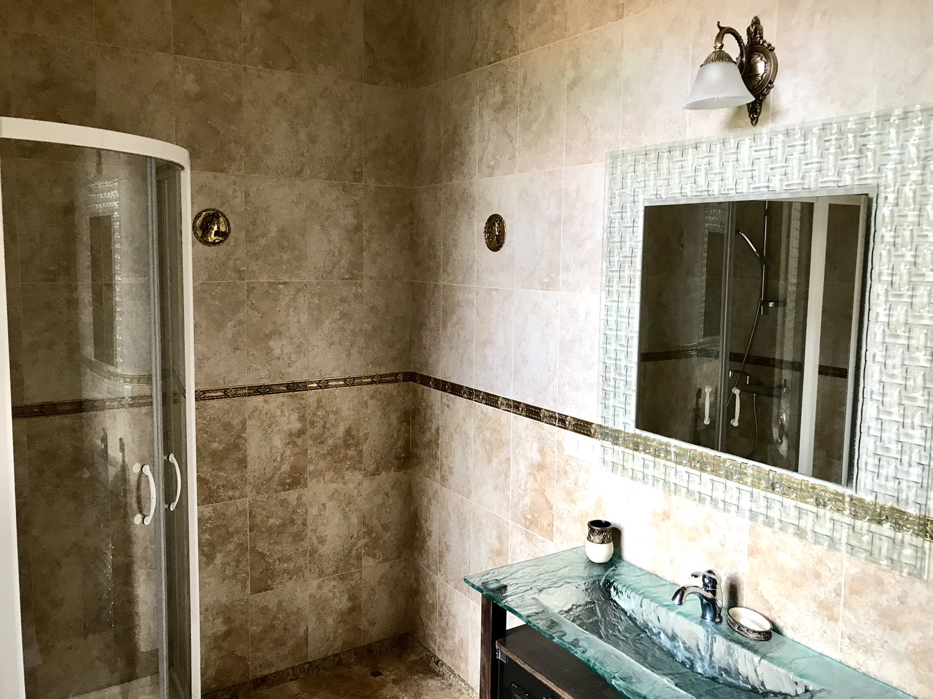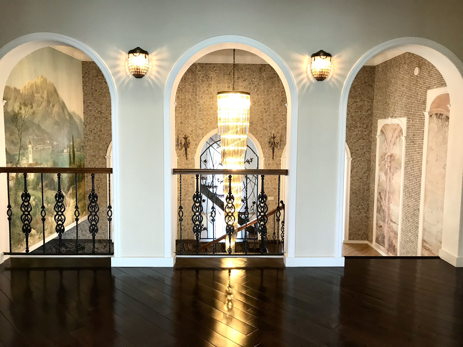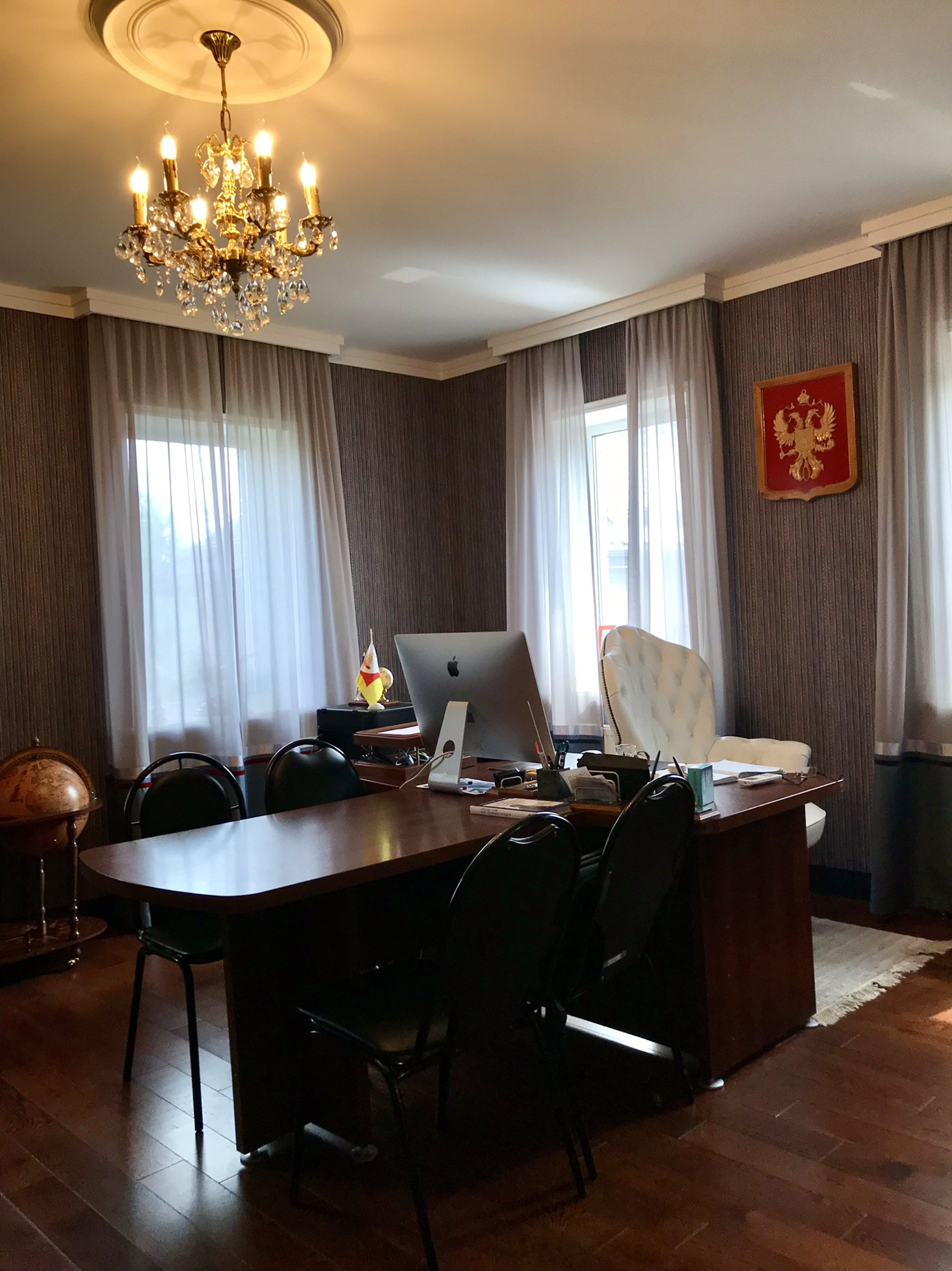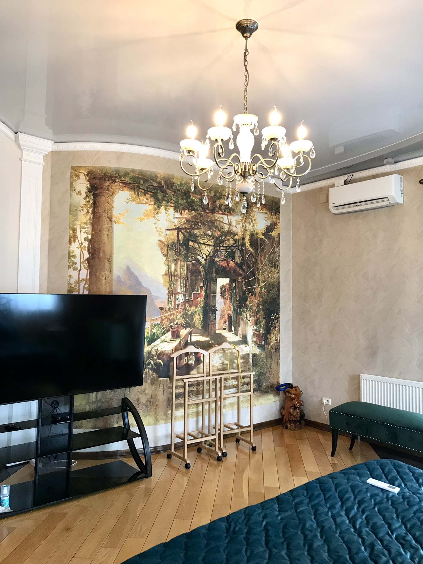 В доме выполнен дорогой качественный ремонт, вся мебель изготовлена на заказ, дизайнерские люстры, стеклянные витражи, на стенах выполнена фреска, финская сантехника. Полы на первом, втором и третьем этажах комбинированные: итальянская плитка и паркетная доска, установлен подогрев полов.