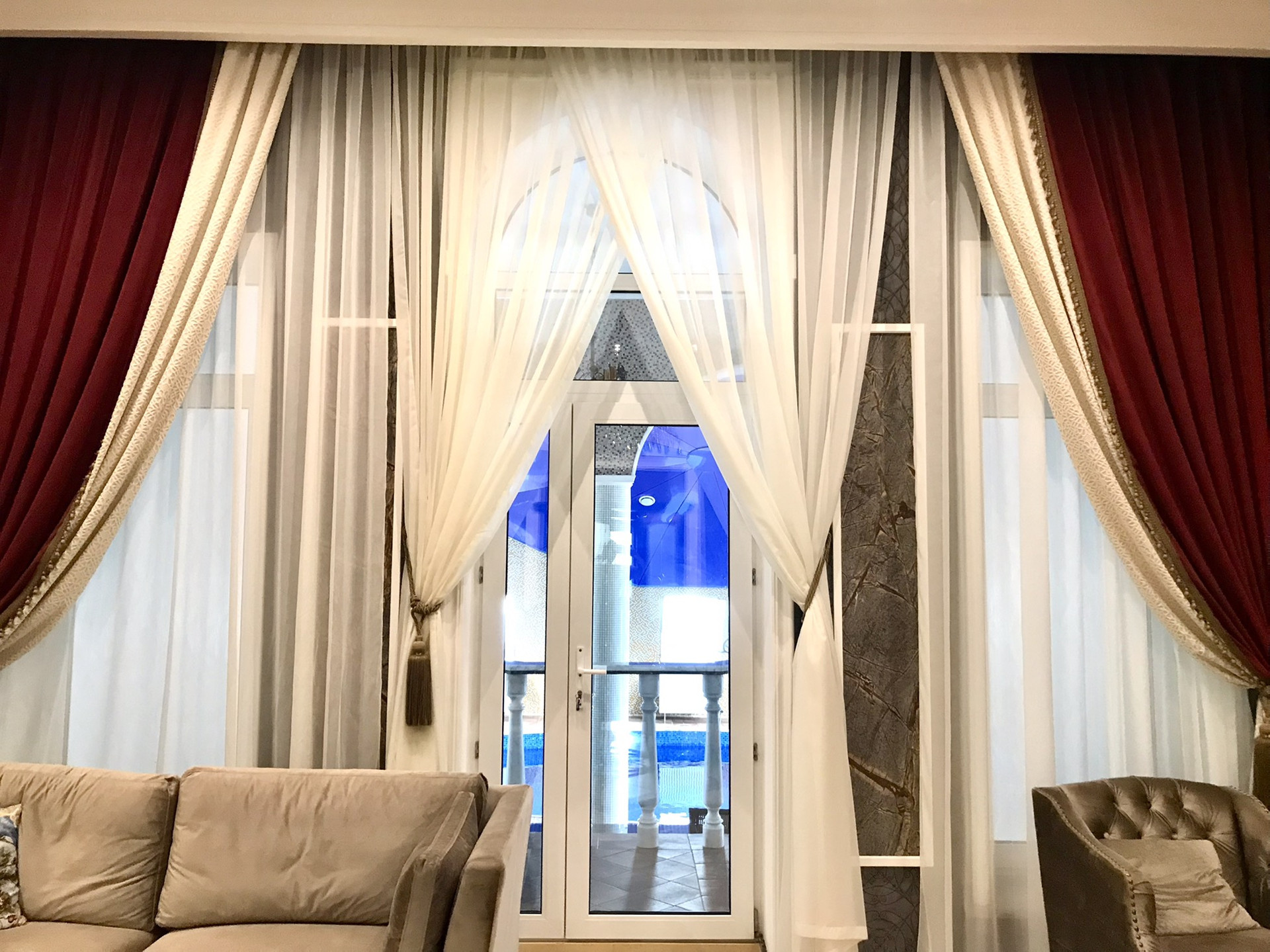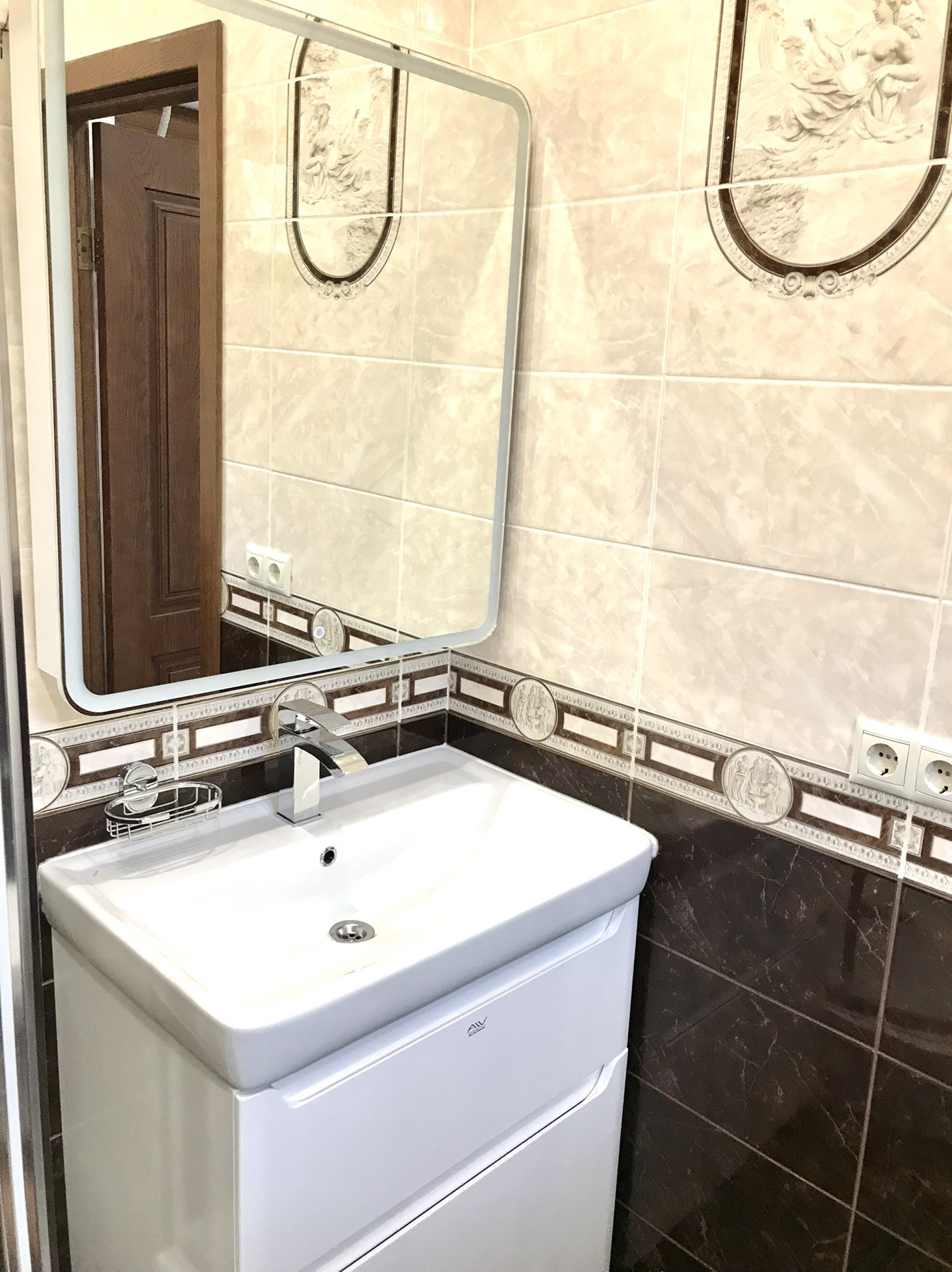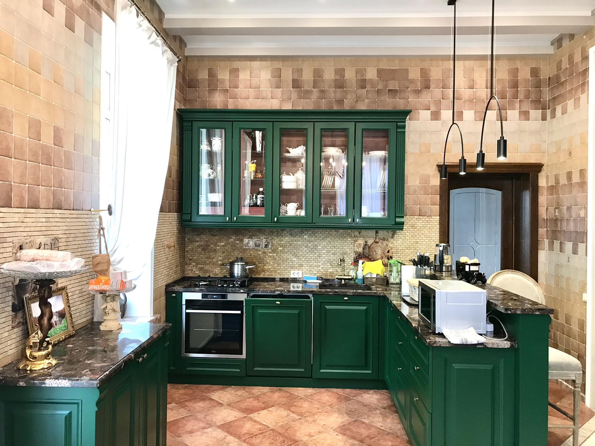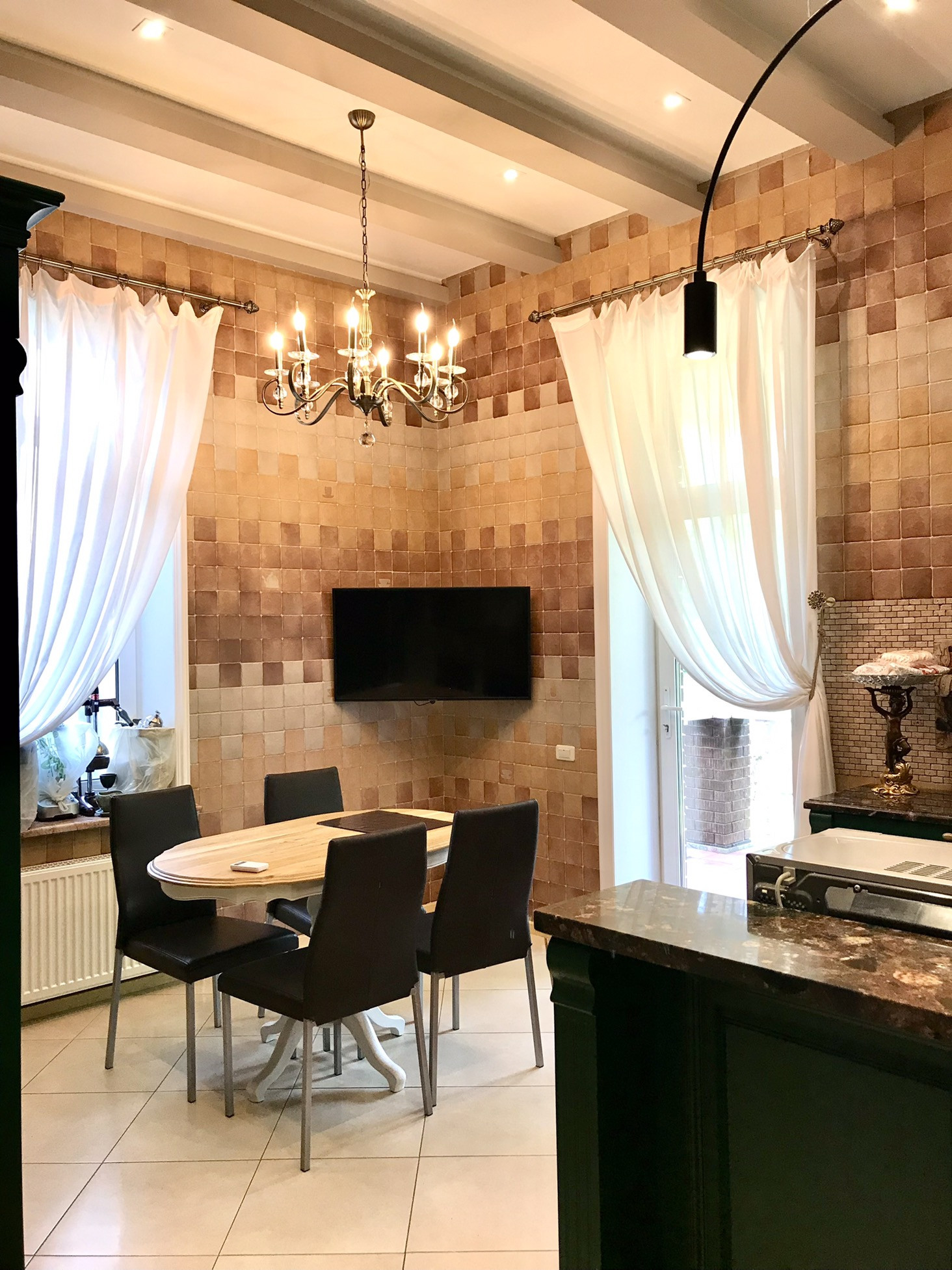В доме выполнен дорогой качественный ремонт, вся мебель изготовлена на заказ, дизайнерские люстры, стеклянные витражи, на стенах выполнена фреска, финская сантехника. Полы на первом, втором и третьем этажах комбинированные: итальянская плитка и паркетная доска, установлен подогрев полов.
