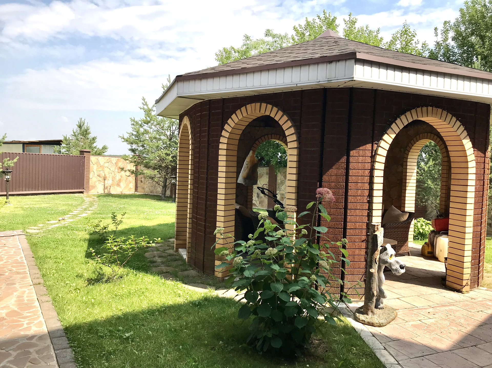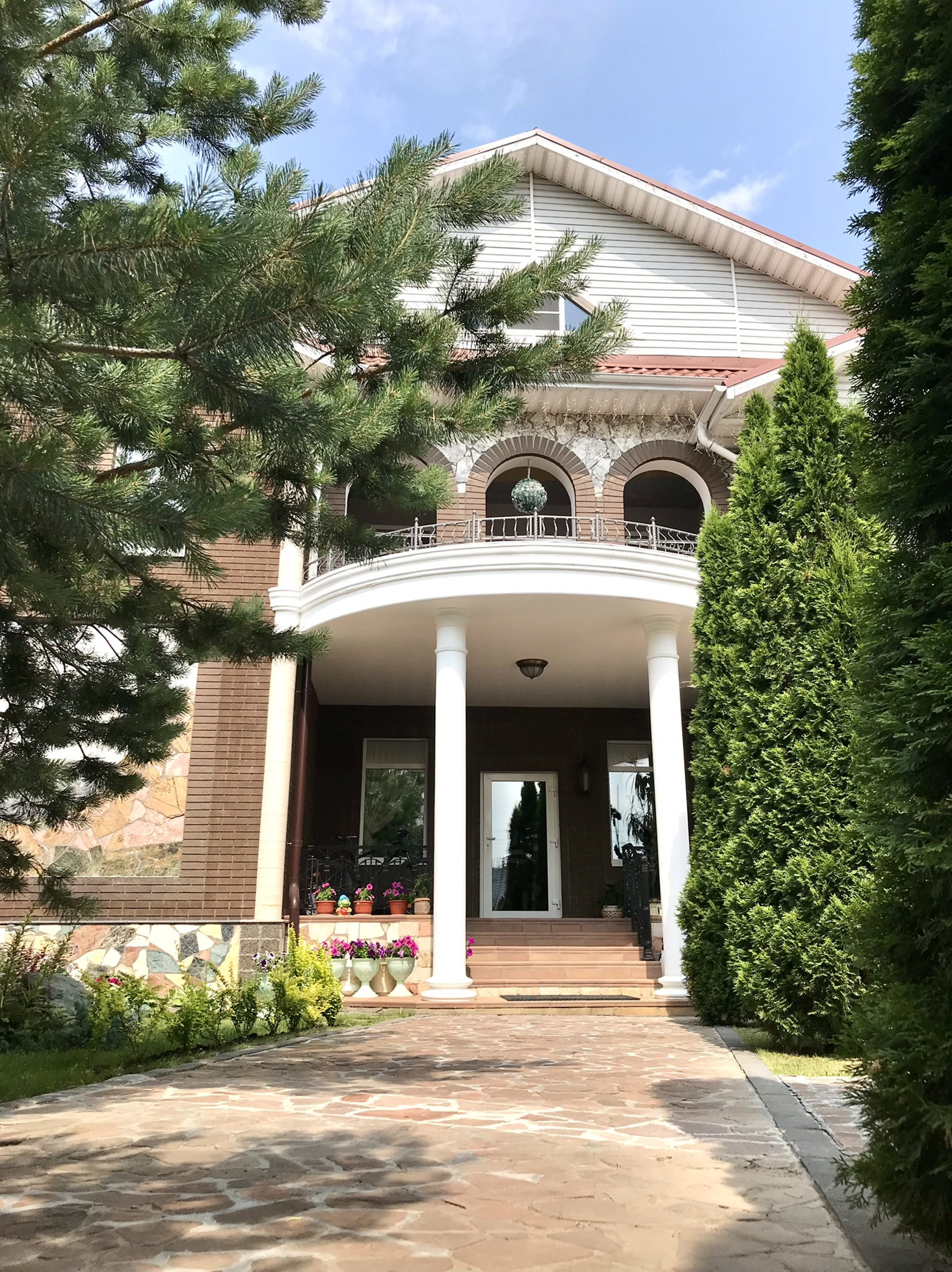 Характеристика Дома: фундамент ленточный, стены облицовочный кирпич, двухкамерное остекление, между первым и вторым этажами монолитная винтовая лестница, крыша металлочерепица.