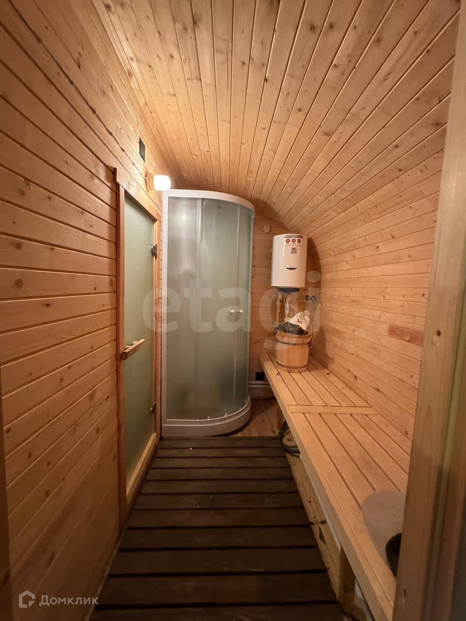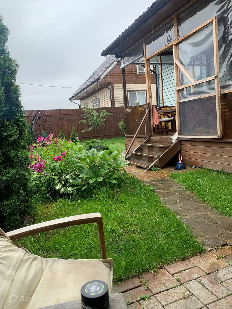 Дом деревянный, построен по каркасной технологии, очень теплый. Отопление центральное (от местной котельной), электричество 15 кВт, септик, скважина.