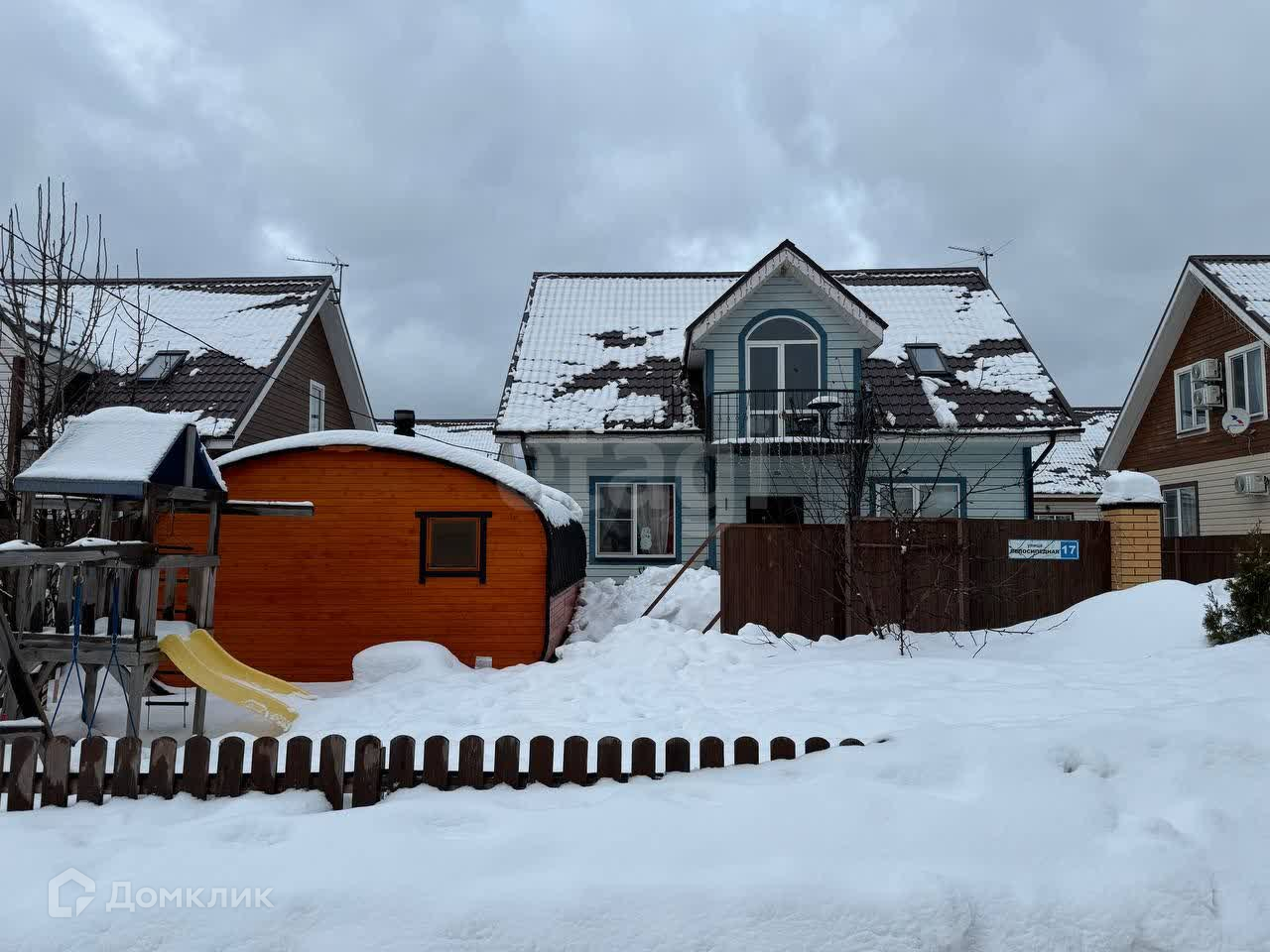 Продается двухэтажный дом, 146,8 м2, 4 сотки (фактически 5, на фото видно, оборудован приусадебный участок). На участке сделан ландшафтный дизайн.