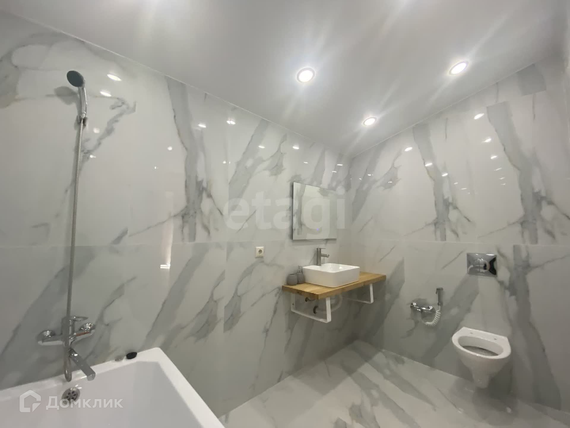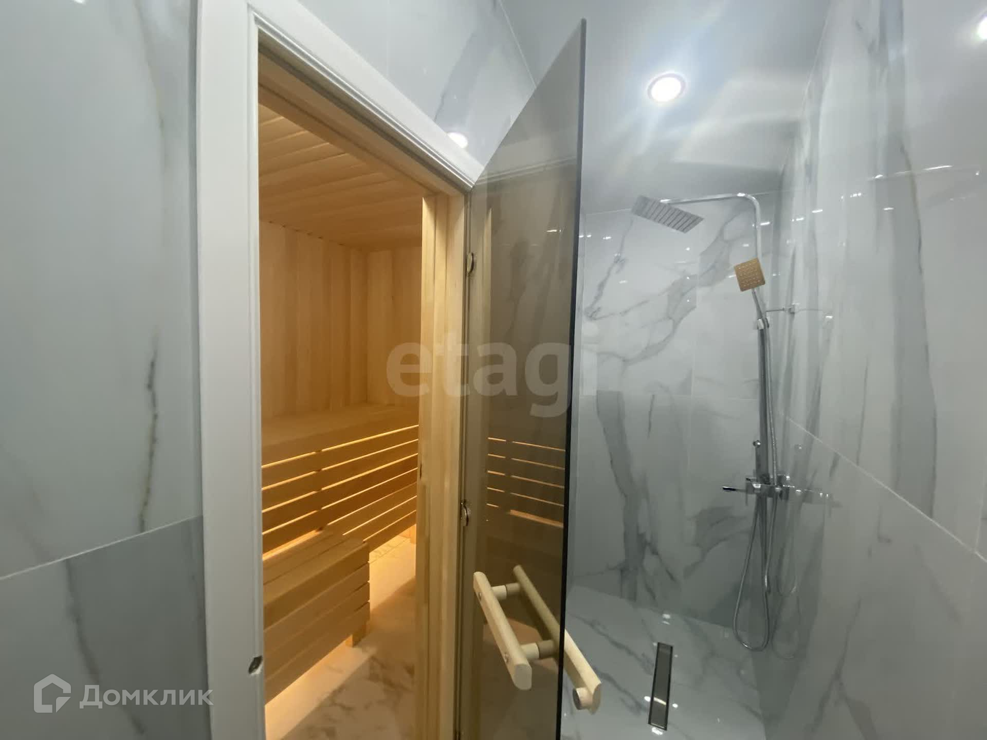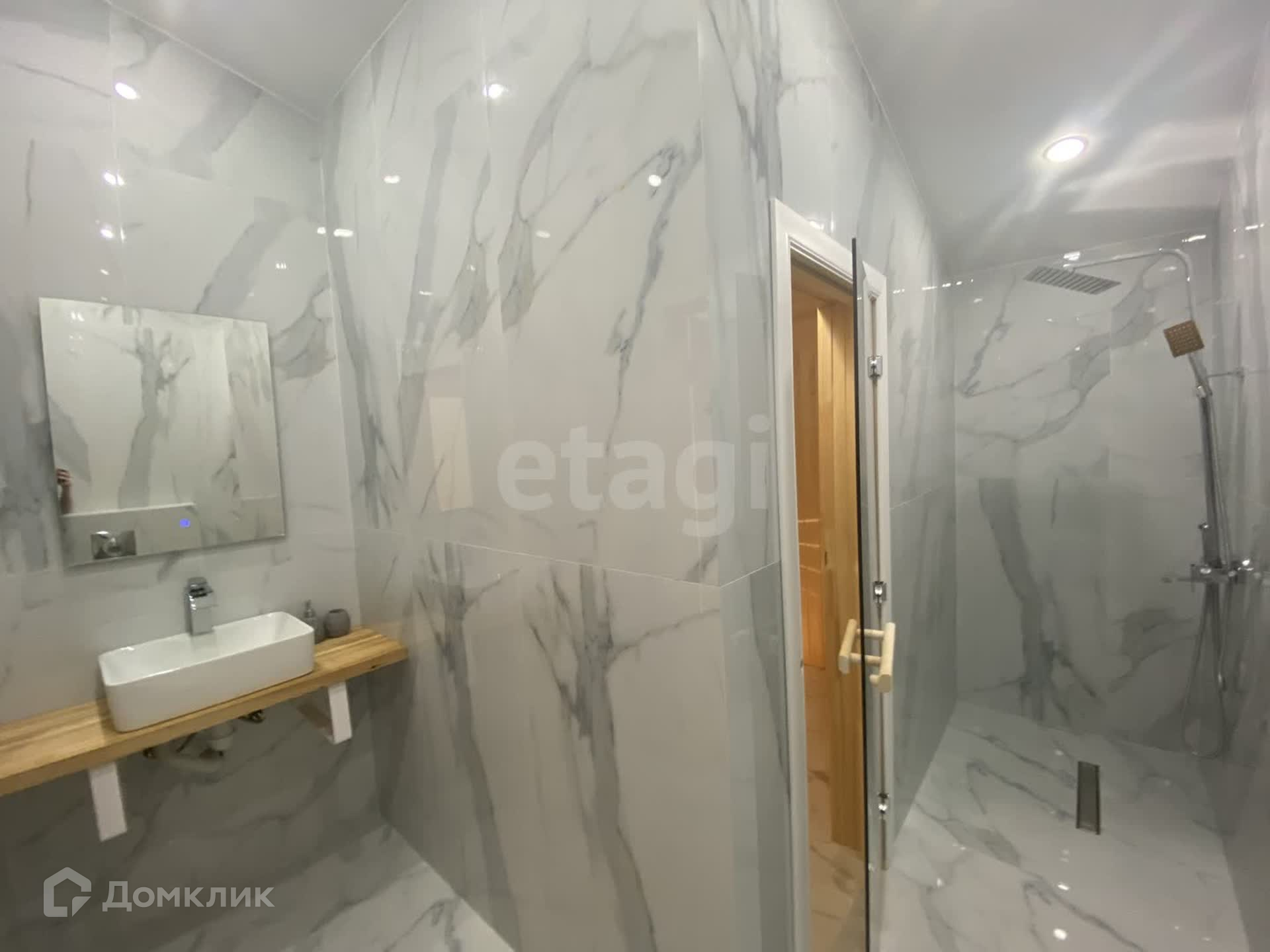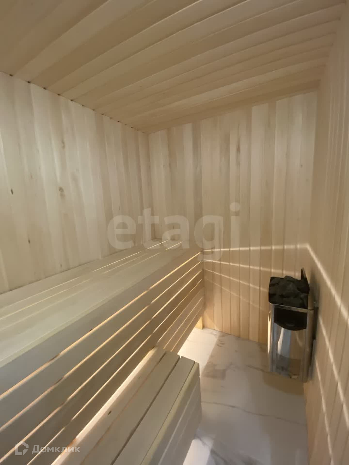 Дом имеет теплый пол и утепление каменной ватой 200, крыша 250. Отделка выполнена в стиле имитации бруса, на полу установлен премиальный кварц винил. В доме два санузла, облицованные керамогранитом, с современной сантехникой.