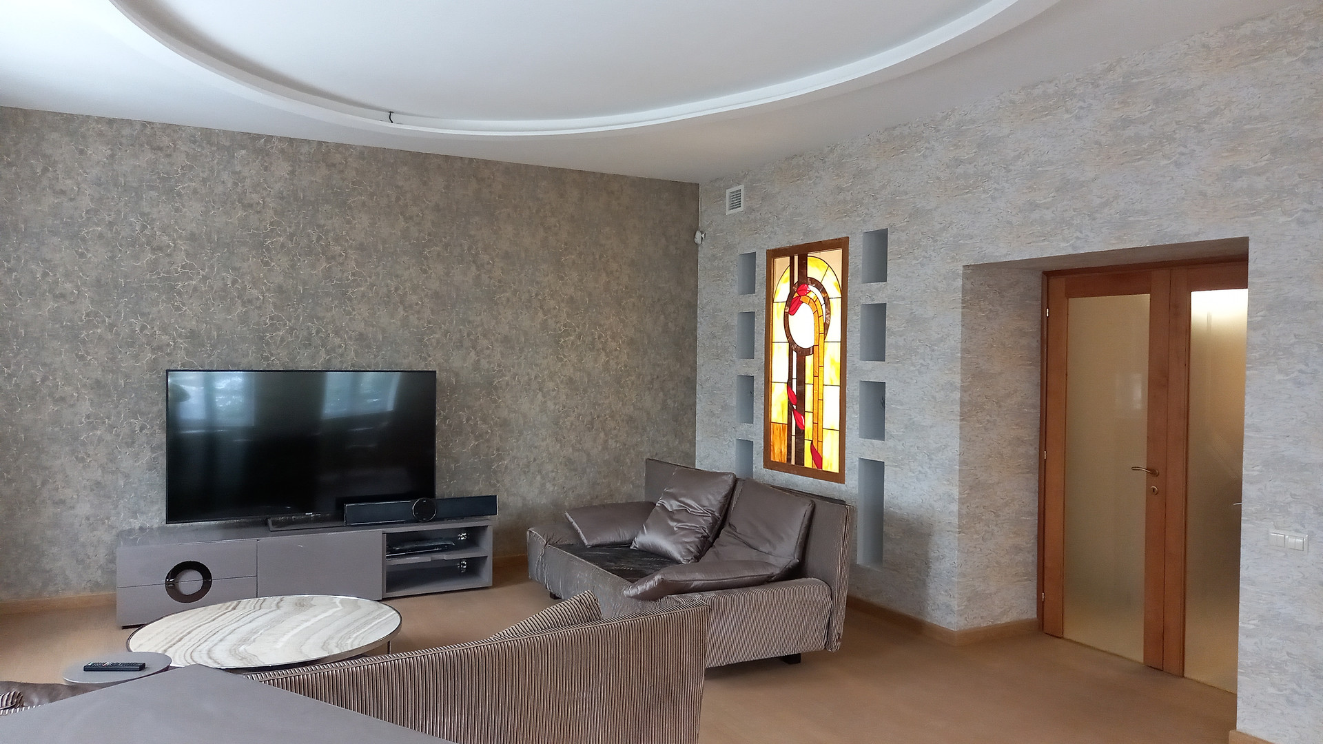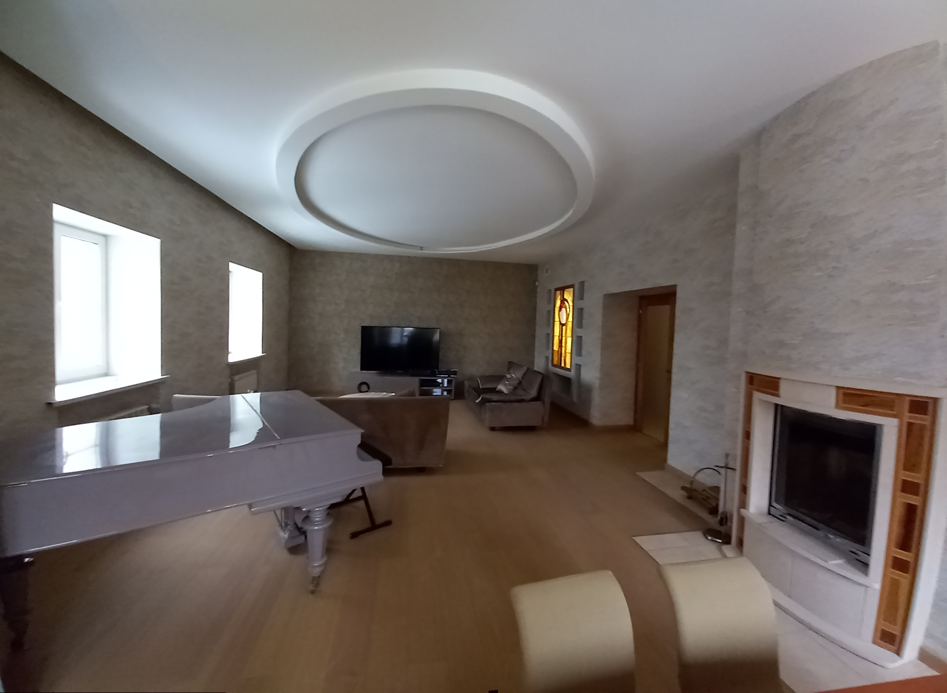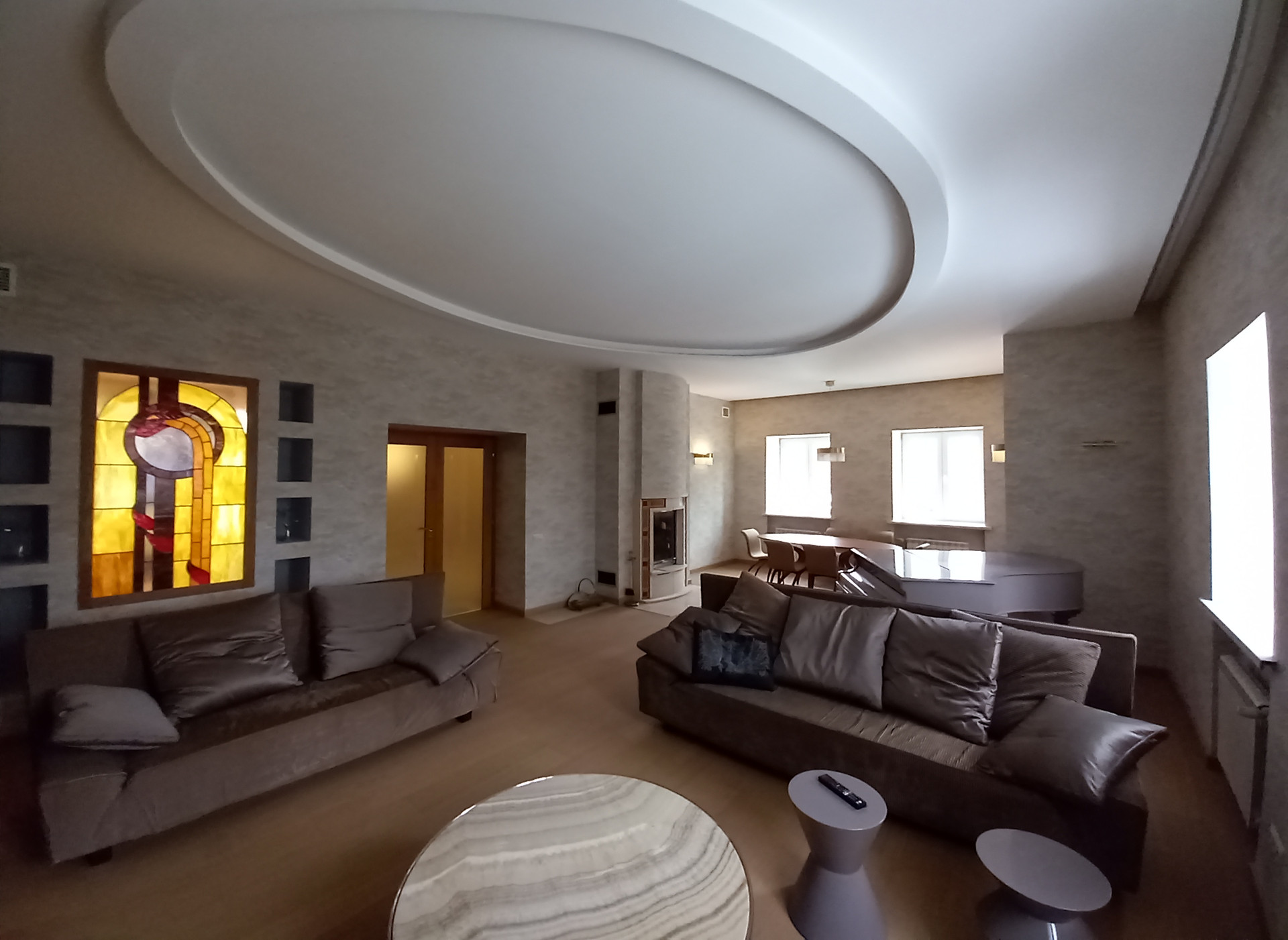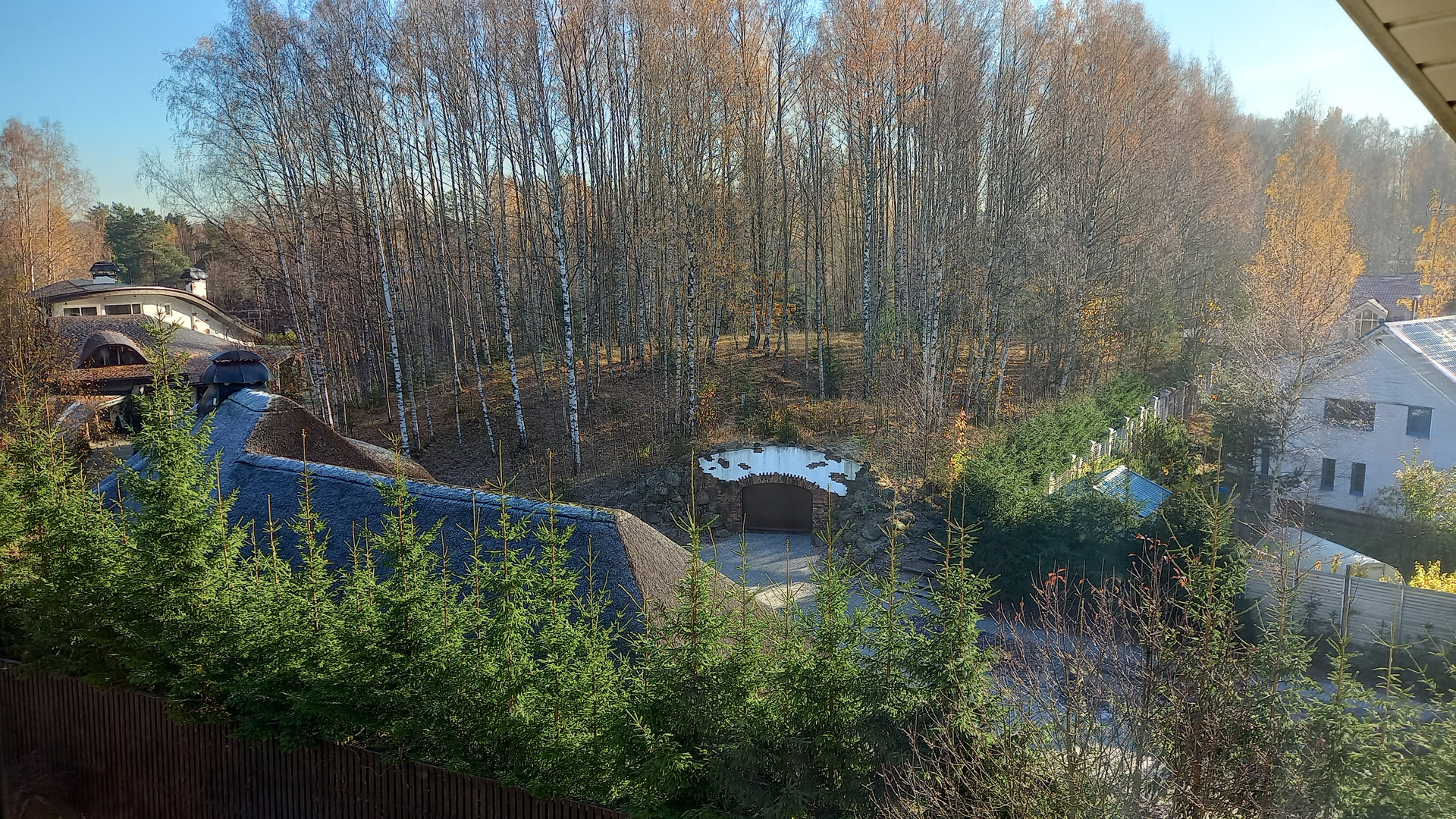Стиль. Хотя в доме нет мраморных богинь, атлантов из порфира, золотых нимф, каменных горгулий и прочих атрибутов успешной жизни, почему то в нем (и рядом) очень красиво и уютно, возможно из-за разных растений, витражей, каминов.