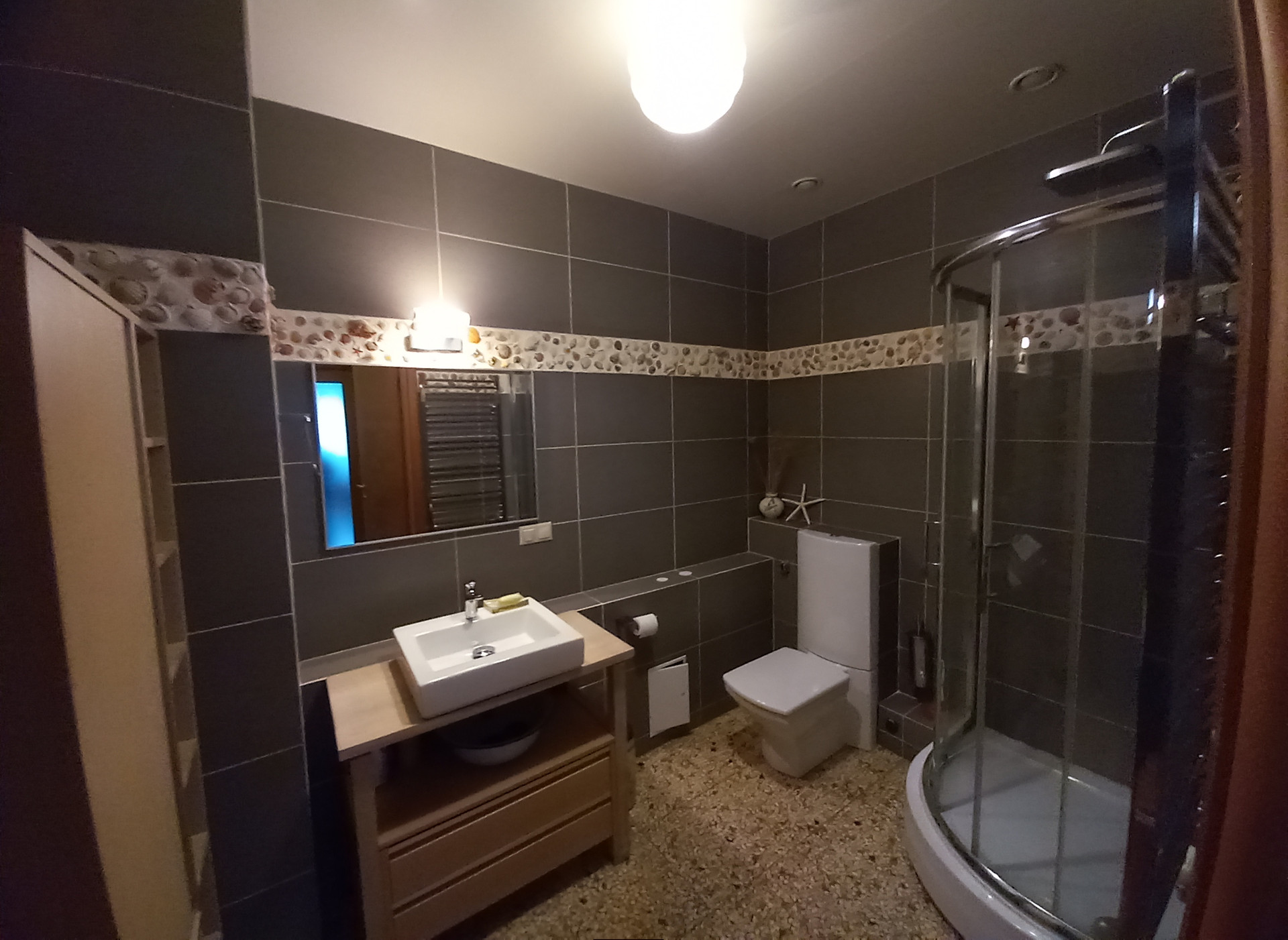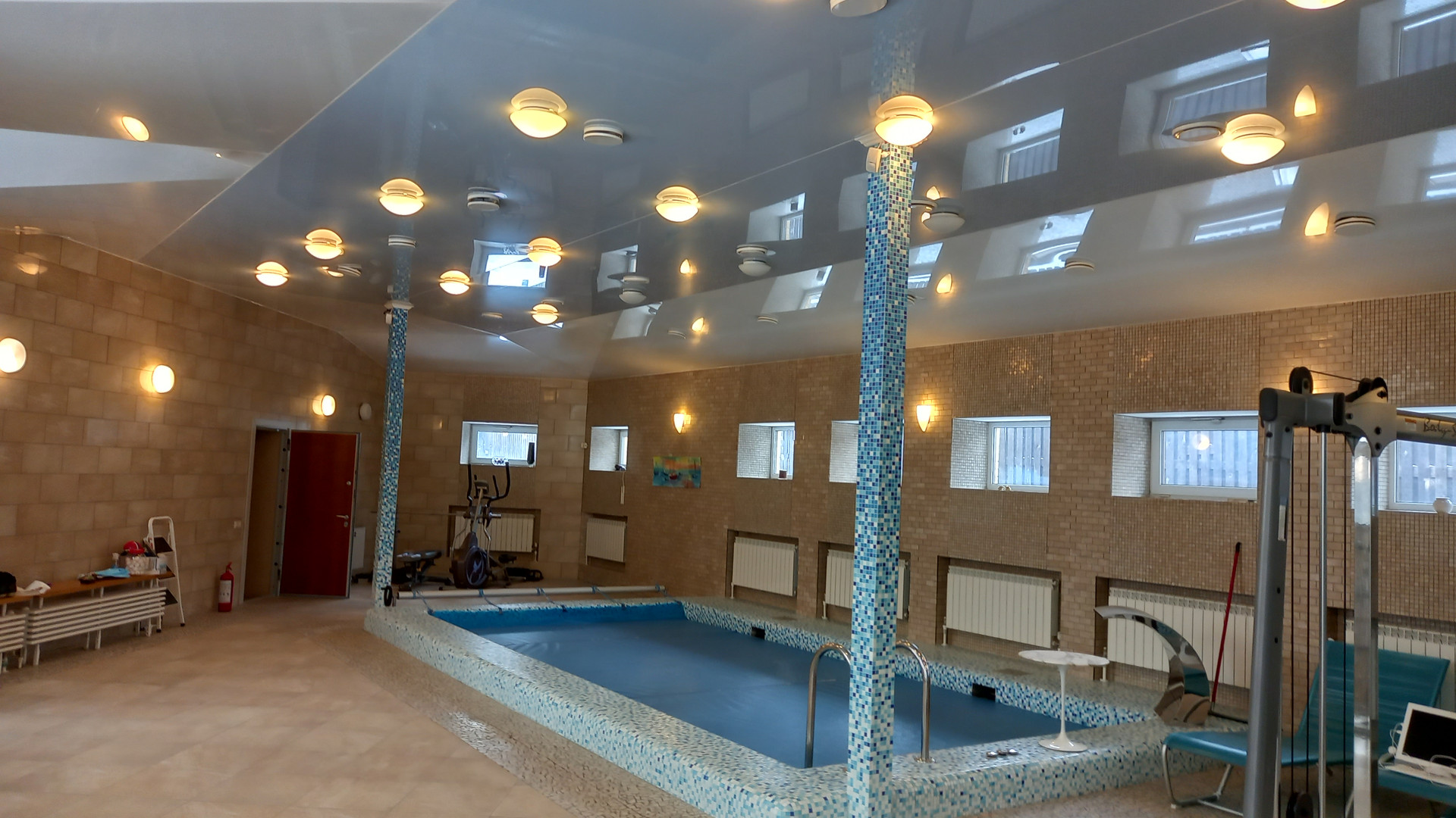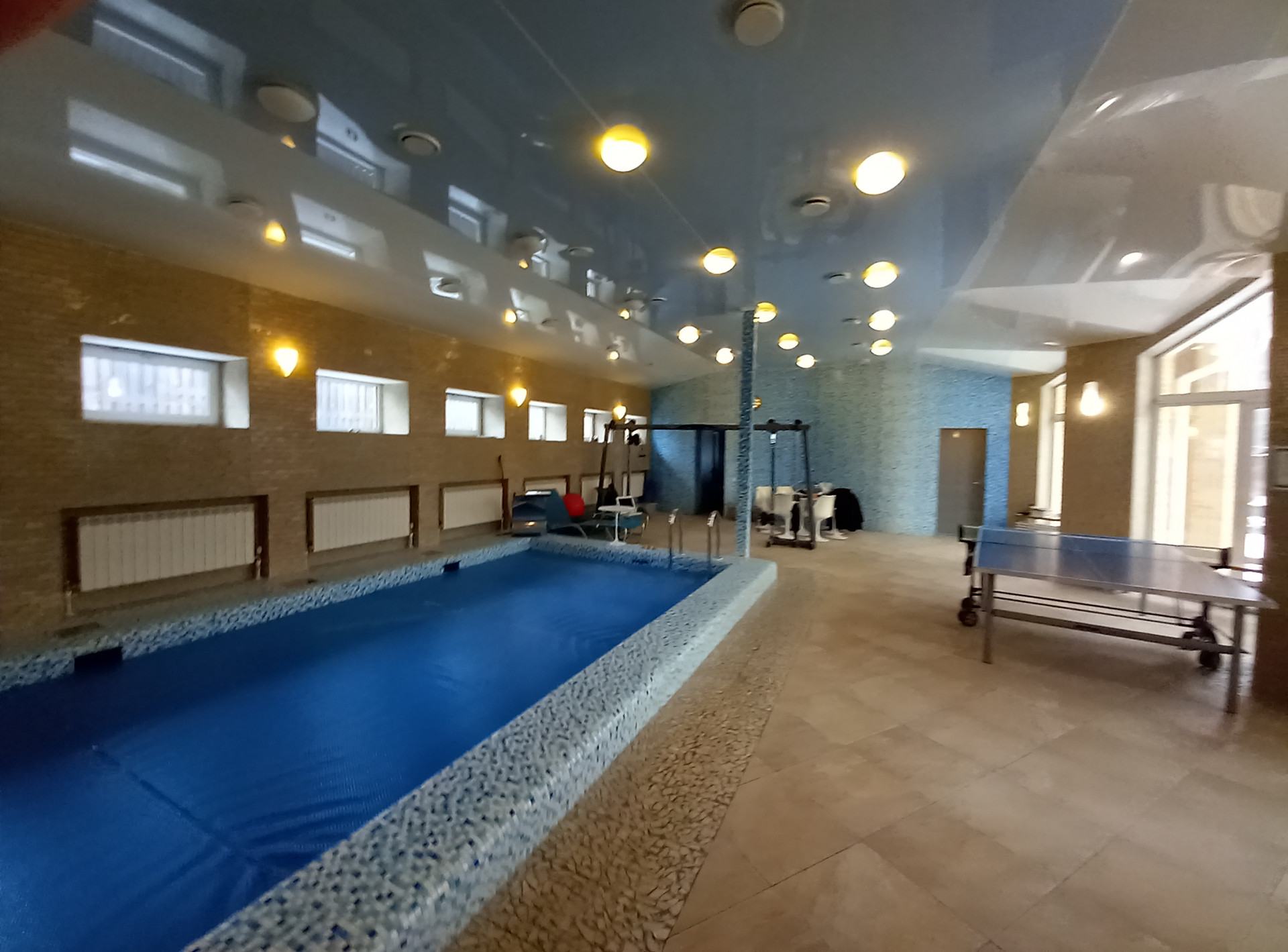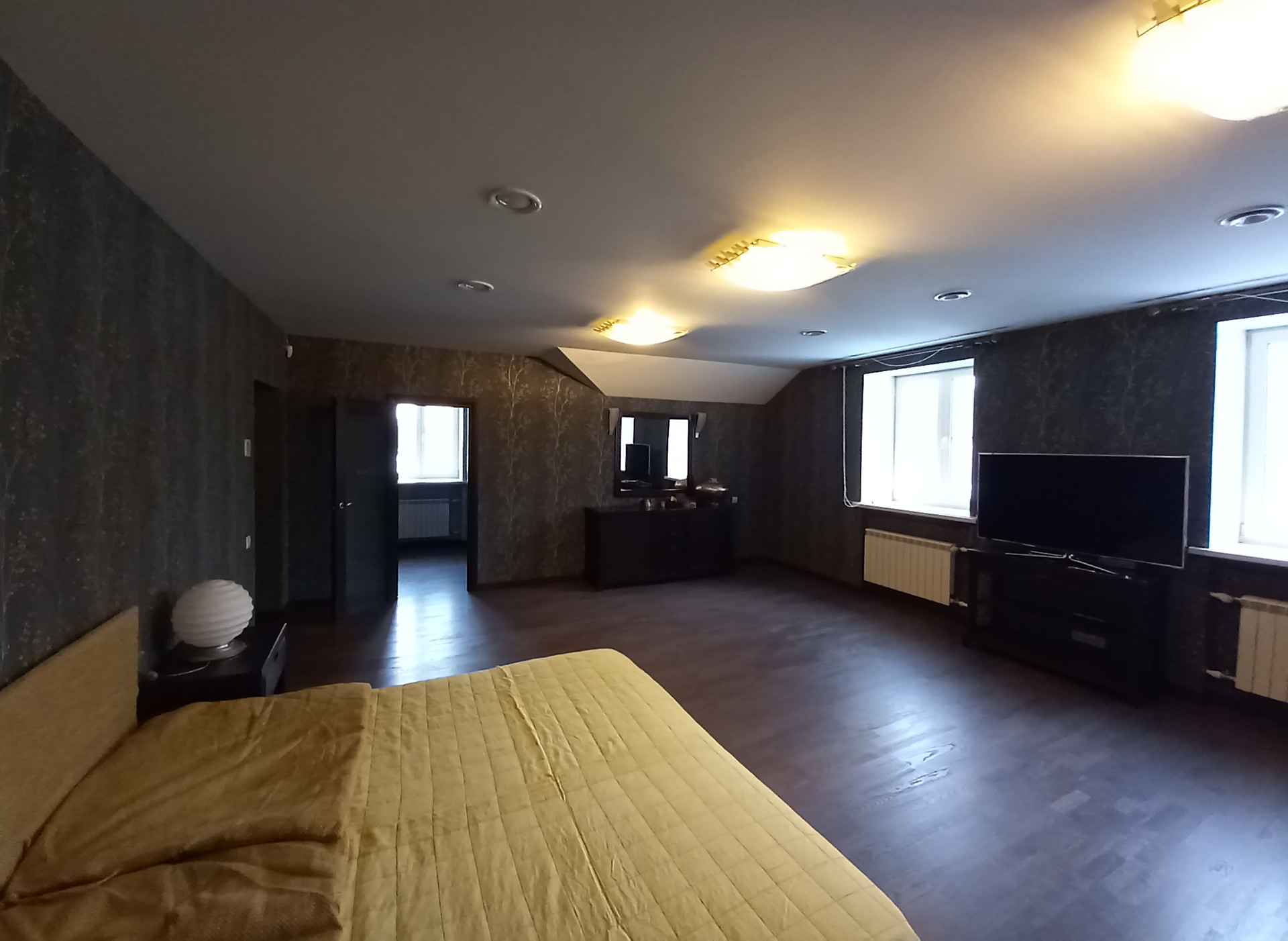 Комфорт. Есть все (или многое): бассейн с зоной отдыха и панорамными окнами, гараж на две машины, сауна с дровяной и электрической печами (на первом этаже), бильярдная, спортивный зал или зал для рок-концертов/рейв-вечеринок и тому подобного, помещения для обслуживающего персонала, инженерного оборудования (цоколь), мастер-спальня (с гардеробной и ванной), две спальни с общей гардеробной и общей ванной (второй этаж), просторная зала с камином с окнами на две стороны (мансарда). На первом этаже еще есть салон, уютная кухня-столовая, гостевая спальня. Если просмотреть все фотографии, то в конце будут планы дома с точными согласно техническому паспорту площадями комнат, учитывайте, что схема границ участка с расположенным домом дана схематично, основной участок несколько иной формы и он больше, чем на этой схеме.