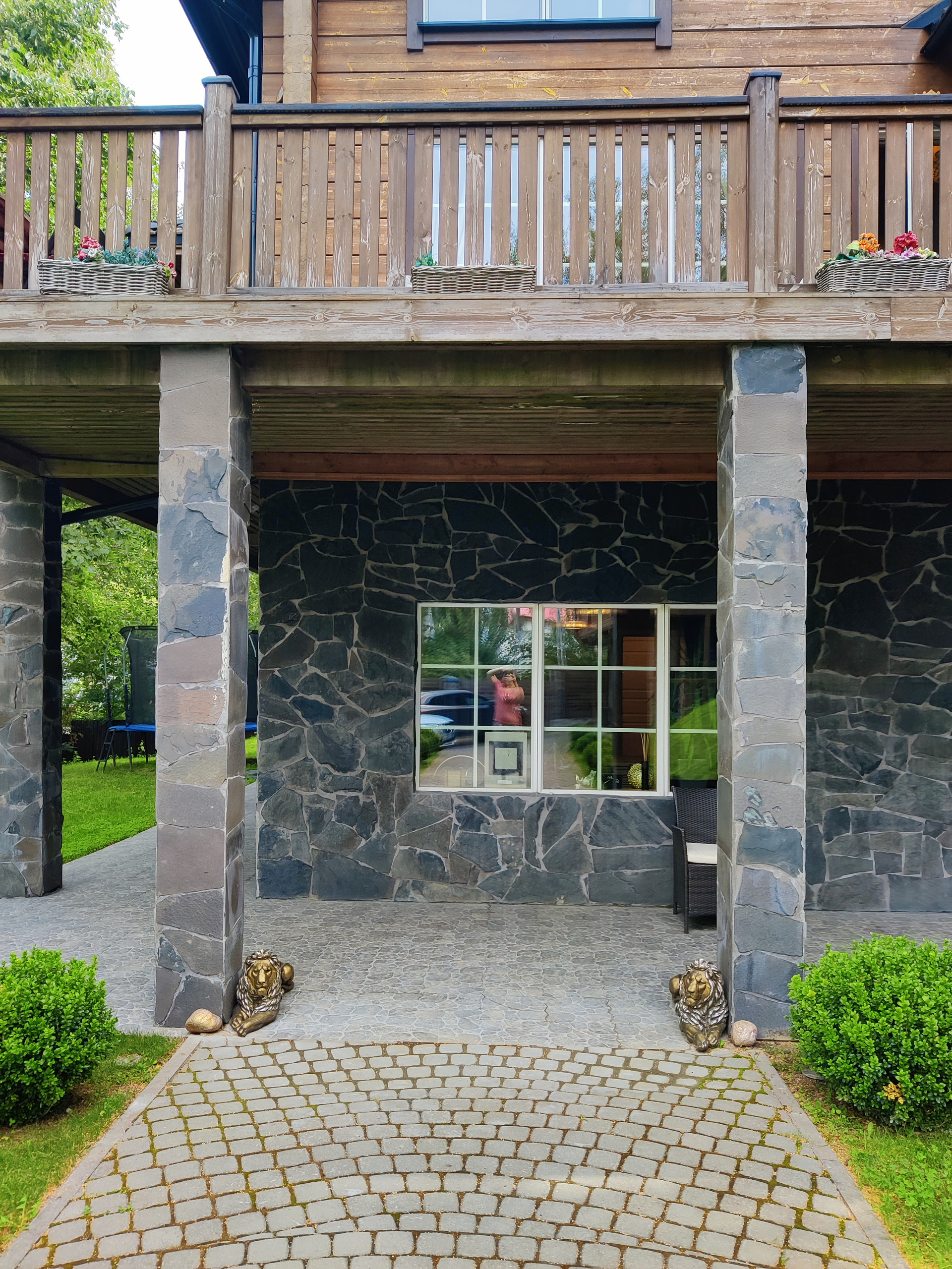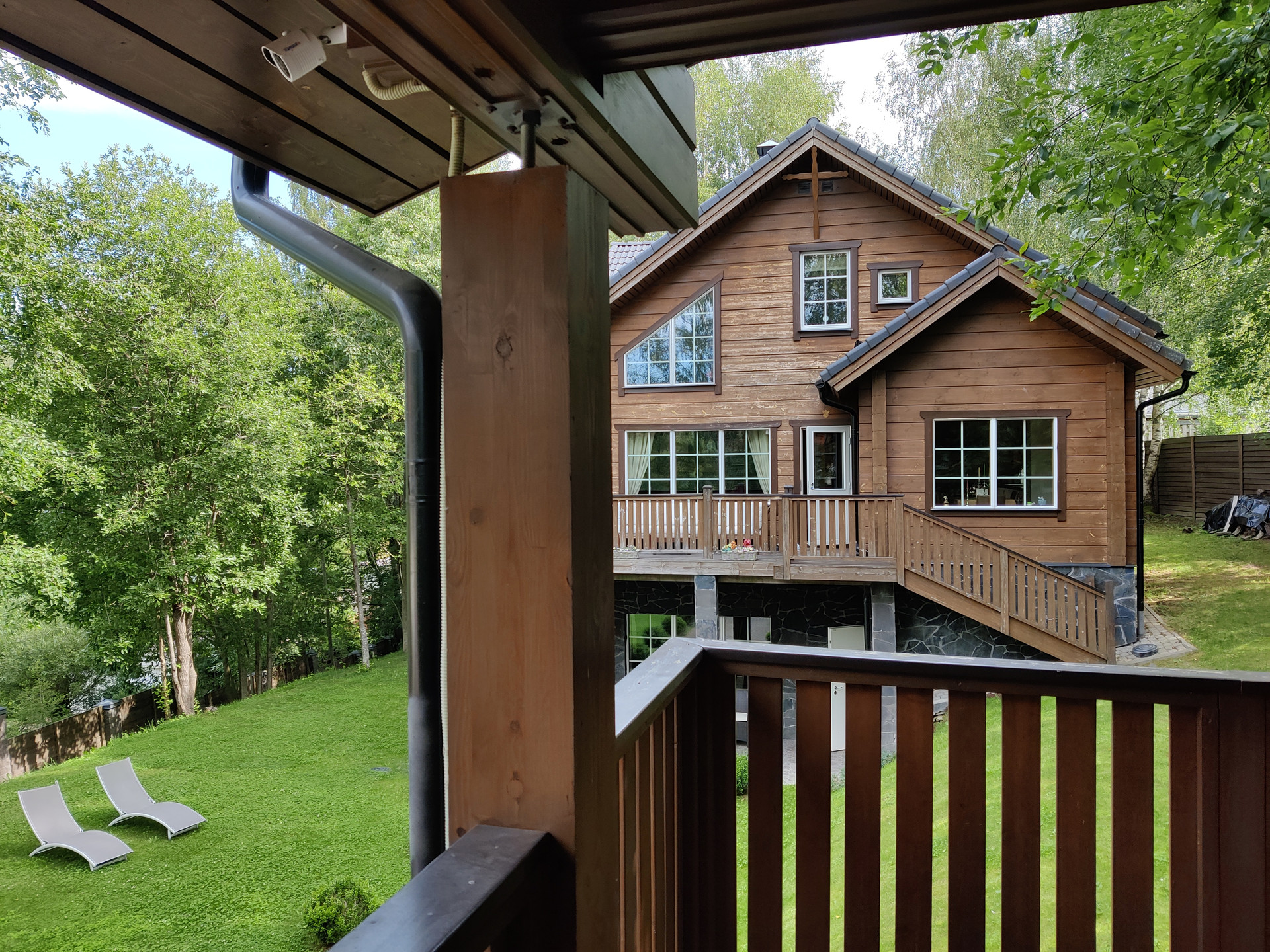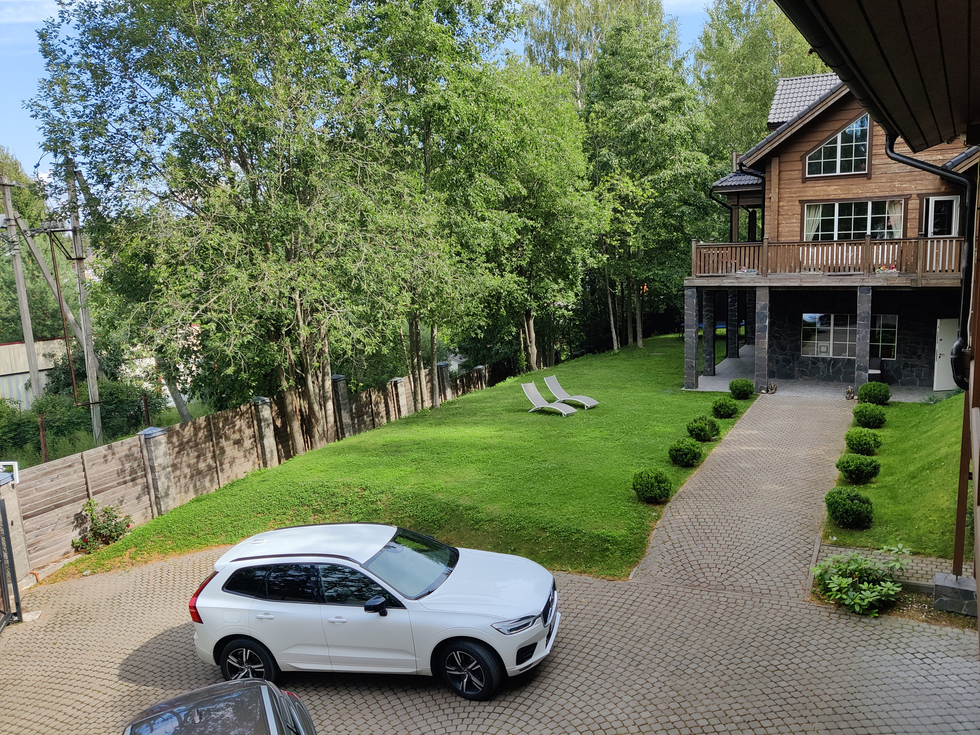 На участке площадью 12 соток, построен гостевой дом со встроенным гаражом для 2 автомобилей, оставлена большая территория с газоном.
