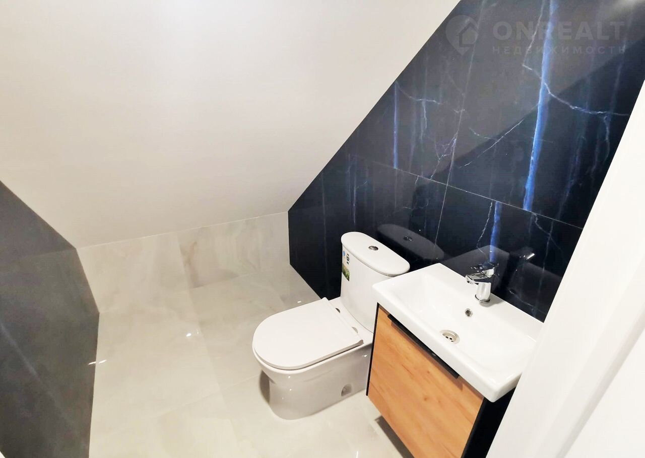 На первом этаже кухня-гостиная, санузел, котельная, гараж (45квм).