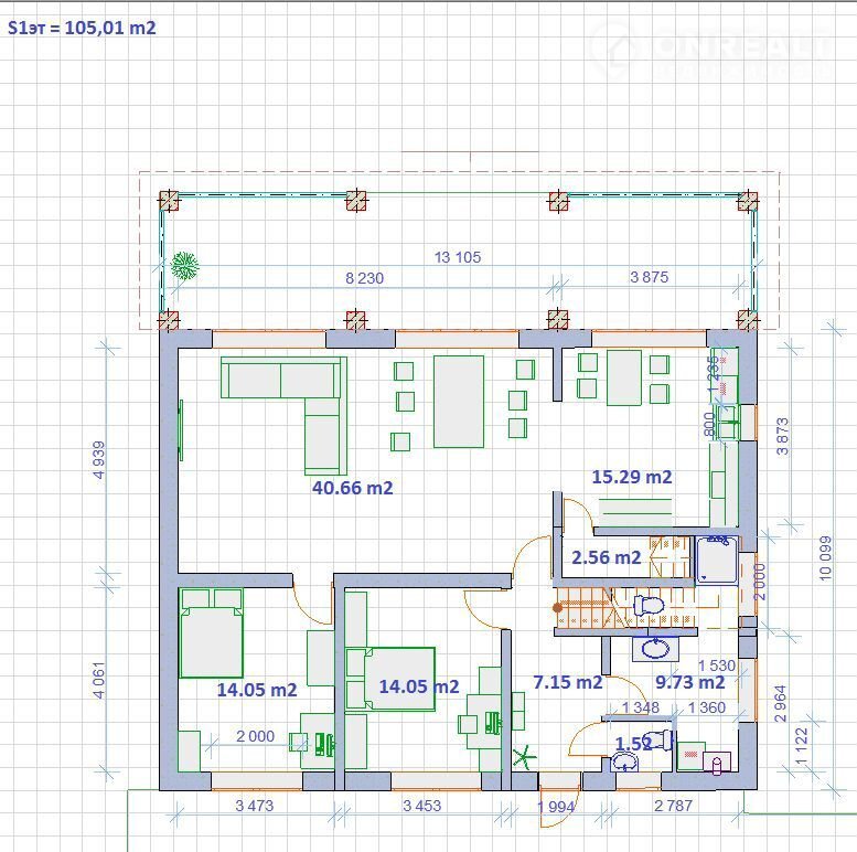 Дом 13 х 10 м. Под внутреннюю отделку. Фундамент - плита 400мм, полноценные 2 этажа ( не полумансарда!) + 100м2 холодный чердак, монолитные межэтажные перекрытия, теплые стены 400мм Газобетон, панорамное энергосберегающее 2-х камерное остекление. Гостиной 41 м2, кухня/столовая 15 м2, кабинет 16 м2, 5 спален, 3 санузла.