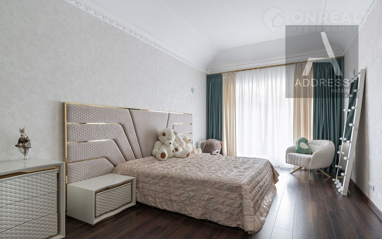 На втором этаже спальня с гардеробной, детская спальня, мастер-спальня с гардеробной и санузлом с душевой кабиной, санузел с душевой. Из каждой спальни выход на просторную террасу.