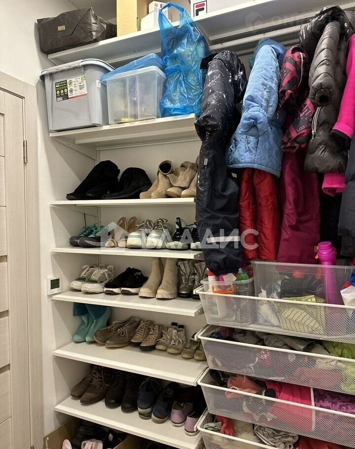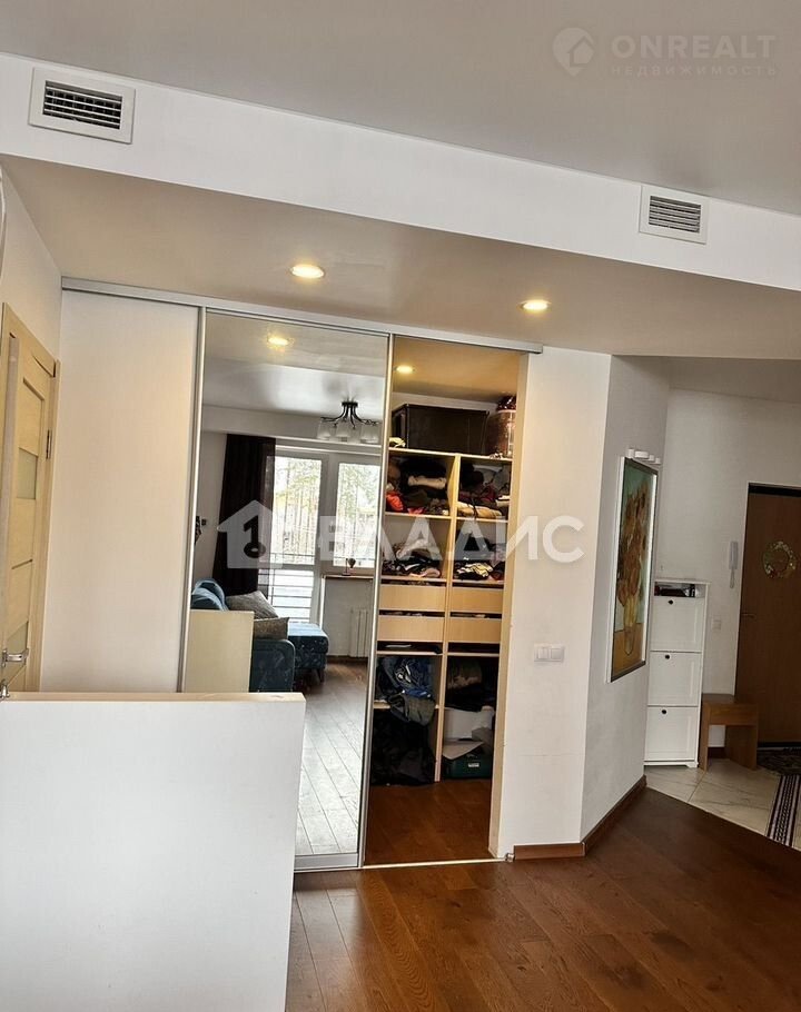 Прихожая оснащена большим зеркальным шкафом-купе. Также есть два гардероба. Оба оснащены системами хранения. Один используется как комната хранения и сушильная, туда же выведена труба под стиральную машину, при желании можно сделать полноценную постирочную. Также в кухне-гостиной имеется большой открытый балкон с видом на частный сектор.