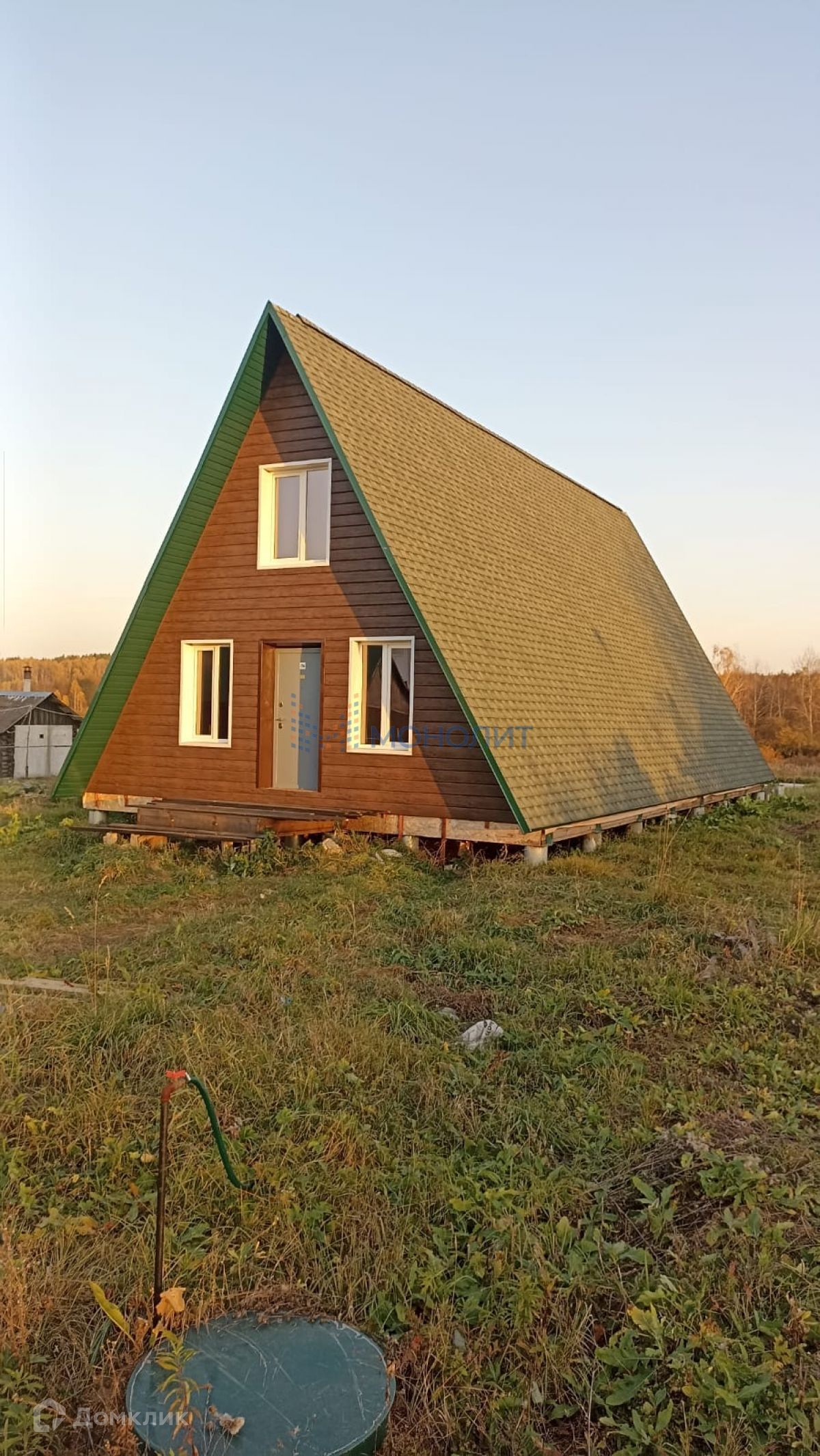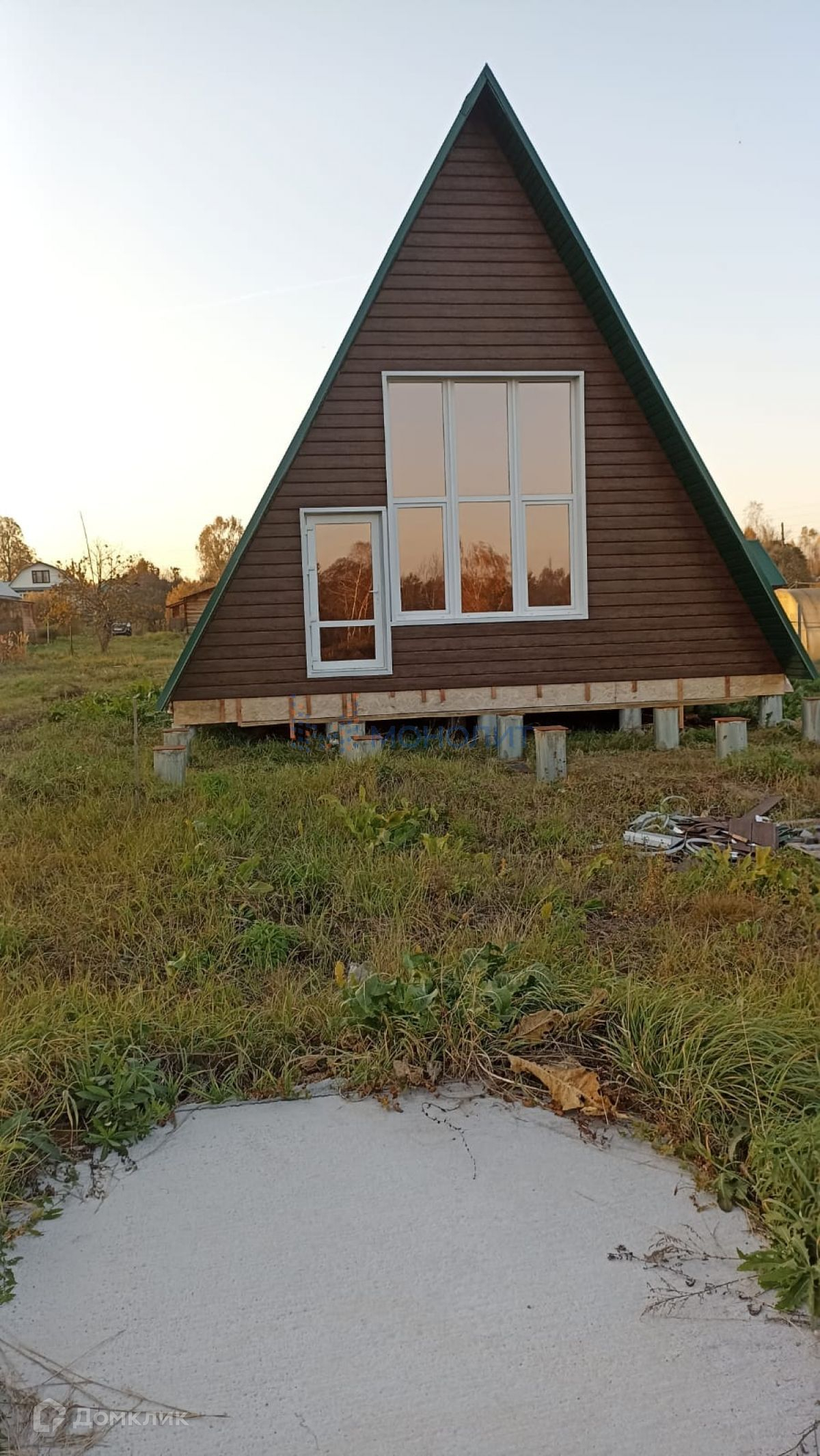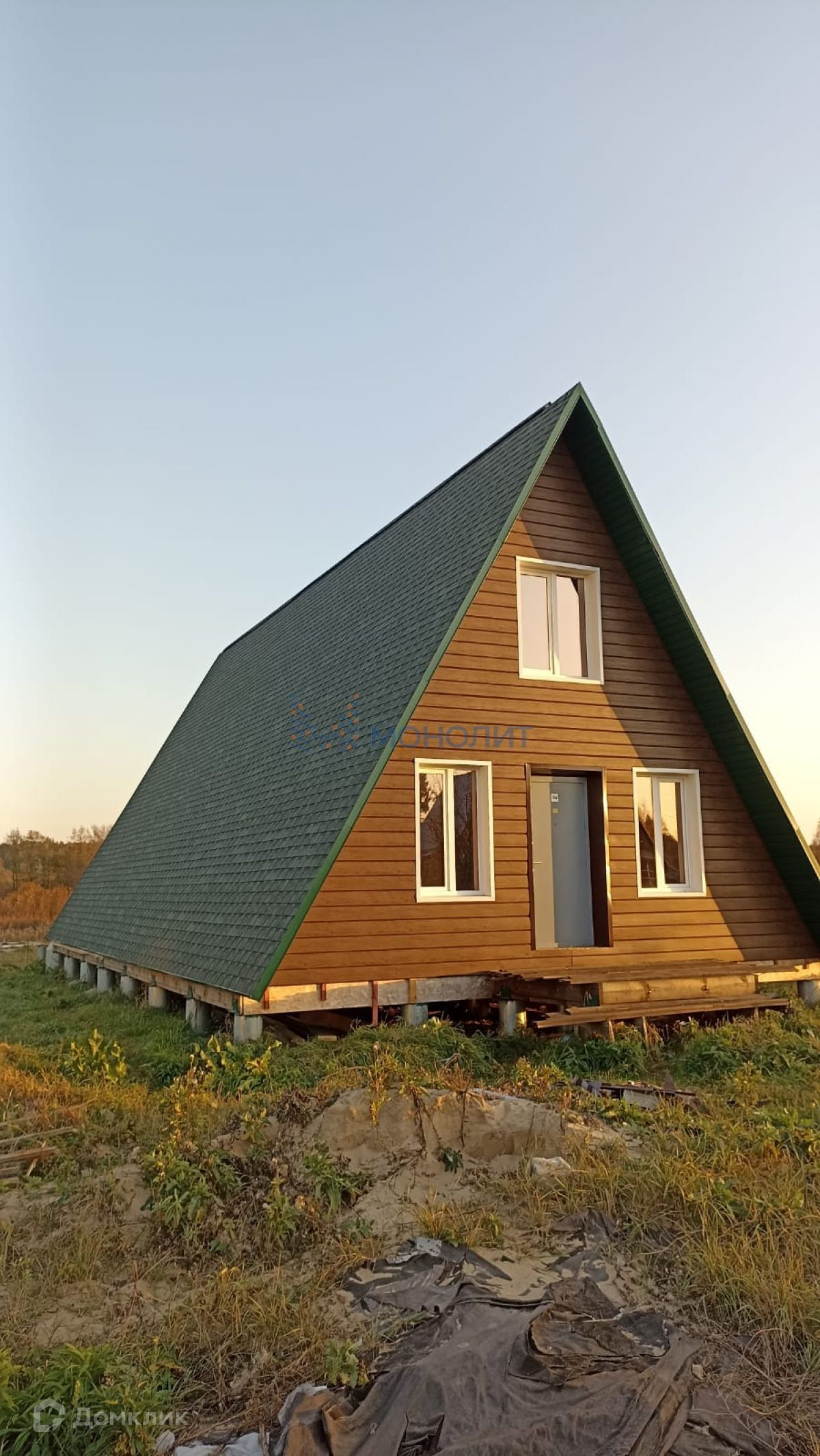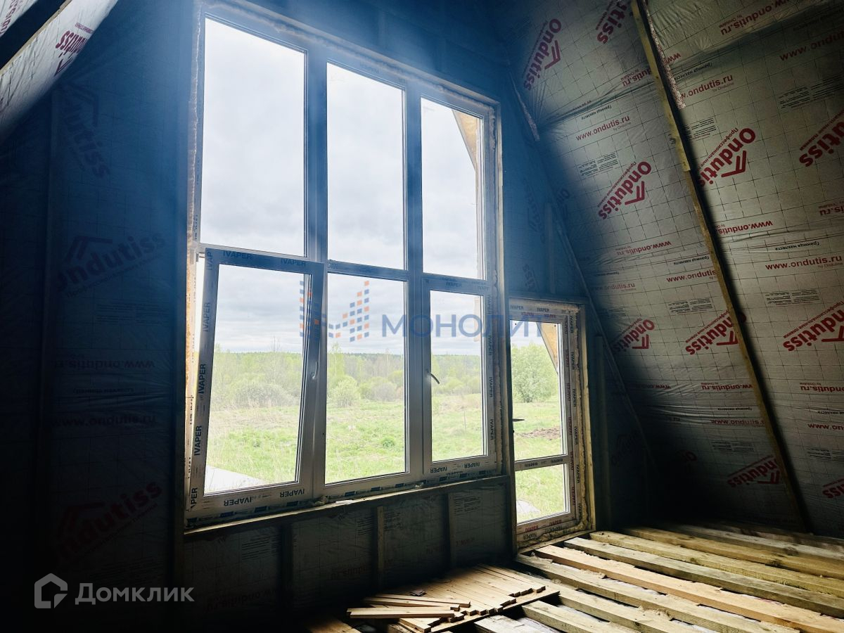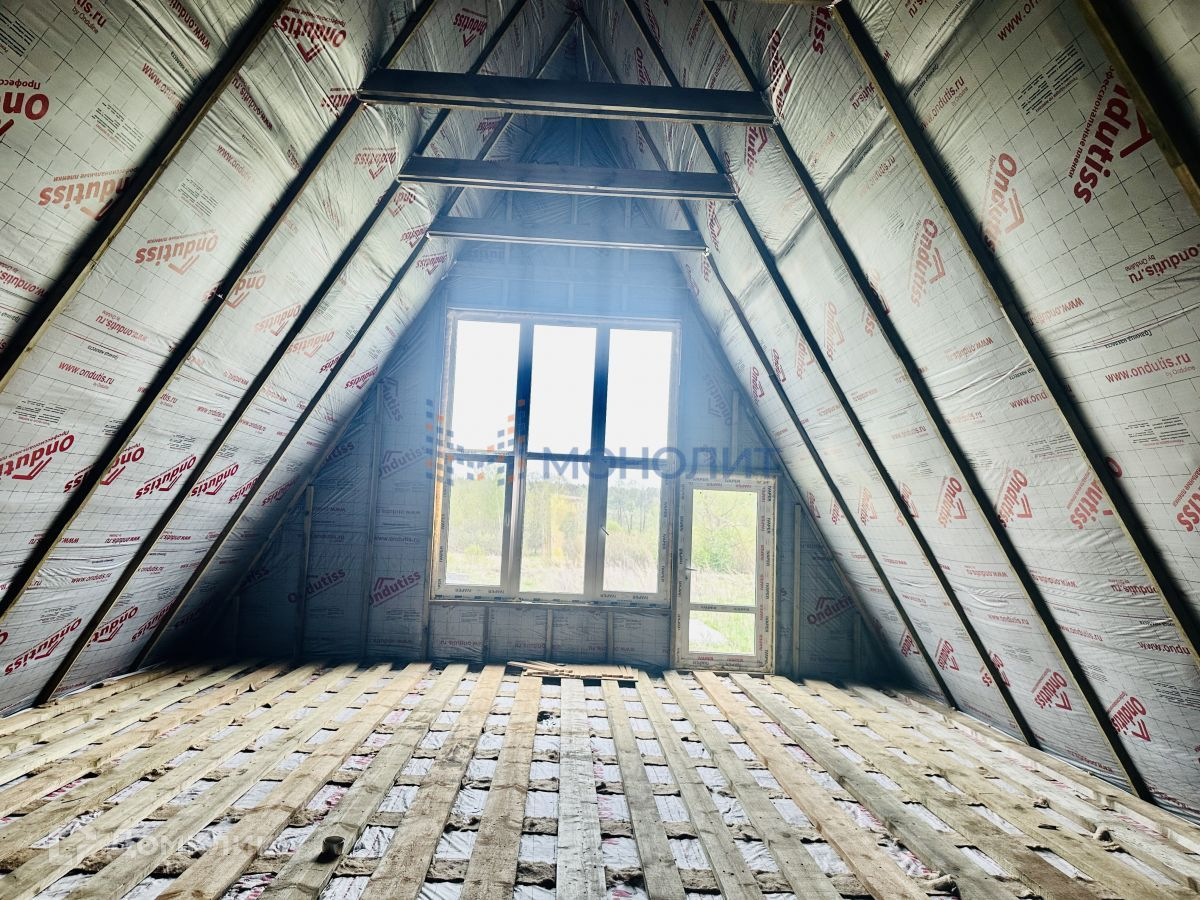 Нижегородская область, Дальнеконстантиновский район, деревня Юловка, продается дом для круглогодичного проживания 135 кв.м. модной треугольной формы, со вторым светом площадью 70 кв. м. и вторым этажом. Участок 22 сотки. Подходит под сельскую ипотеку! Документы на дом и участок готовы! Под финишную отделку! Дом по каркасной технологии, брус 200 мм на 55 мм, утепление 200 мм RockWool, дорогая пленка. За счёт треугольной формы очень равнопрочный и будет теплый, т.к объем дома меньше чем обычный. Кровля - мягкая черепица - Шингласс (не тонкая).Фундамент - бурнонабивные сваи, диаметр 300 мм, глубина 1500 мм, перевязаны между собой ленточным фундаментом 200 мм на 300 мм, бетон В30(везде!).Также залит фундамент под баню 6 м на 3 м - ленточно-свайный 400 мм на 700 мм и плита 3 м х 2м х 0,15 м, бетон все тот же - под мангал с душем.