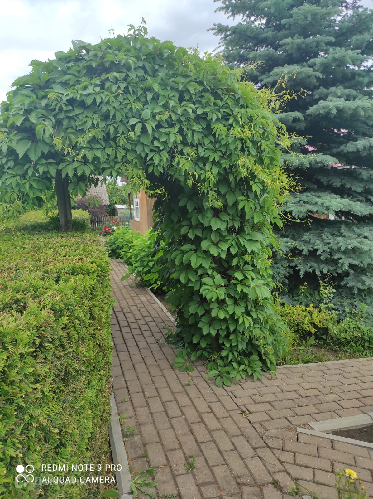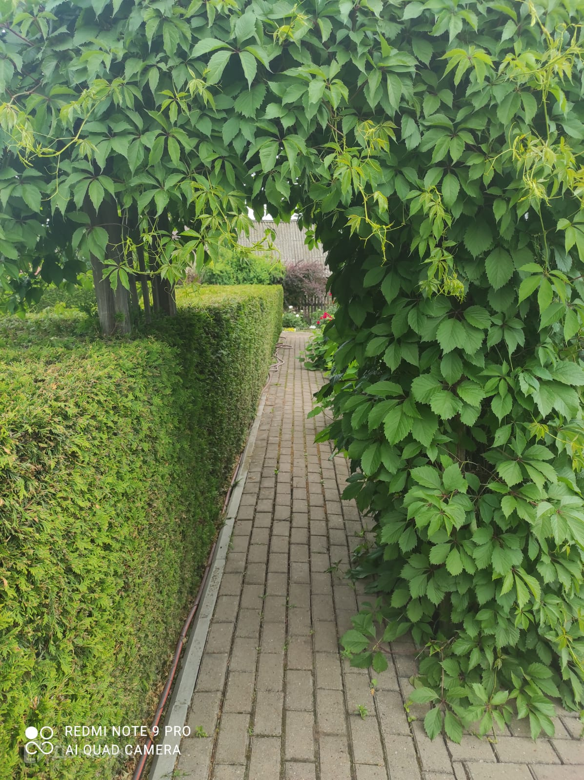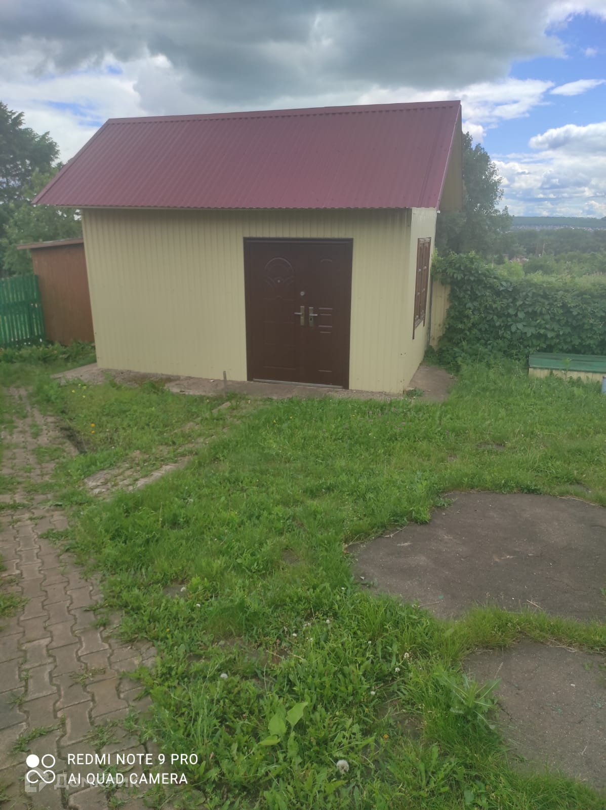 Двор дома полностью выложен тротуарной плиткой на участке.