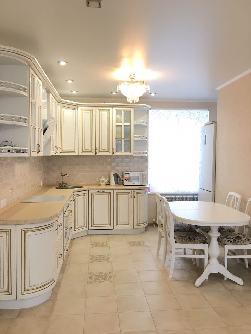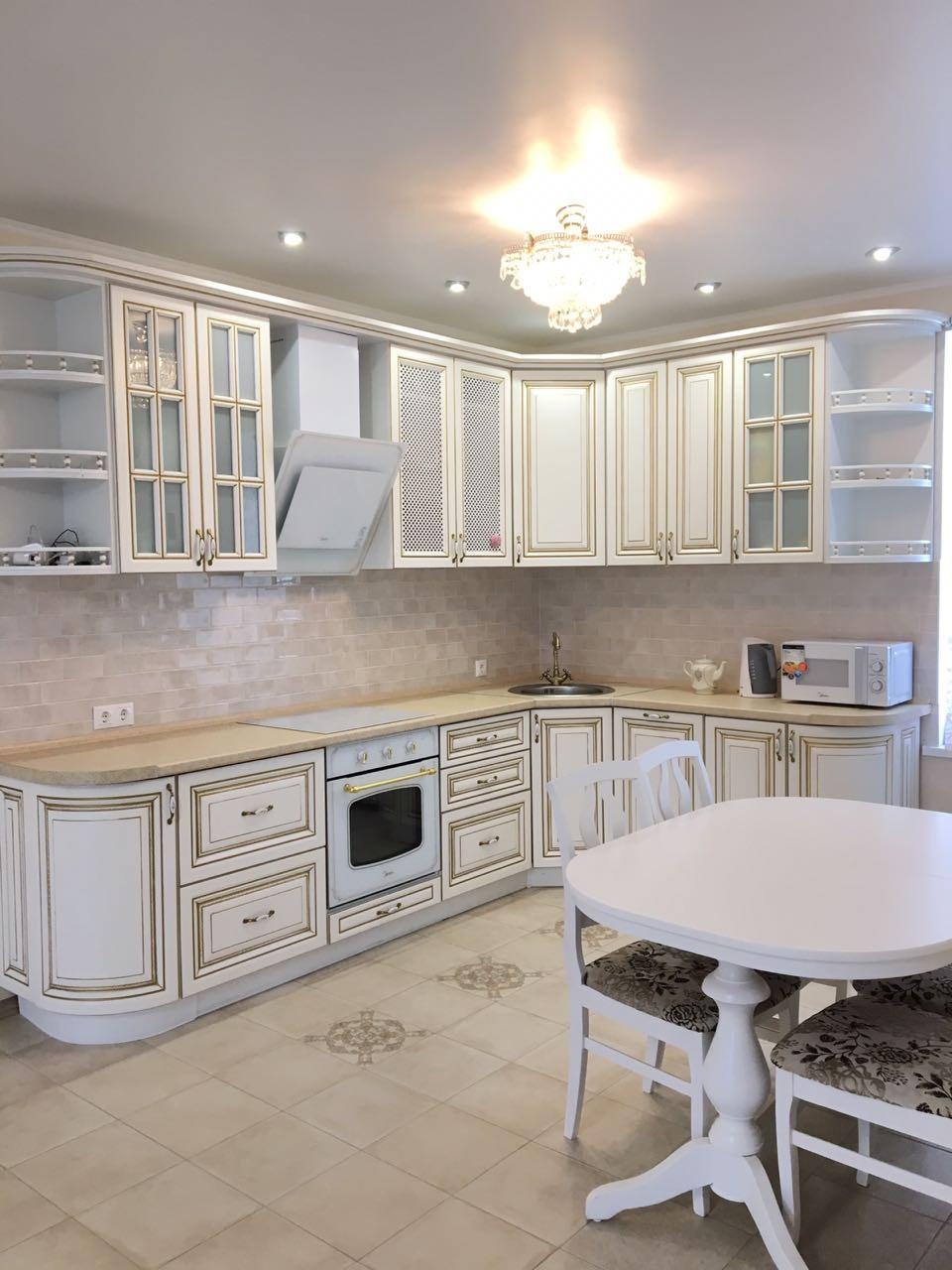 В доме остается кухонный гарнитур со встраиваемой техникой.