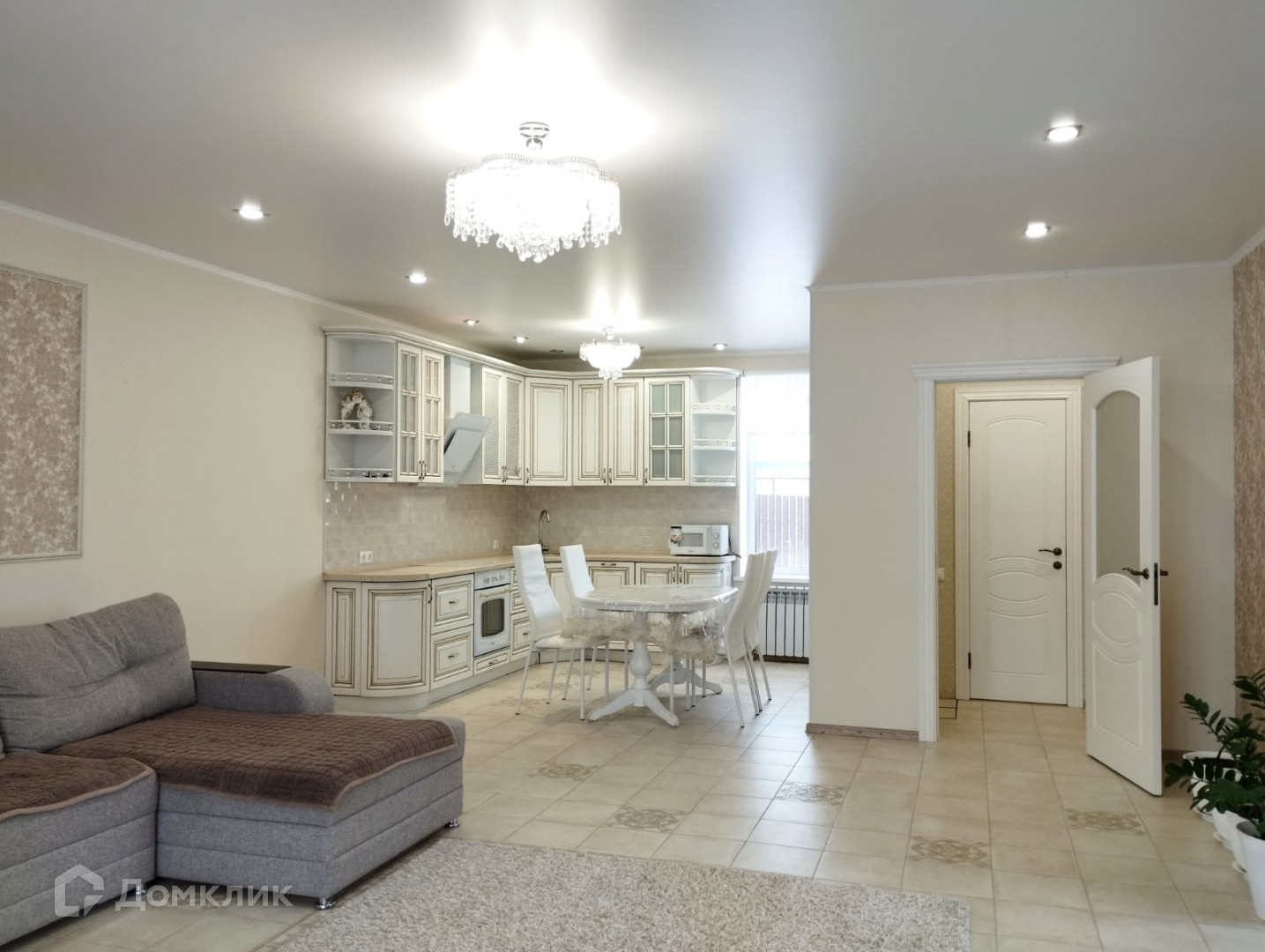 Потолки натяжные. Стены обои.  М/двери высокого качества.