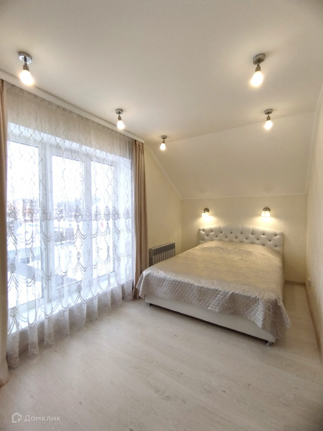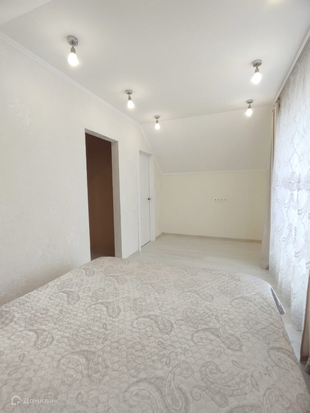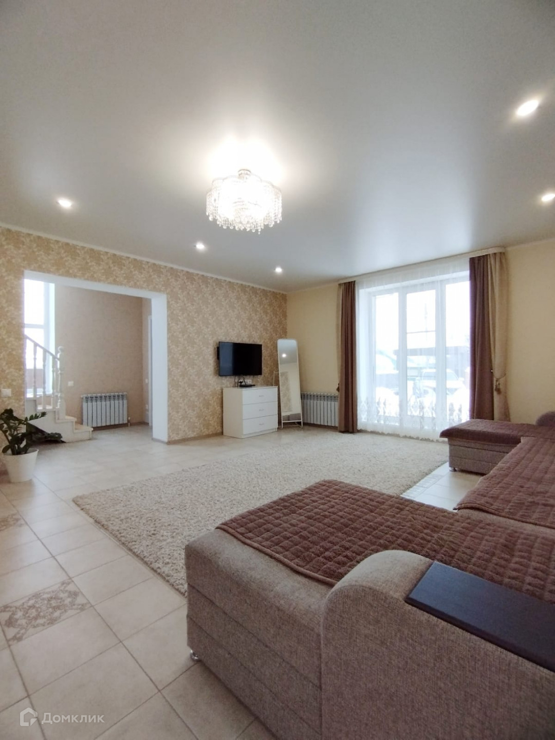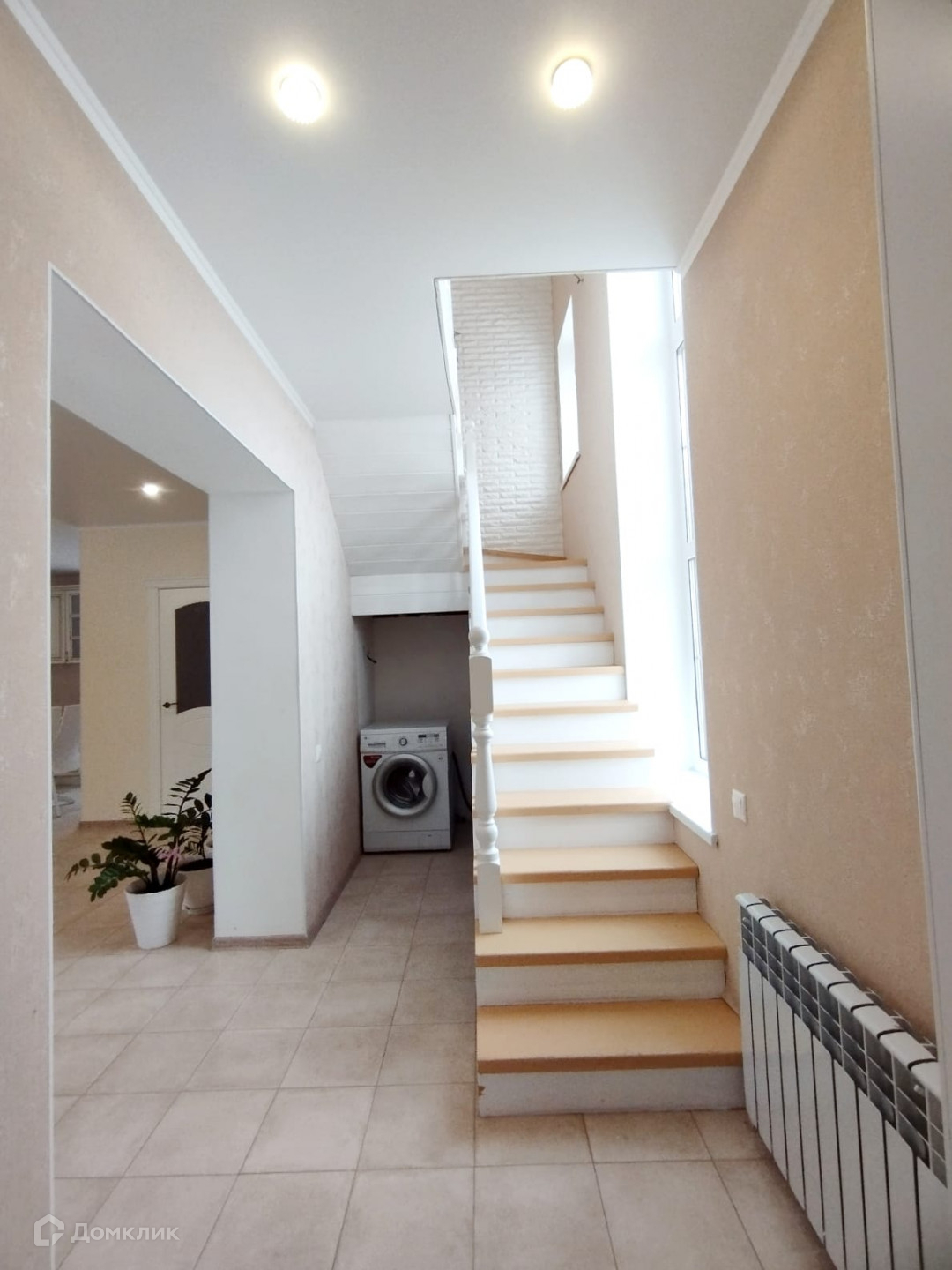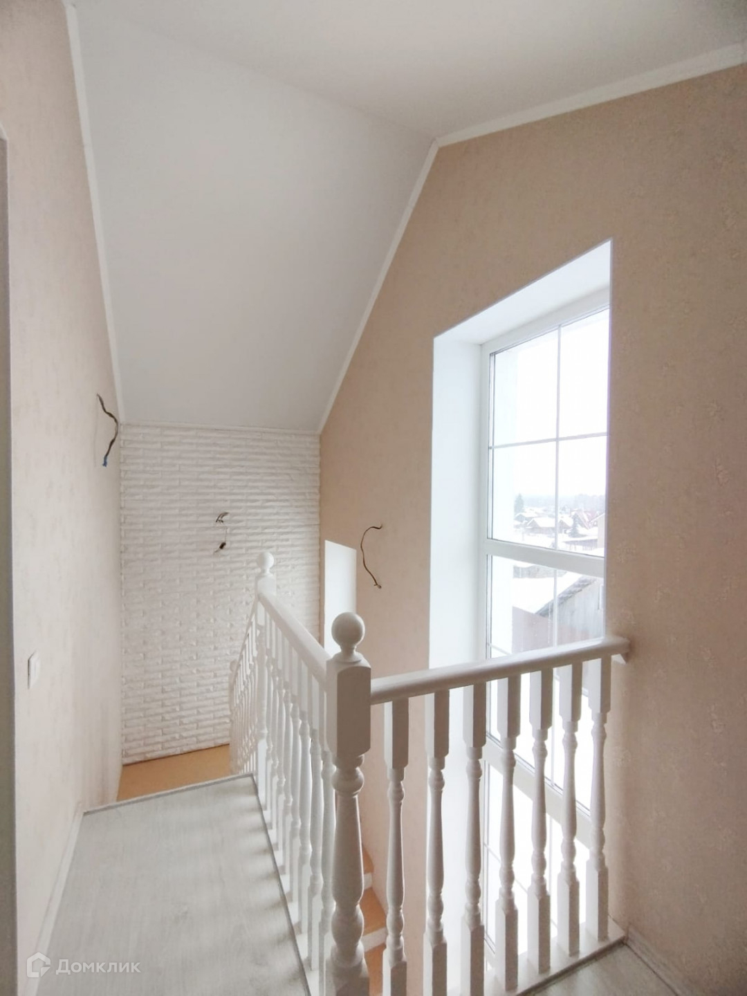 Прихожая, просторная  светлая кухня - гостиная с панорамным окном, два санузла, удобная пологая деревянная лестница.