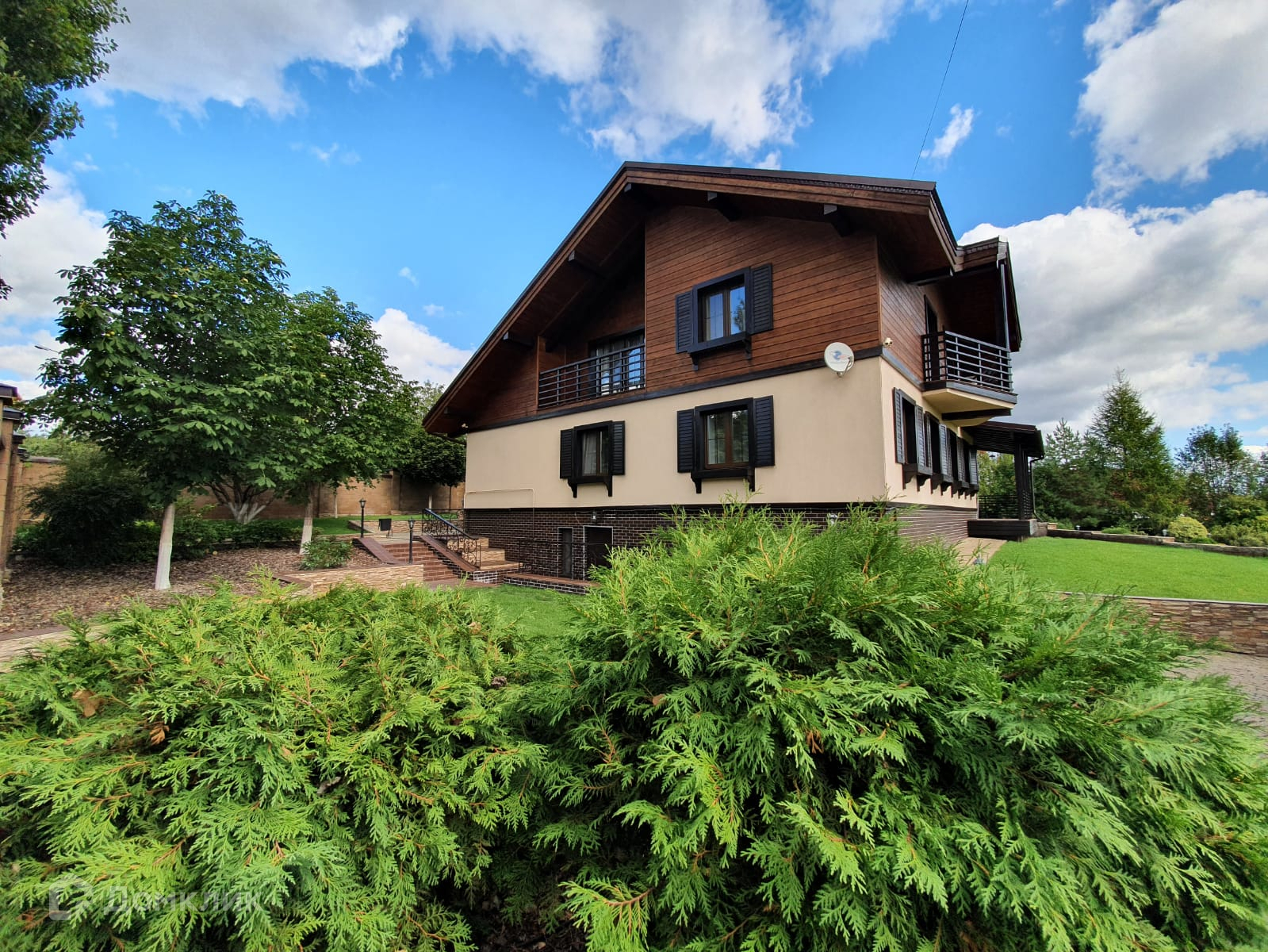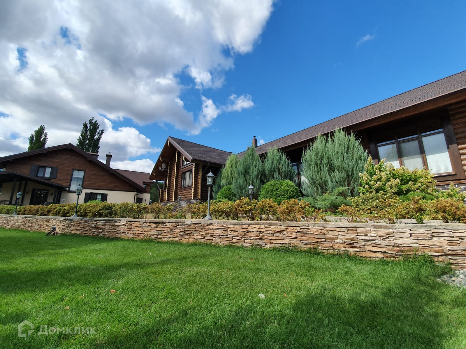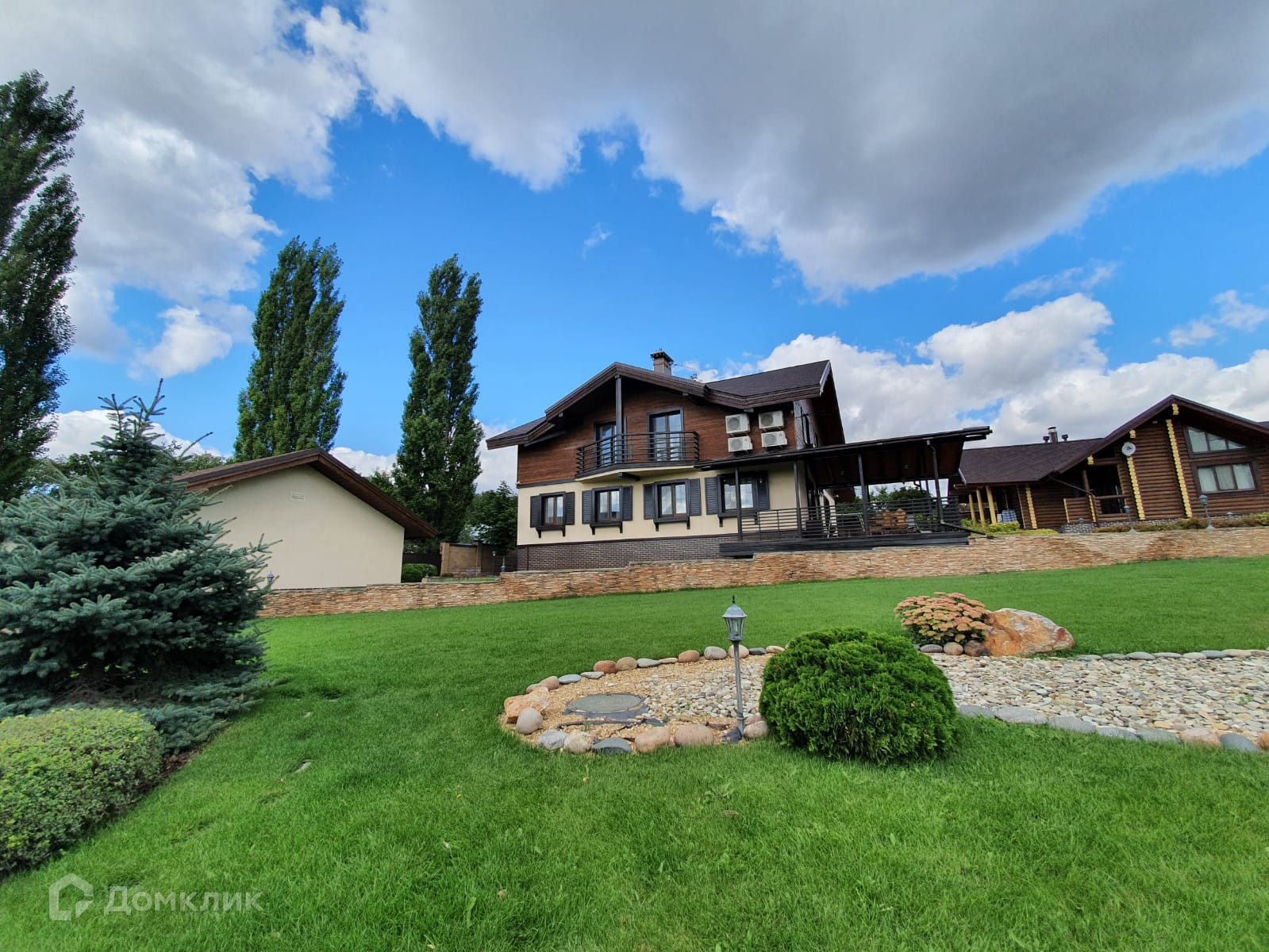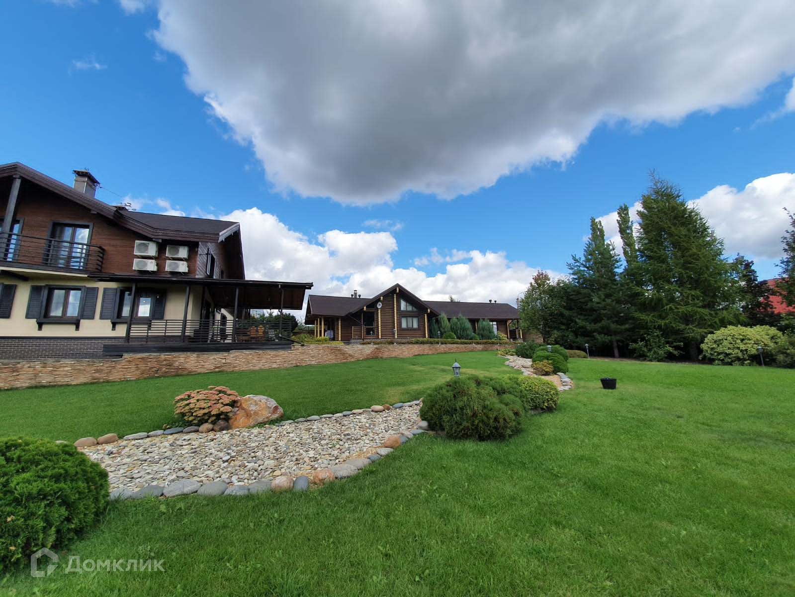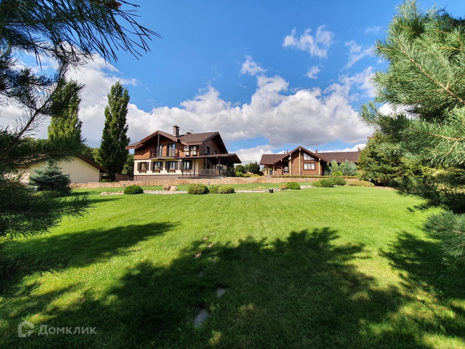 На территории расположены 2-хэтажный коттедж, банный комплекс, гостевой дом.