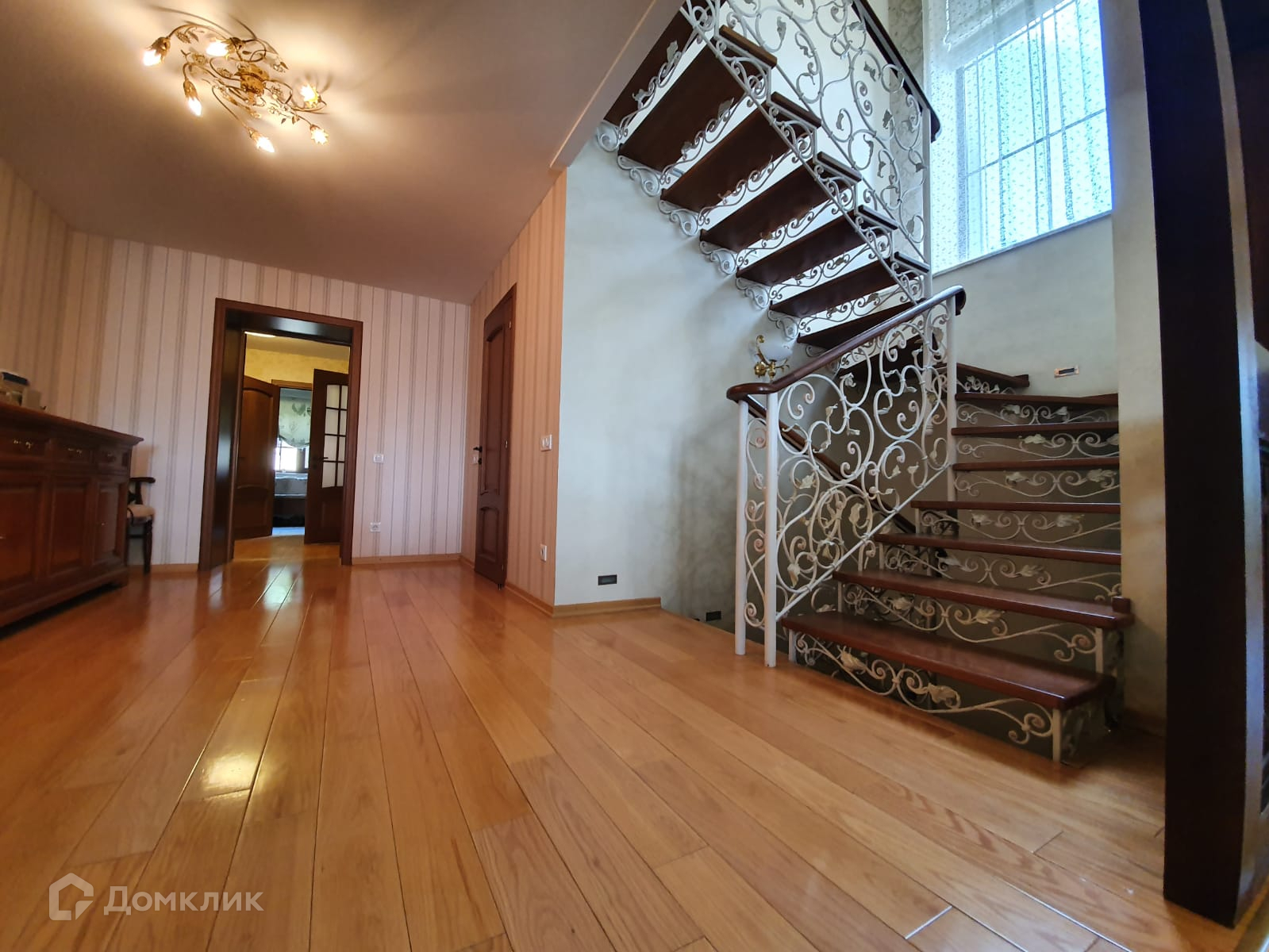 Кованная лестница, ступеньки из дерева.