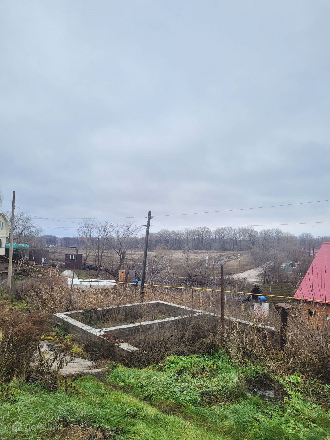 На территории: домик 42,5 кв.м старой постройки, капитальный фундамент под новый дом.