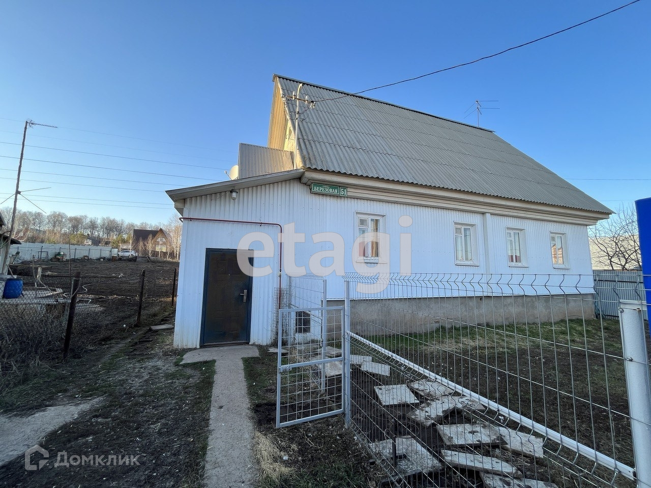 На участке есть большая баня с верандой и отсеком для дров. Участок огорожен с лицевой и задней сторон профнастилом высотой 2 метра.