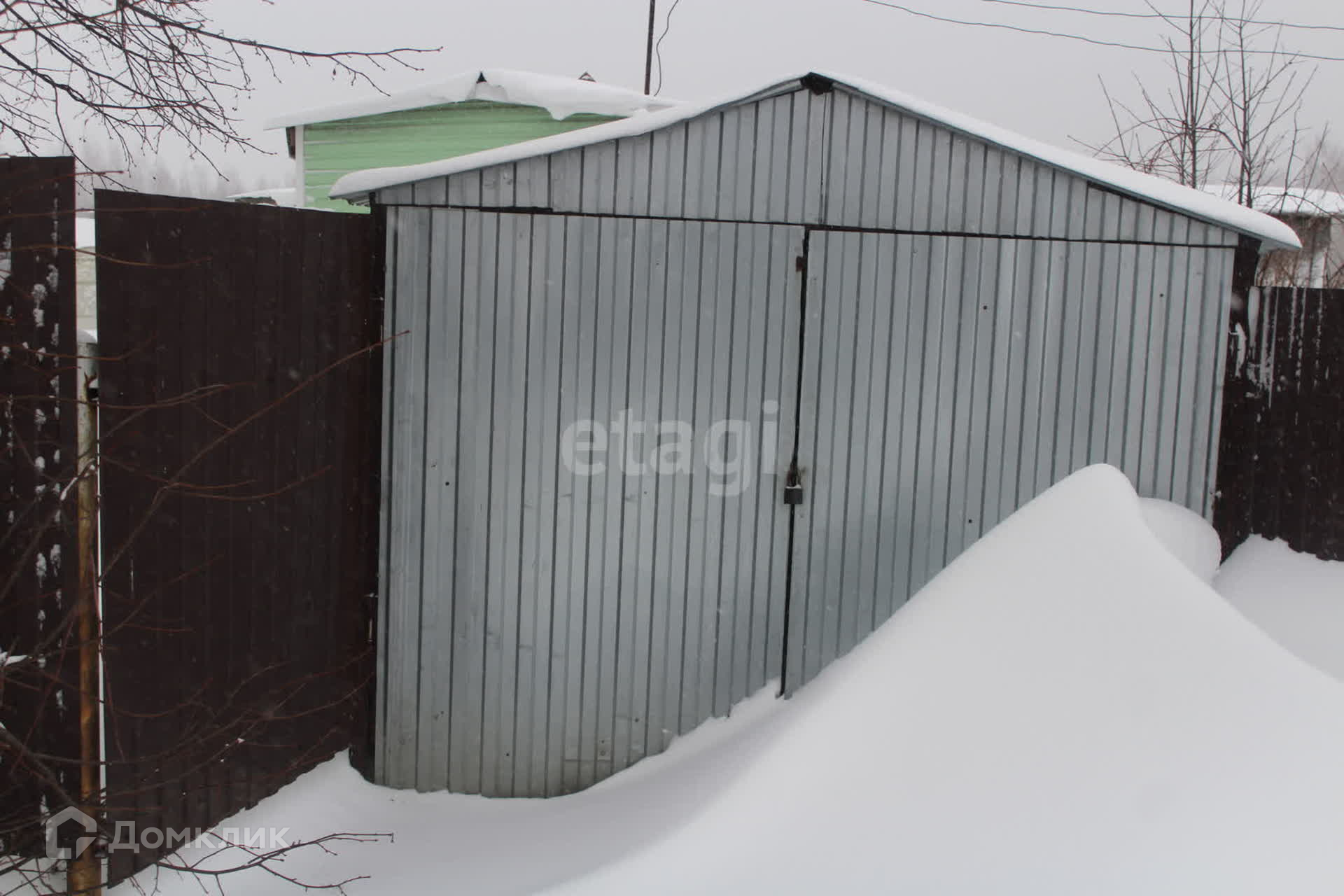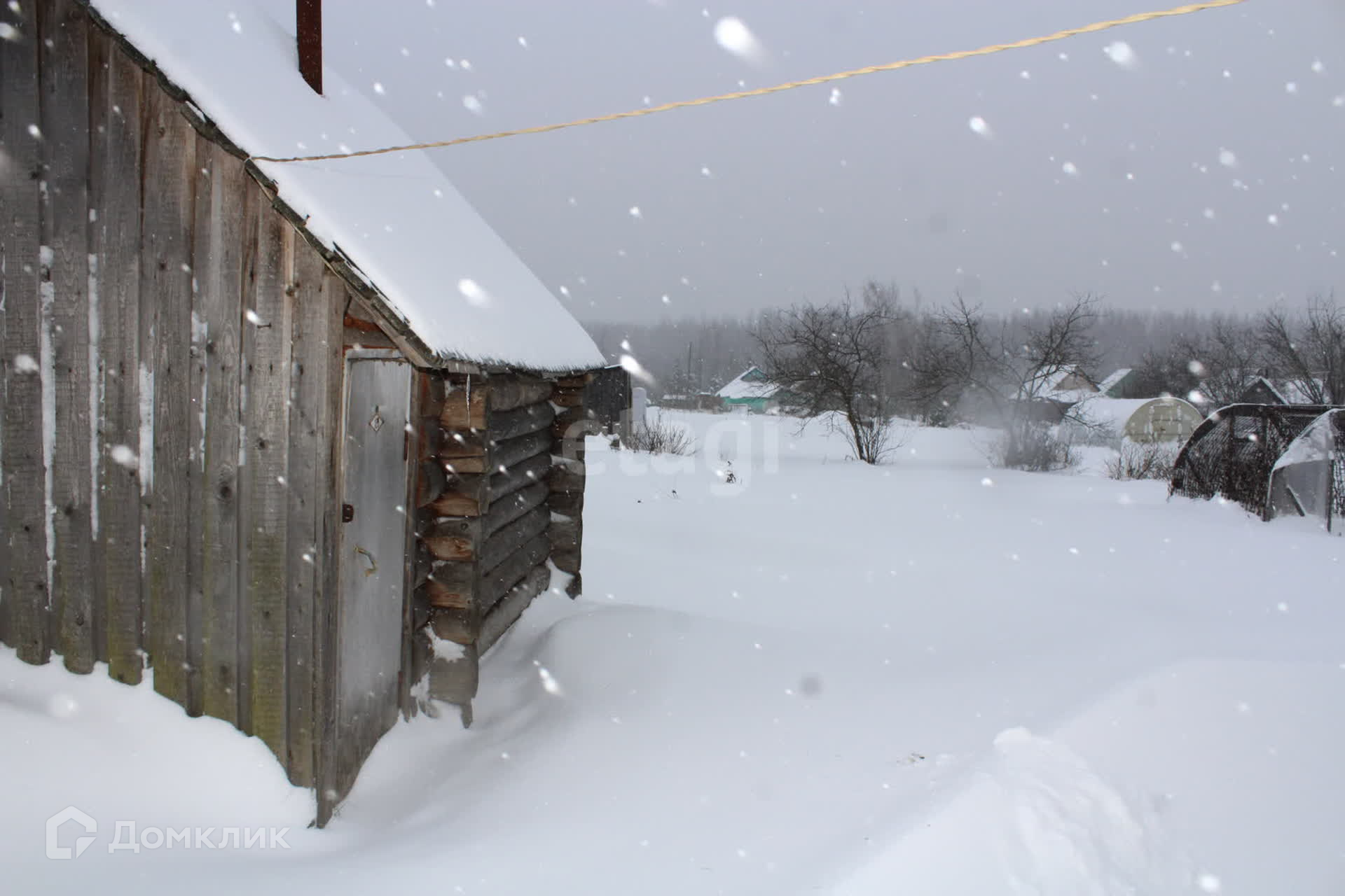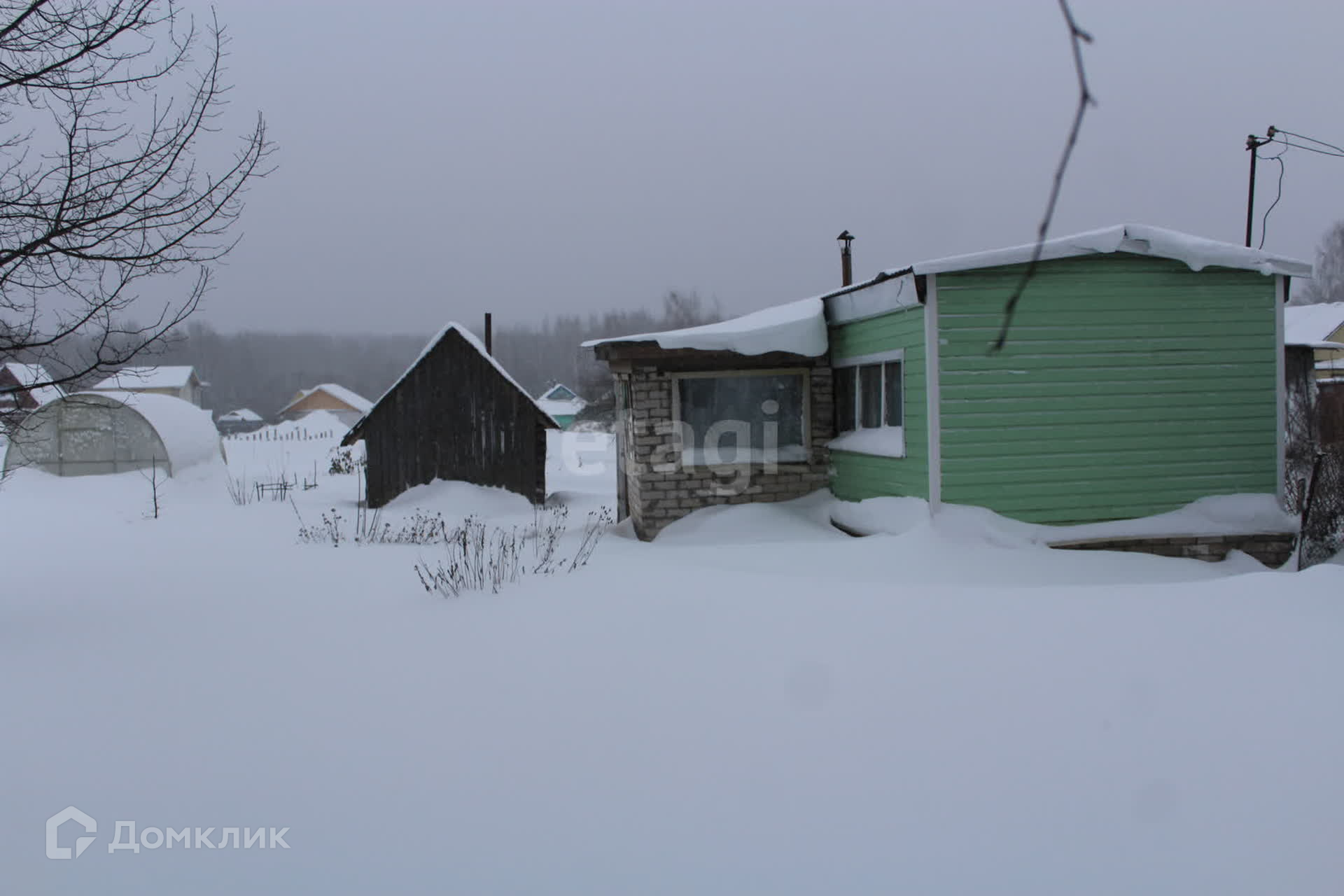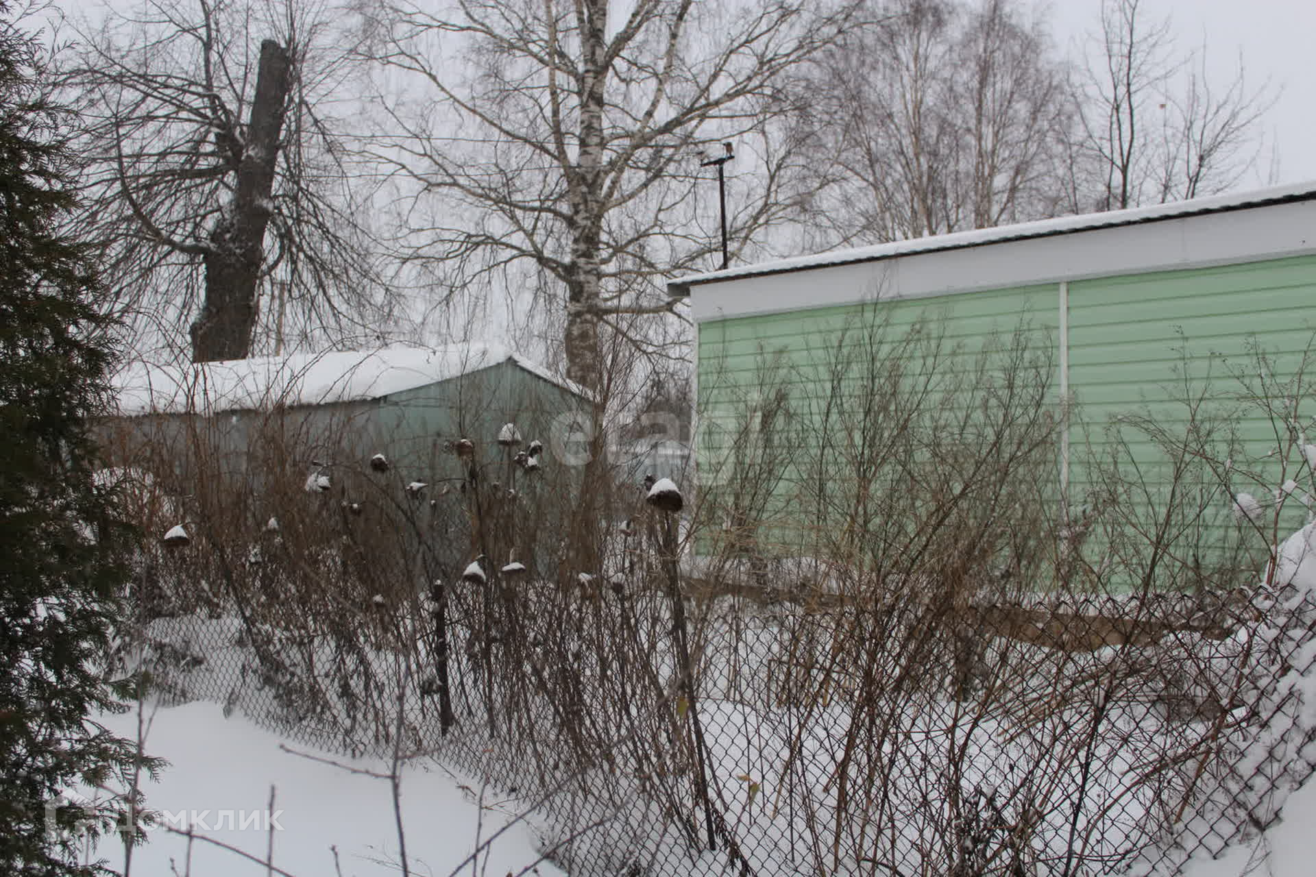 На участке расположен металлический гараж, баня, дровяник, небольшая постройка для содержания птицы или кроликов.