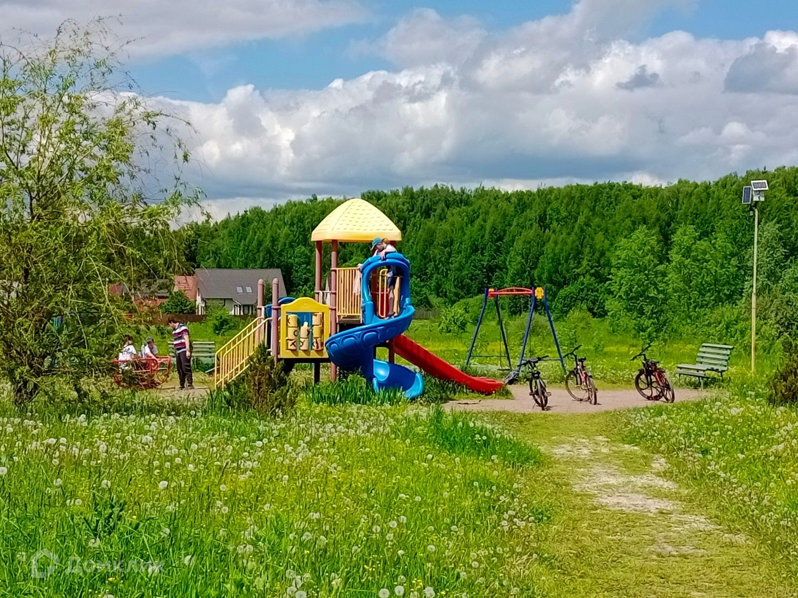 На участке есть все атрибуты для хорошего времяпрепровождения на свежем воздух-бассейн, детская площадка, зона отдыха.