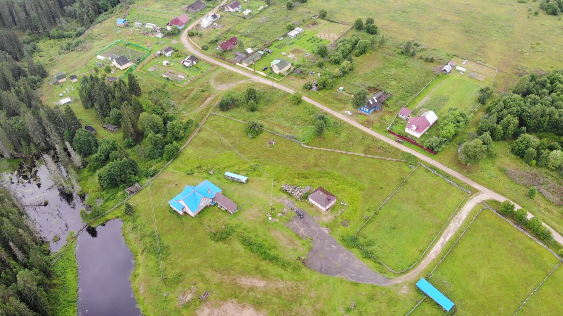 На территории проходит речка и есть пруд, плодородная почва и много леса рядом.