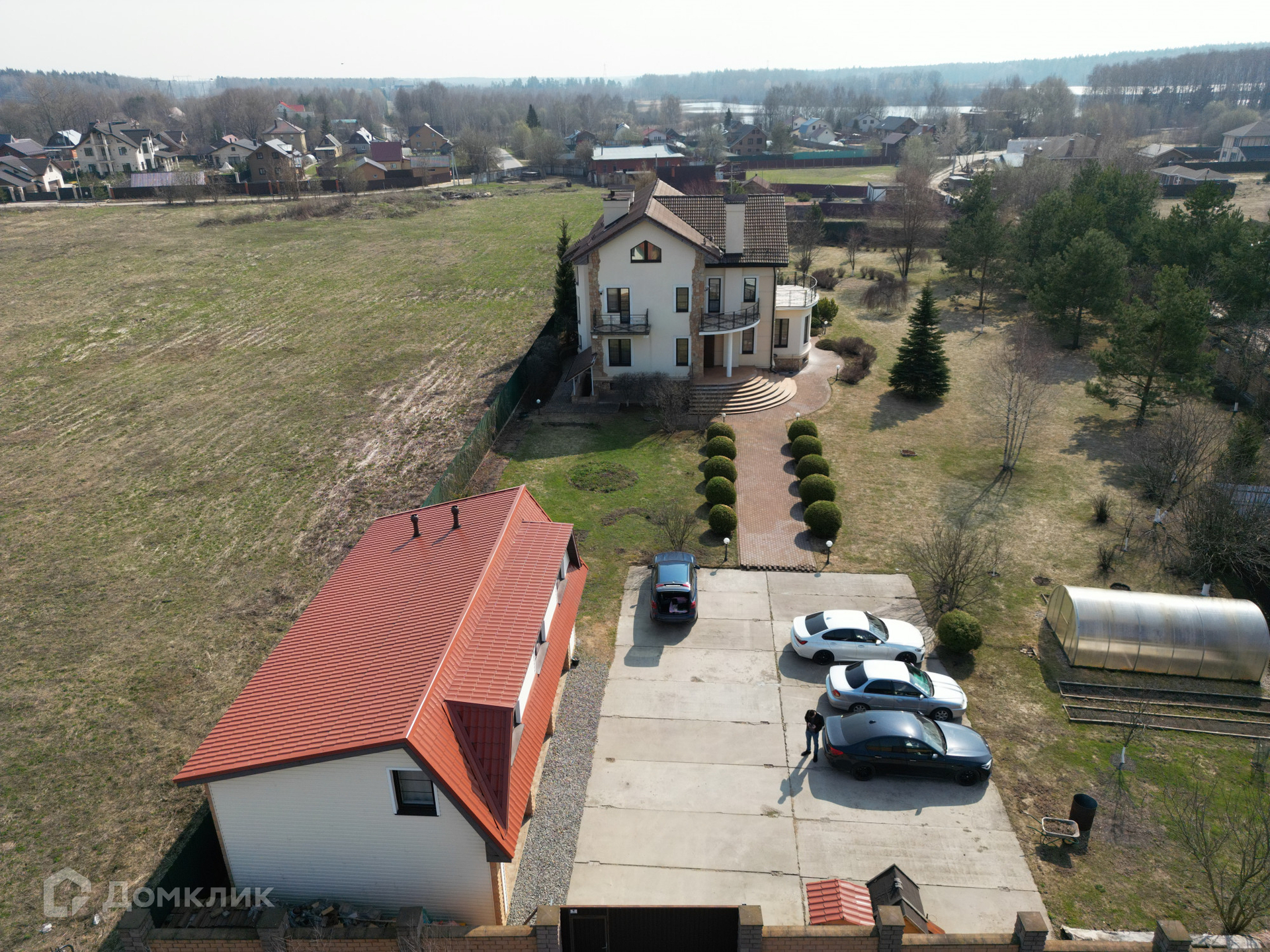 Большой участок 52 сотки с ландшафтным дизайном и дренажной системой, огорожен забором и автоматическими воротами. Отапливаемый двухэтажный гараж (124 кв.м): три машиноместа и квартира для персонала. Во дворе стоит теплица для выращивания аграрной продукции.