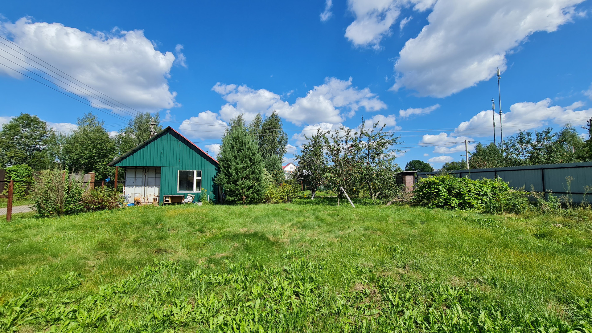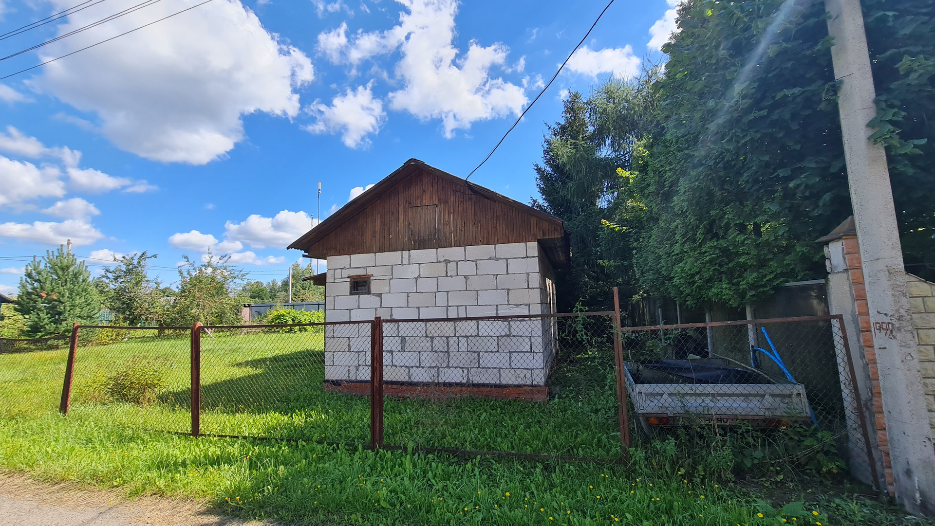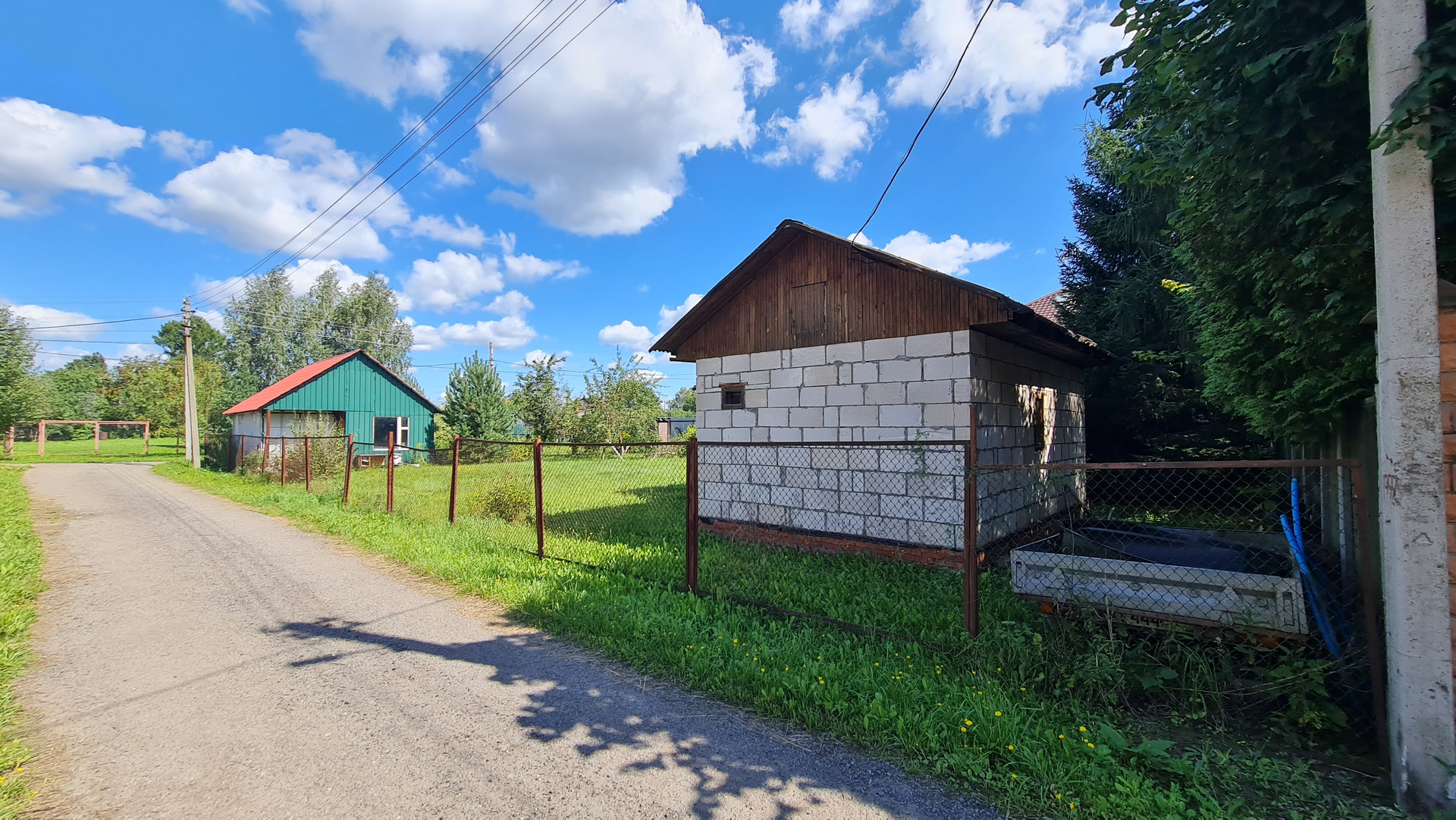 На участке построен дом из газоблоков 35 м2, и расположен хозблок 25 м2 из контейнера морского и пристройки из профнастила. Участок ровный. Колодец 7 колец. Электричество заведено в дом и хозблок. Установлены счетчики. Переуступка прав аренды. Договор на 49 лет.  В пешей доступности грибной лес и водные просторы  Учинского водохранилища. В д. Юрьево магазин и автобусная остановка до метро. Документы готовы с сделке.
