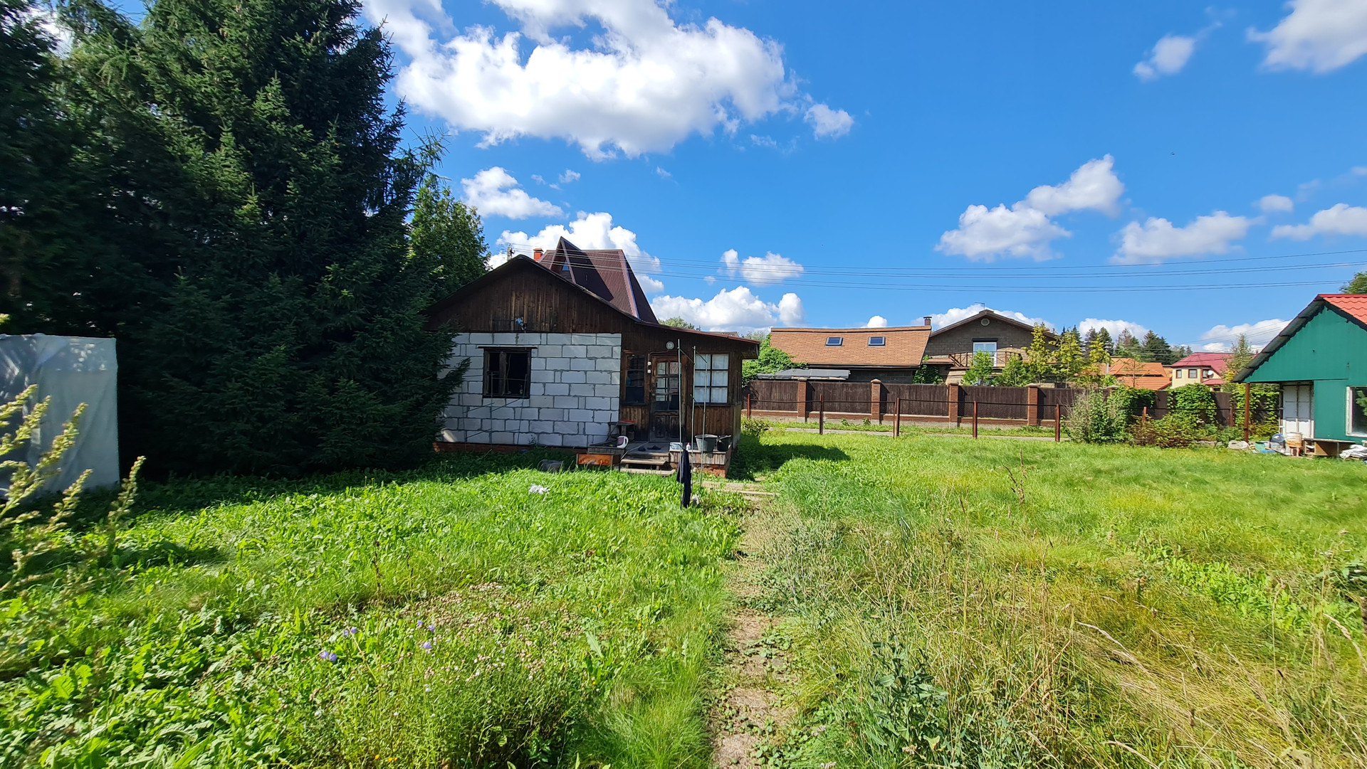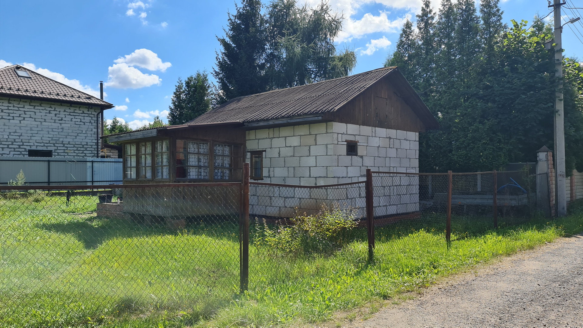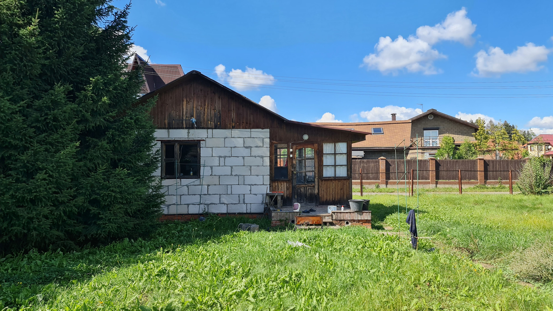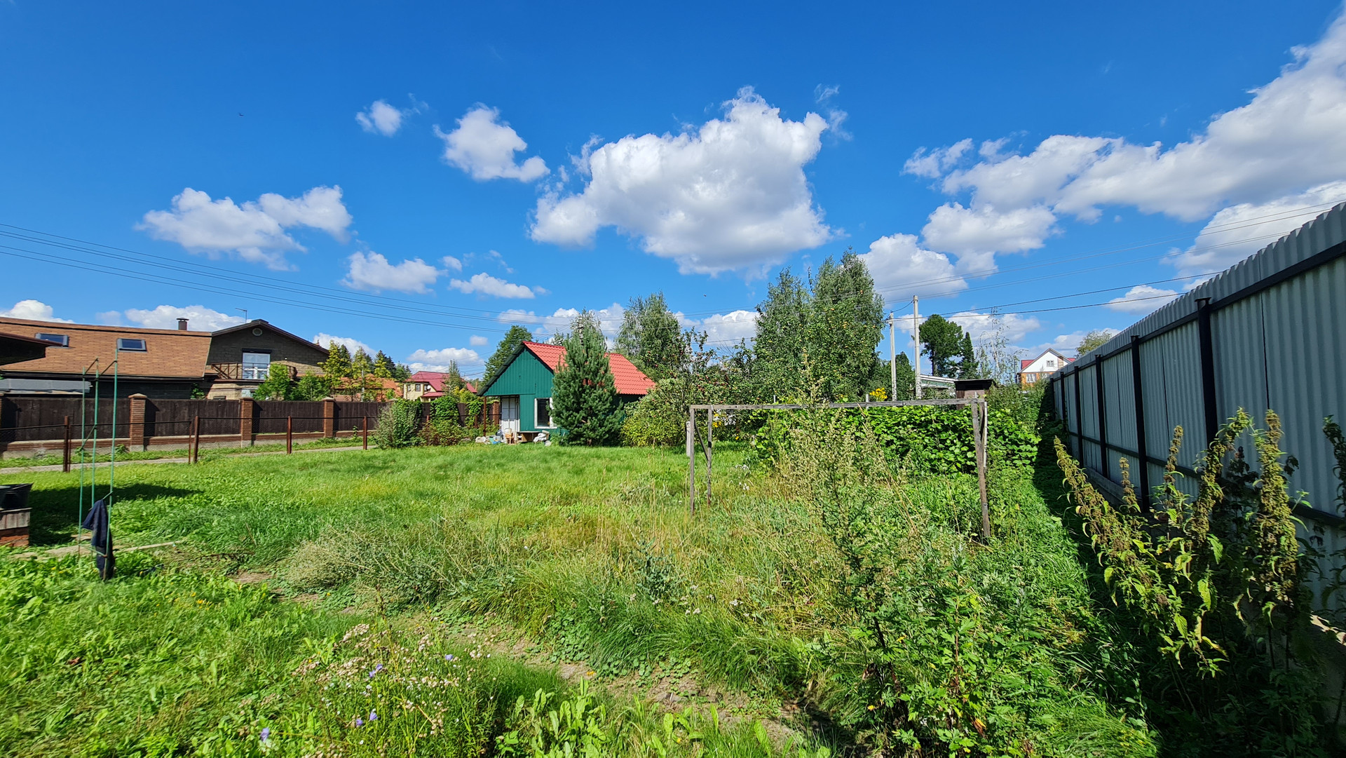 На участке построен дом из газоблоков 35 м2, и расположен хозблок 25 м2 из контейнера морского и пристройки из профнастила. Участок ровный. Колодец 7 колец. Электричество заведено в дом и хозблок. Установлены счетчики. Переуступка прав аренды. Договор на 49 лет.  В пешей доступности грибной лес и водные просторы  Учинского водохранилища. В д. Юрьево магазин и автобусная остановка до метро. Документы готовы с сделке.