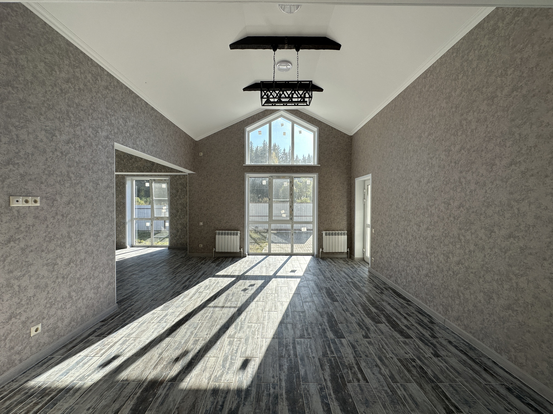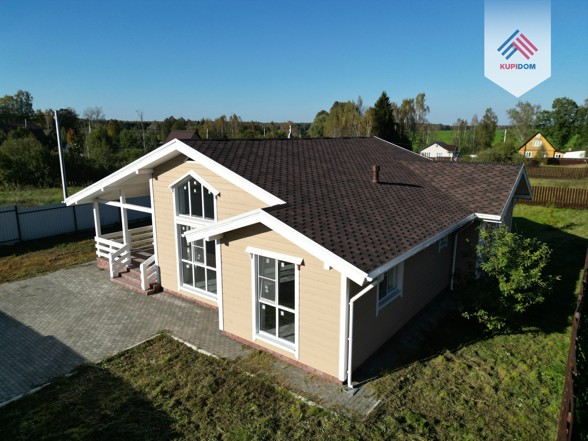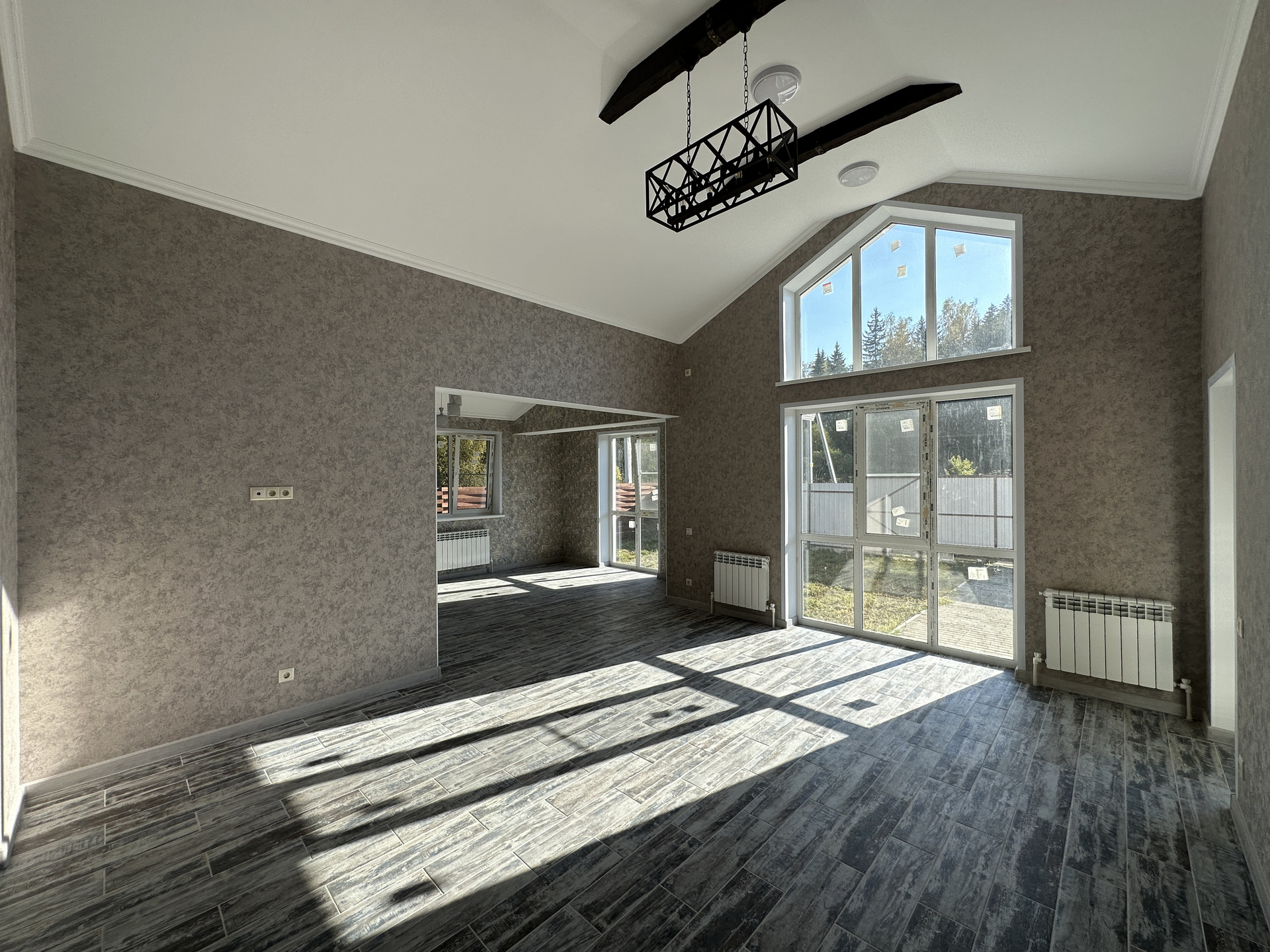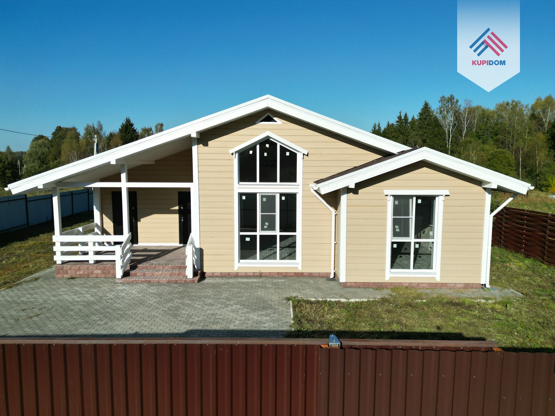 В продаже блочный дом с большими панорамными окнами и вторым светом гостиной зоны.
