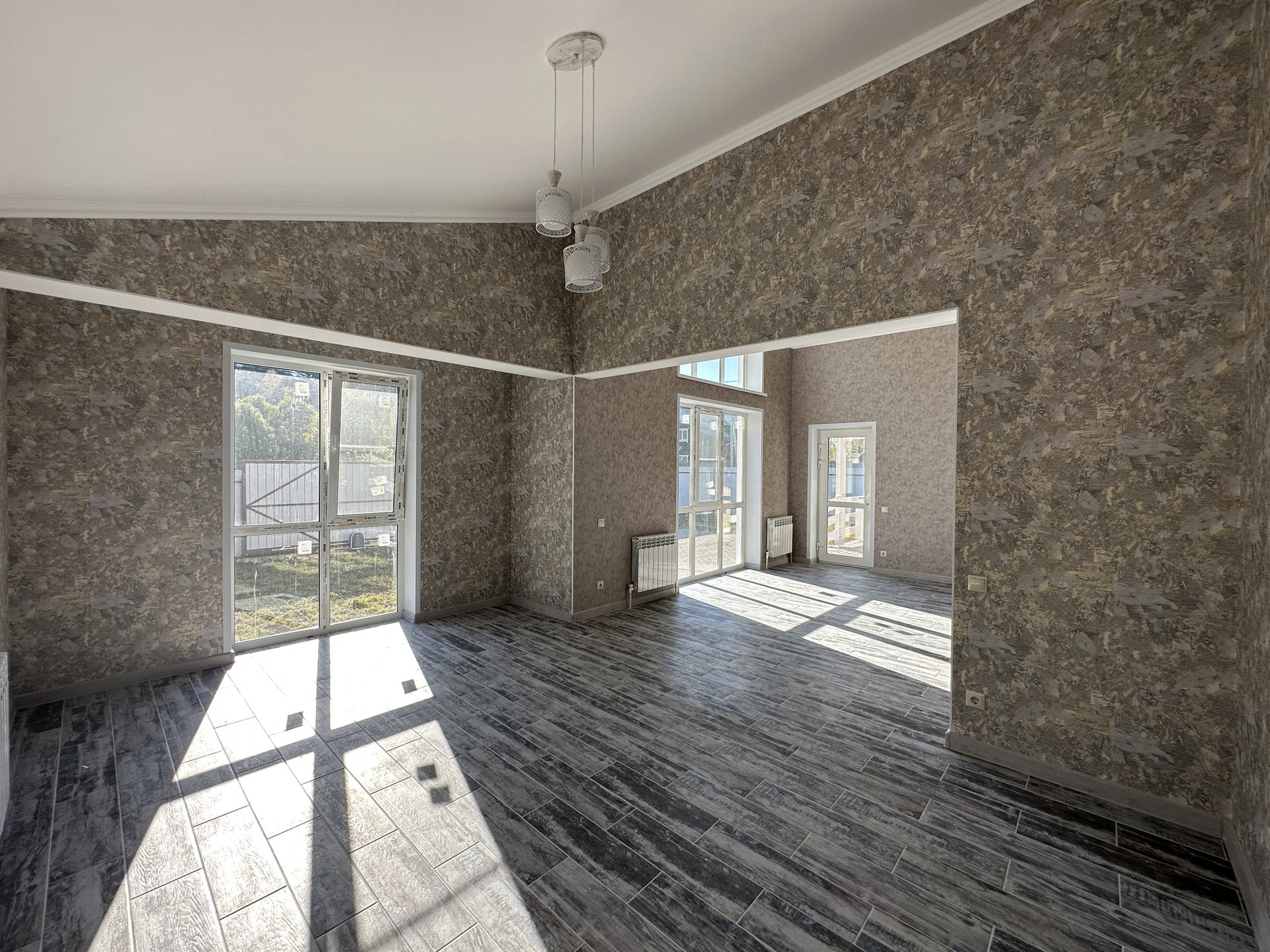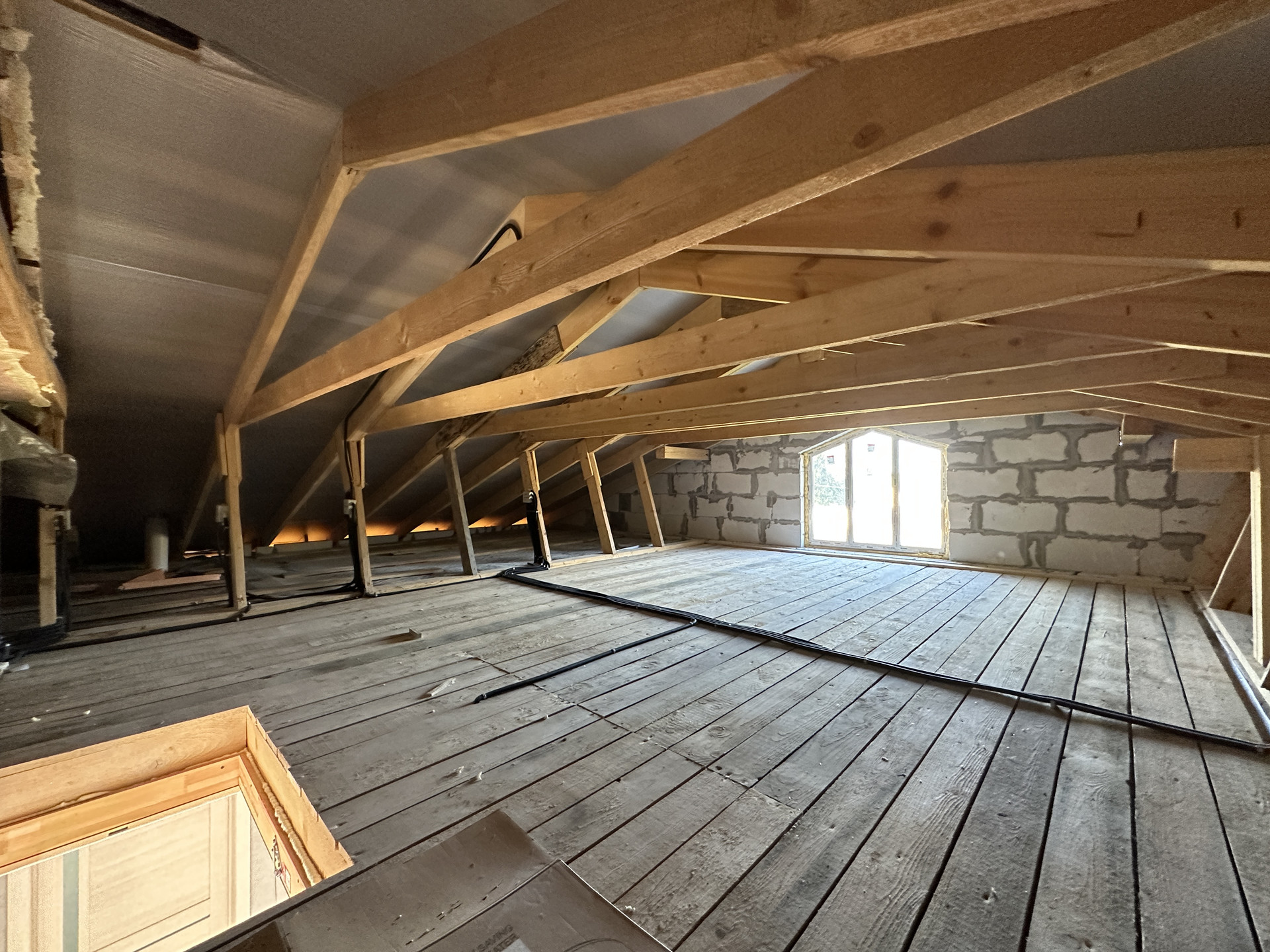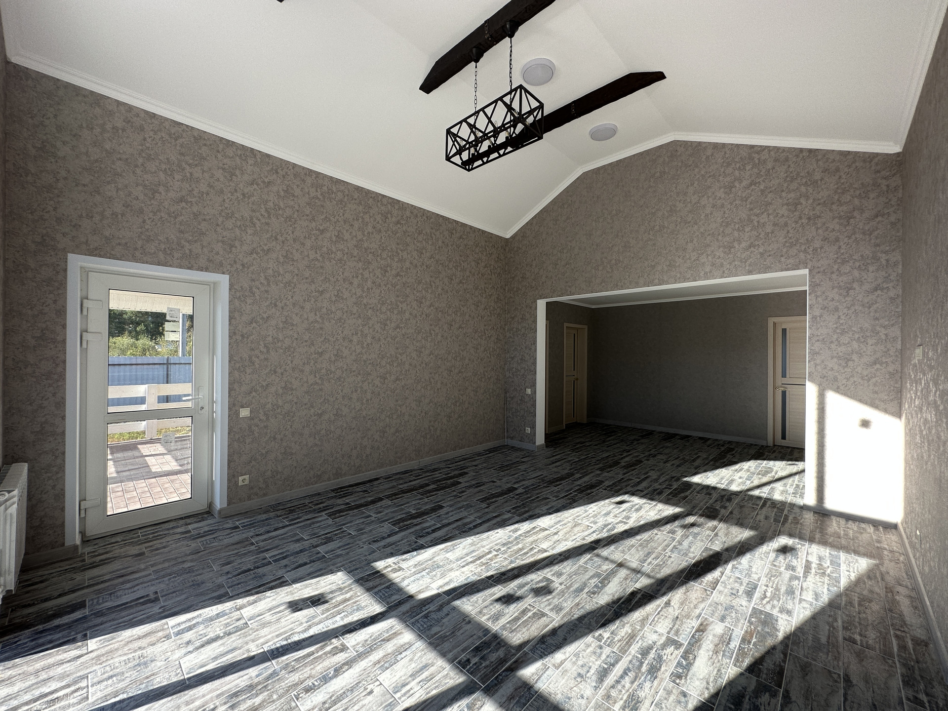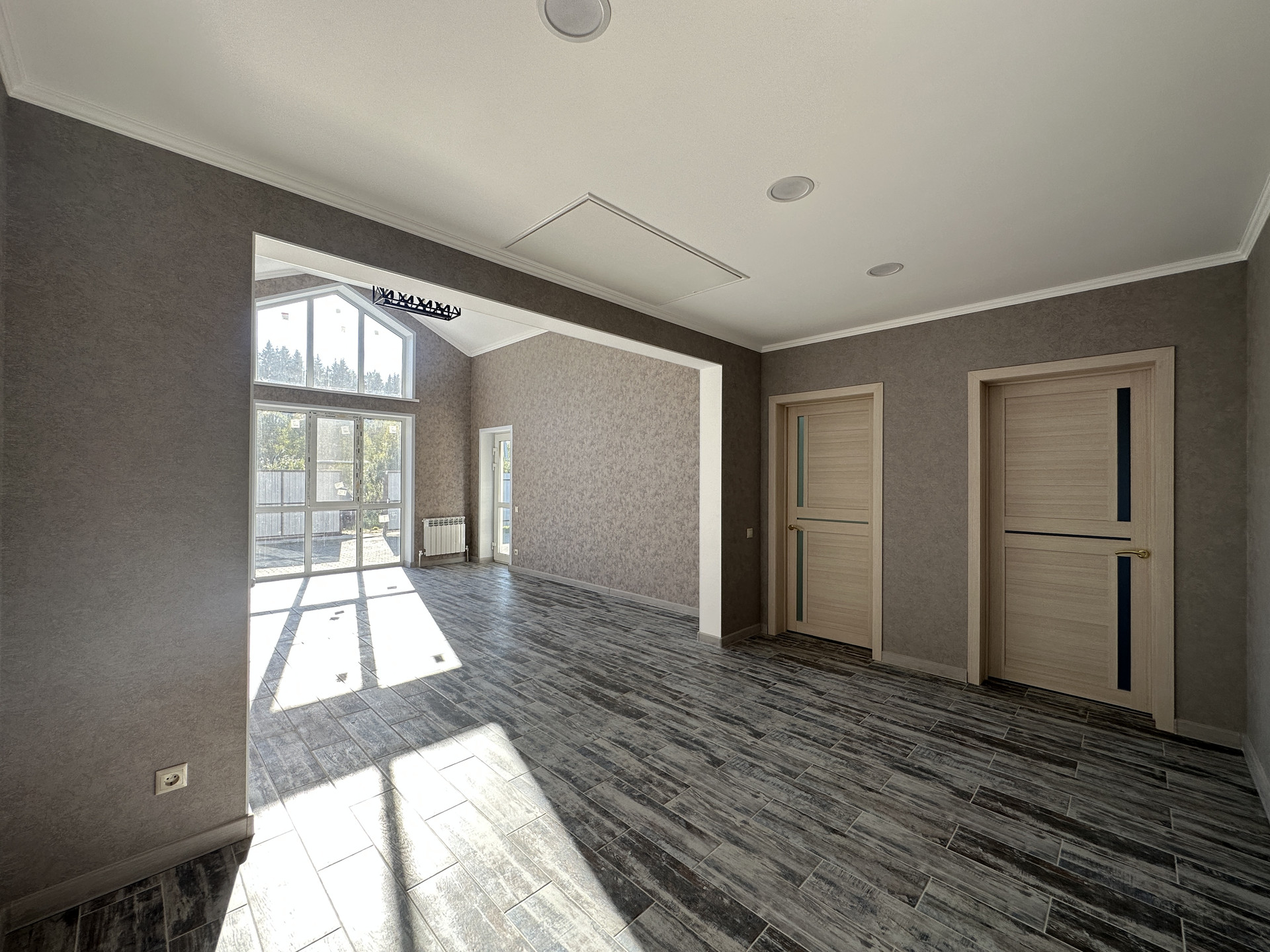 В продаже блочный дом с большими панорамными окнами и вторым светом гостиной зоны.