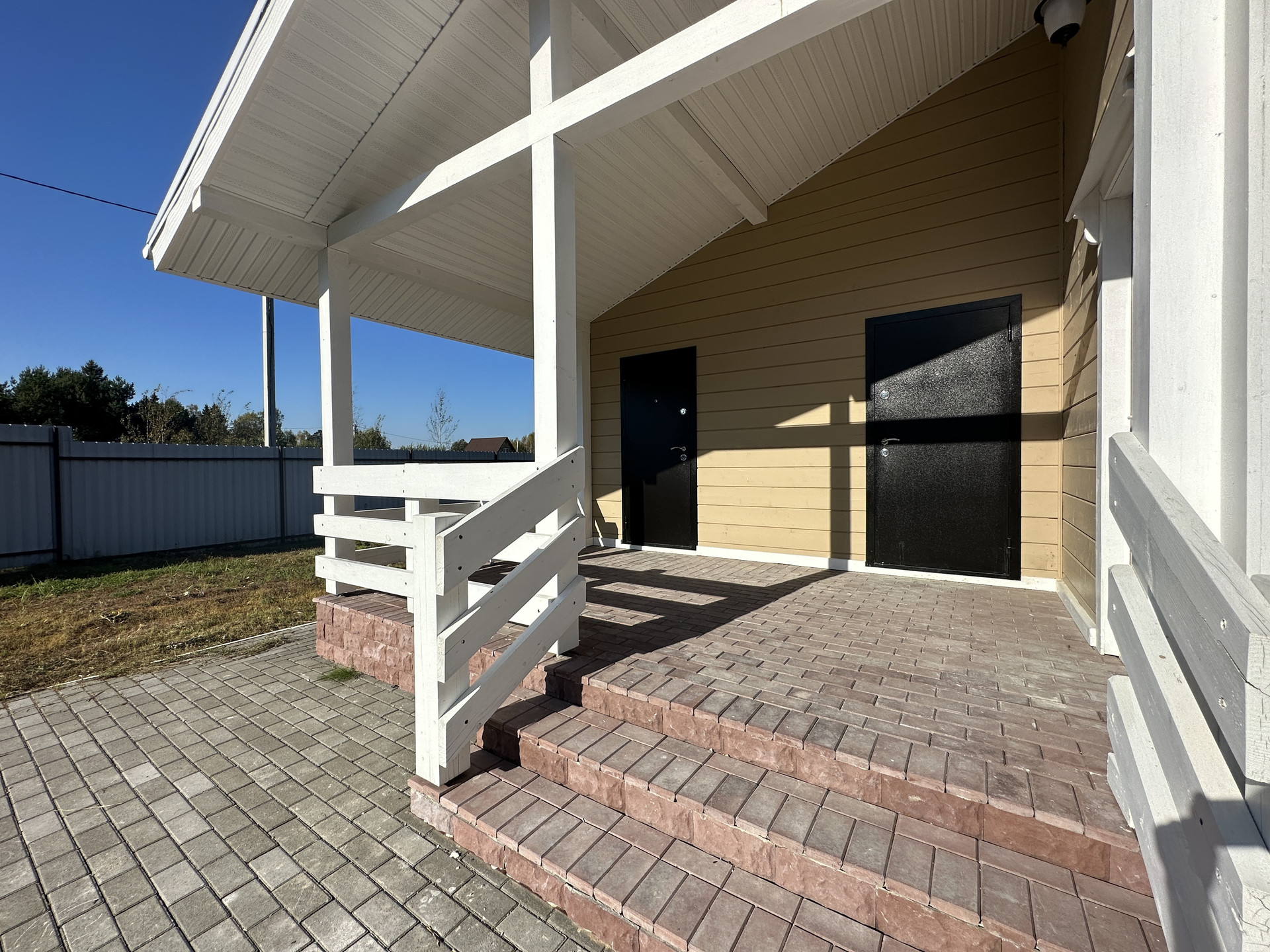 12 соток. Ровный, правильной формы. По периметру дома выведены отливы в дренажную систему. Отмостка и место для машины выполнено брусчаткой. Категория земель - земли населенных пунктов, целевое использование - для индивидуального жилищного строительства (ИЖС); Забор - профлист/штакетник по периметру.
