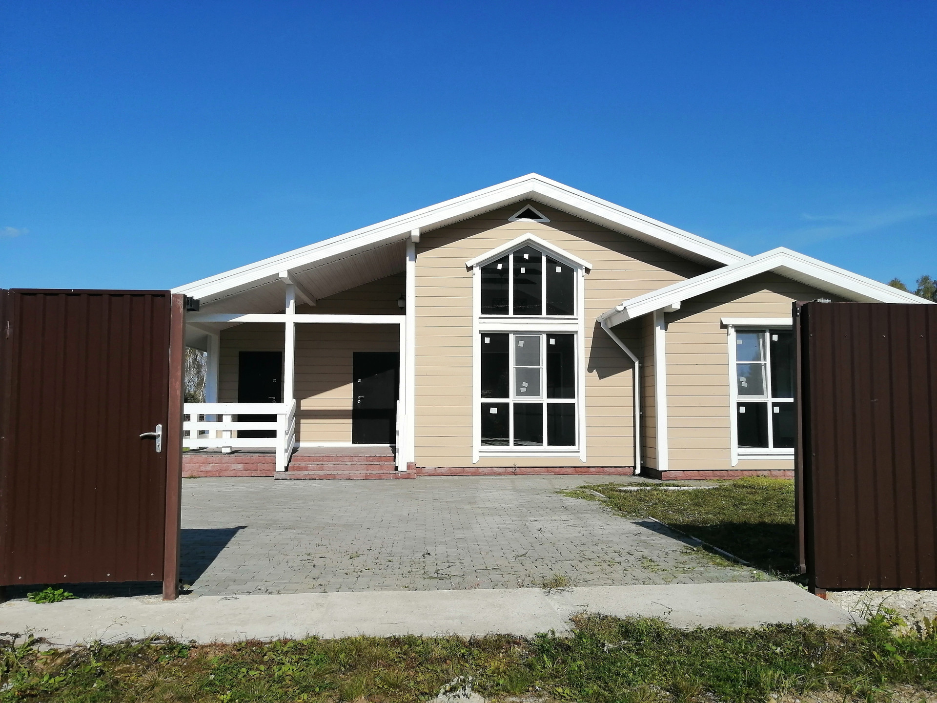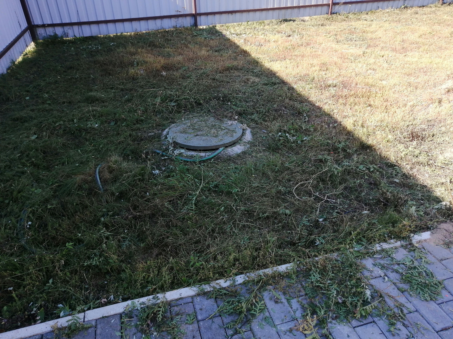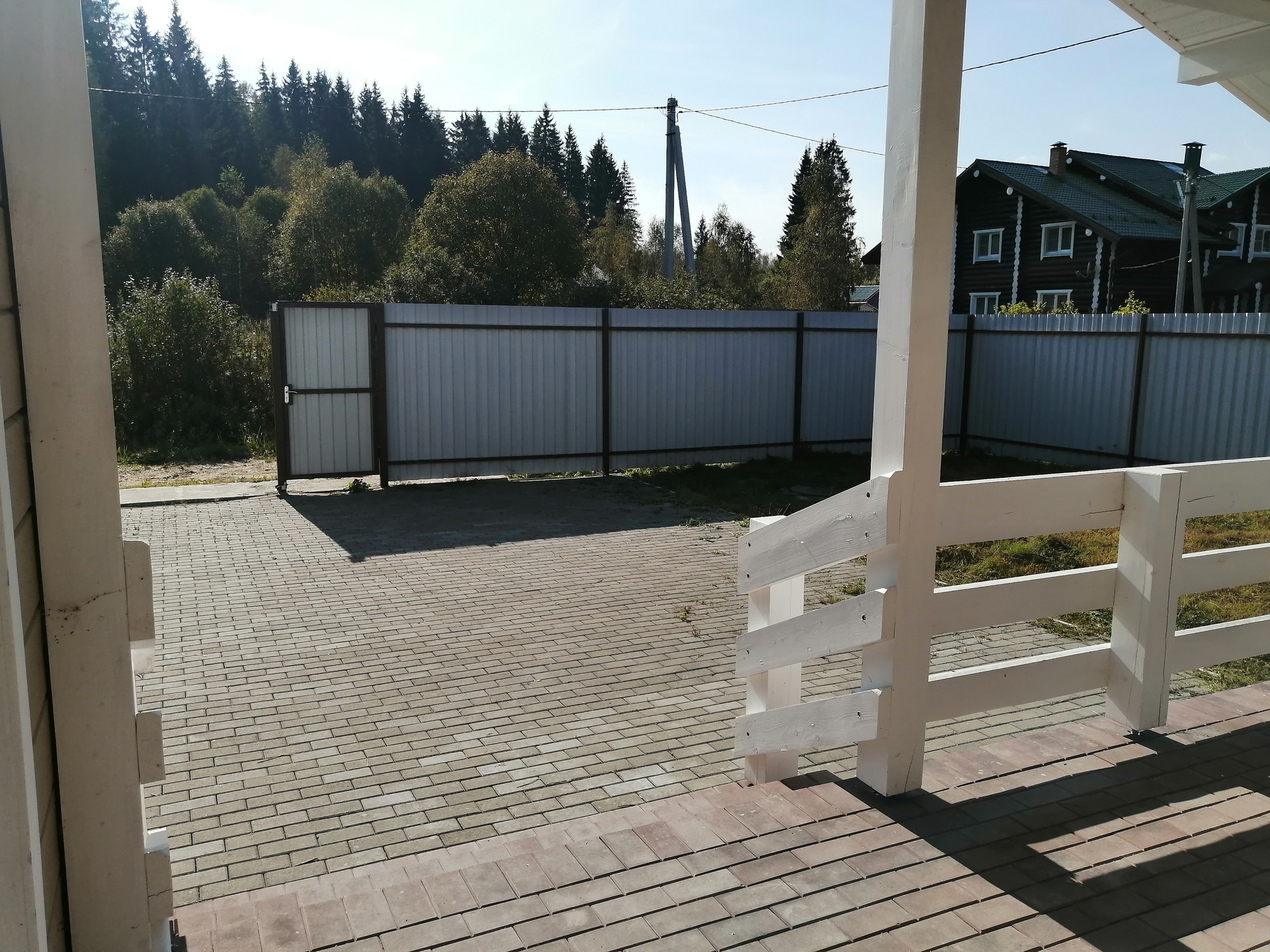Участок 9,6 соток, ровный. Въезд выложен брусчаткой.Участок весь огорожен профильным листом (одна сторона дерево), ворота автоматические.