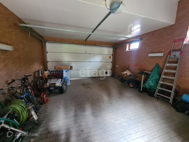 Гараж на 2 автомобиля размером 7 х 5,37 метра, помещаются два внедорожника. В гараже имеются стеллажи для хранения различных вещей.