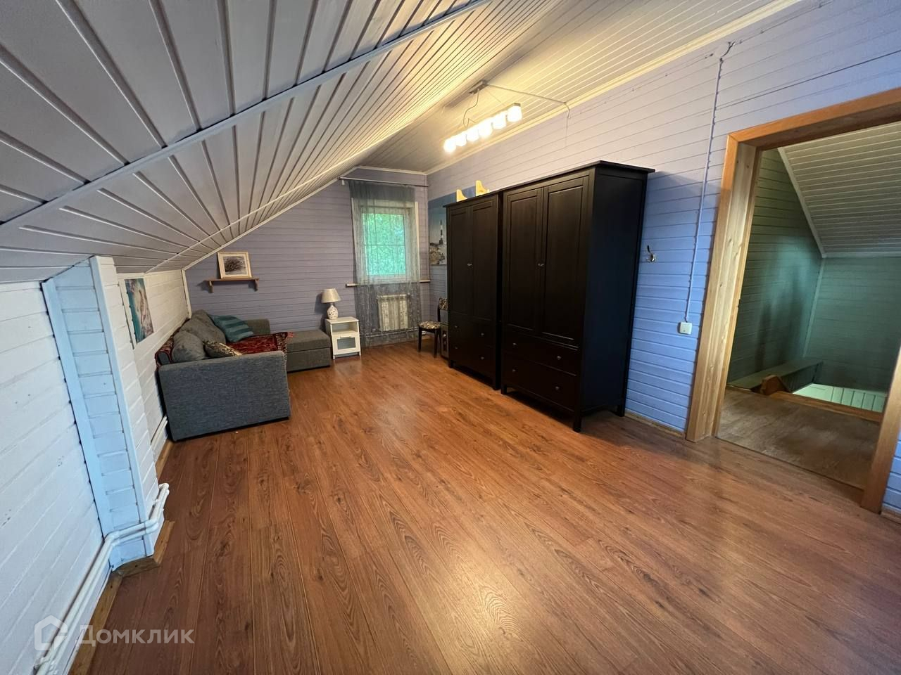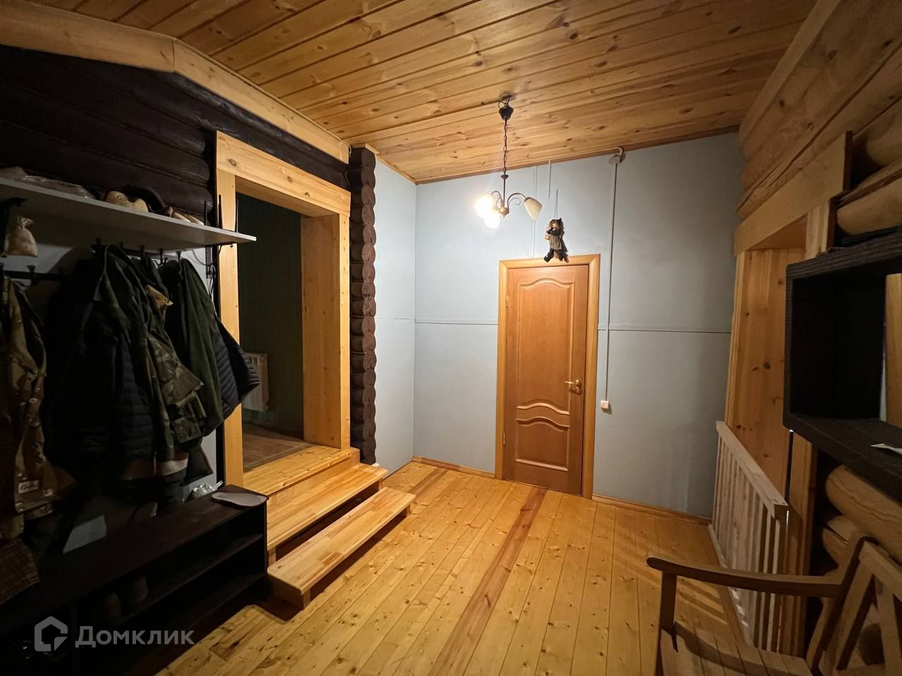 На первом этаже дома находится большая веранда, кухня, уютная гостиная с камином, два санузла, баня, спальня. На втором этаже две большие комнаты.