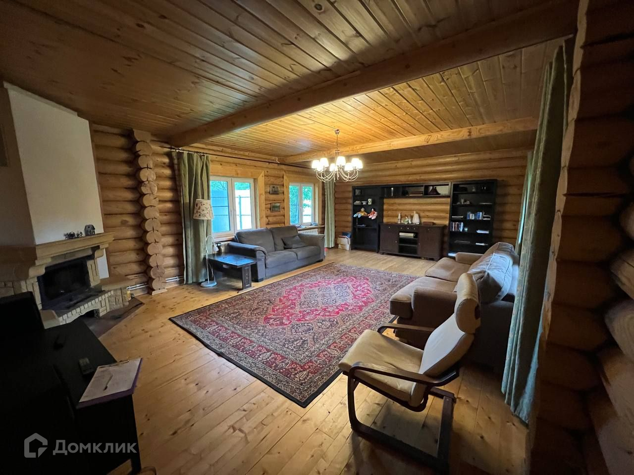 Дом построен из бревна ручной рубки, минимальный диаметр которых 30 см. Установлен на ленточный фундамент, что демонстрирует хорошие качества в процессе эксплуатации. Также данный фундамент не нуждается в постоянном обслуживании и ремонте, поскольку является долговечным, прочным и надёжным.
