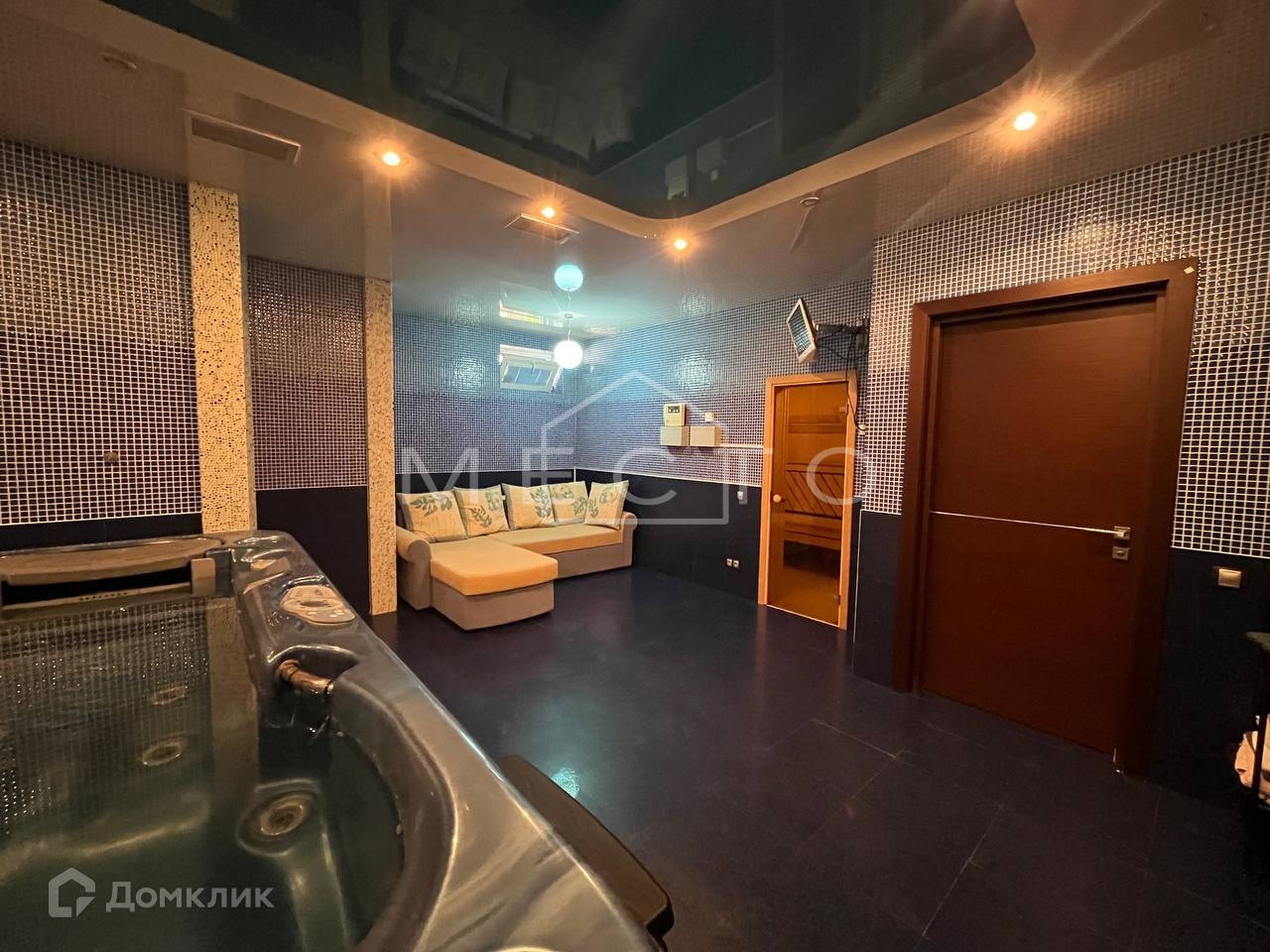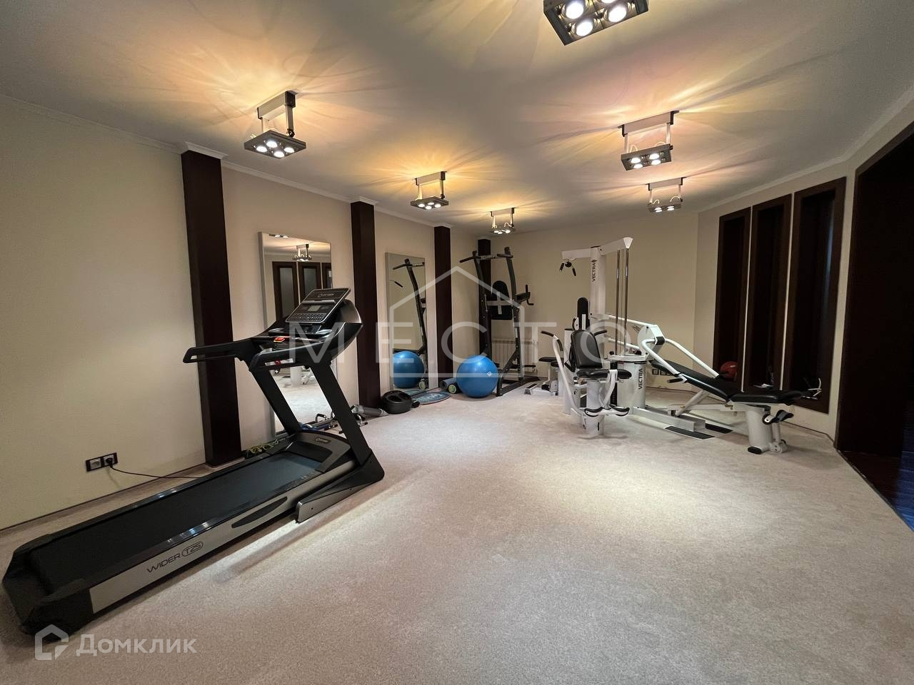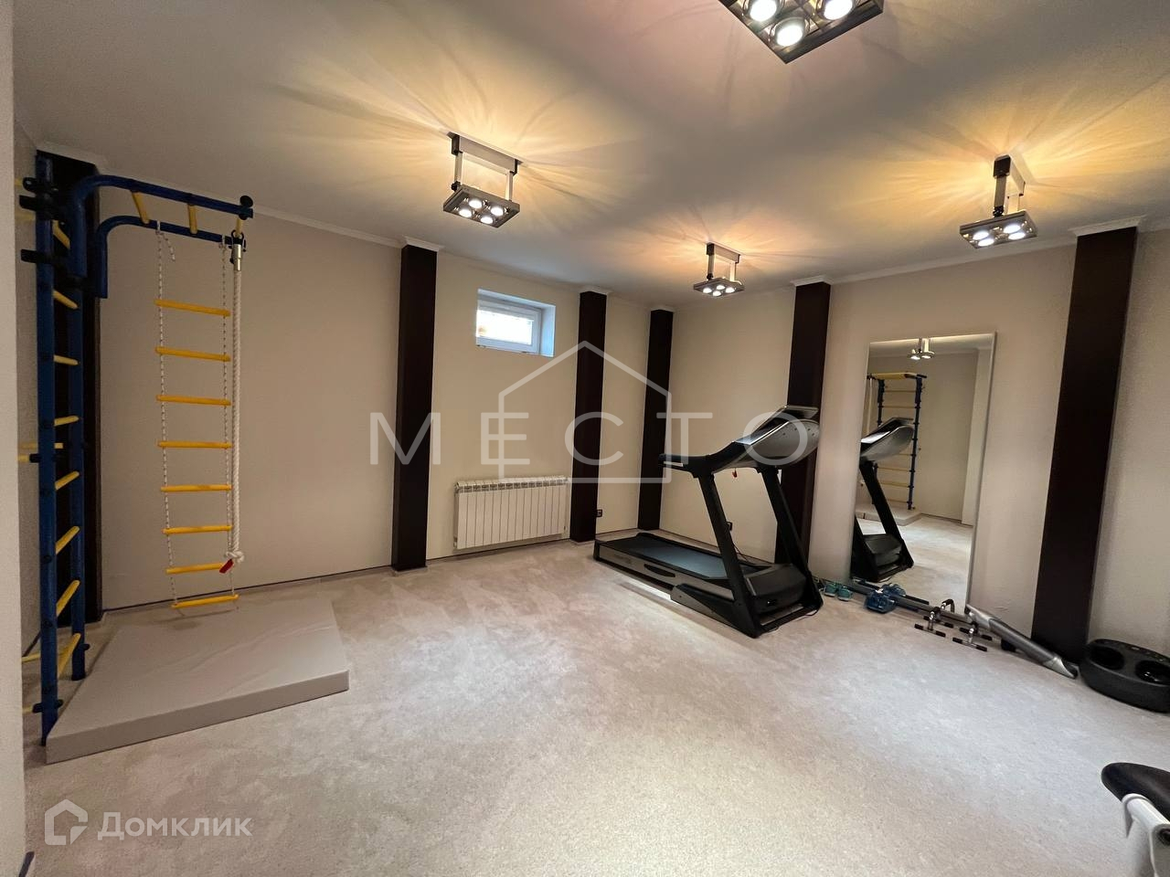 - Цокольный этаж : котельная (газ, система очистки воды), сауна, джакузи, тренажерный зал, сан-узел с душевой, солярий, постирочная