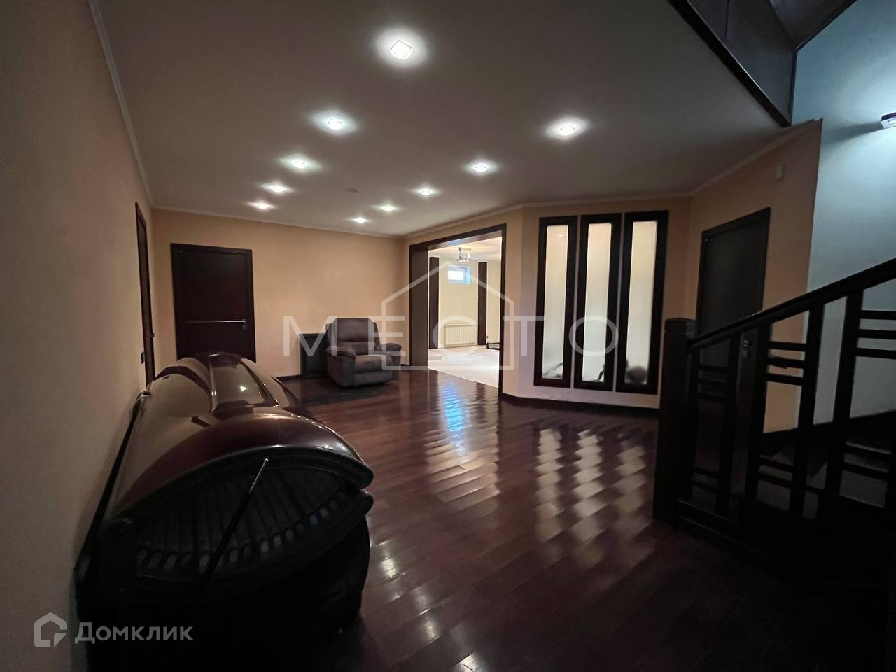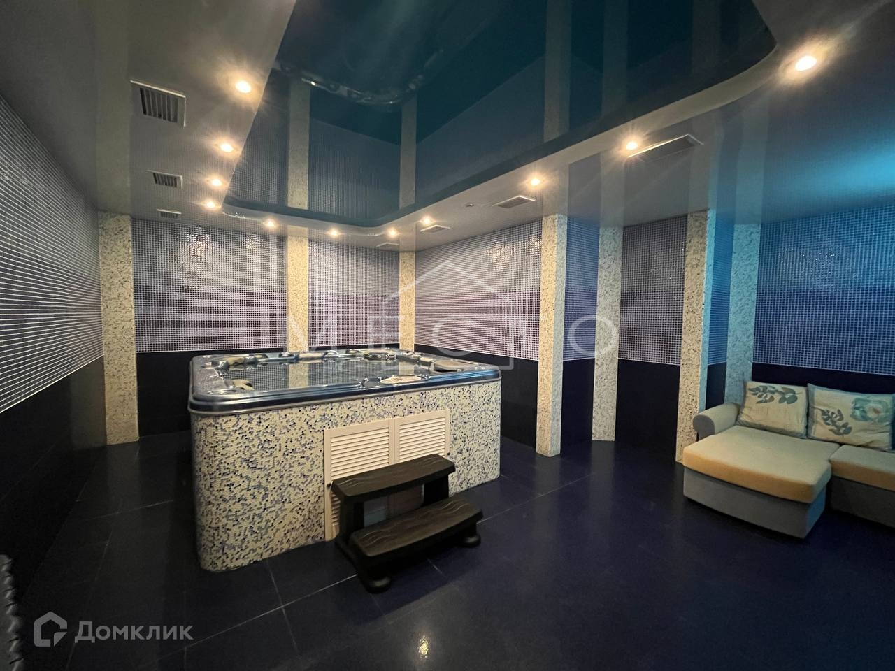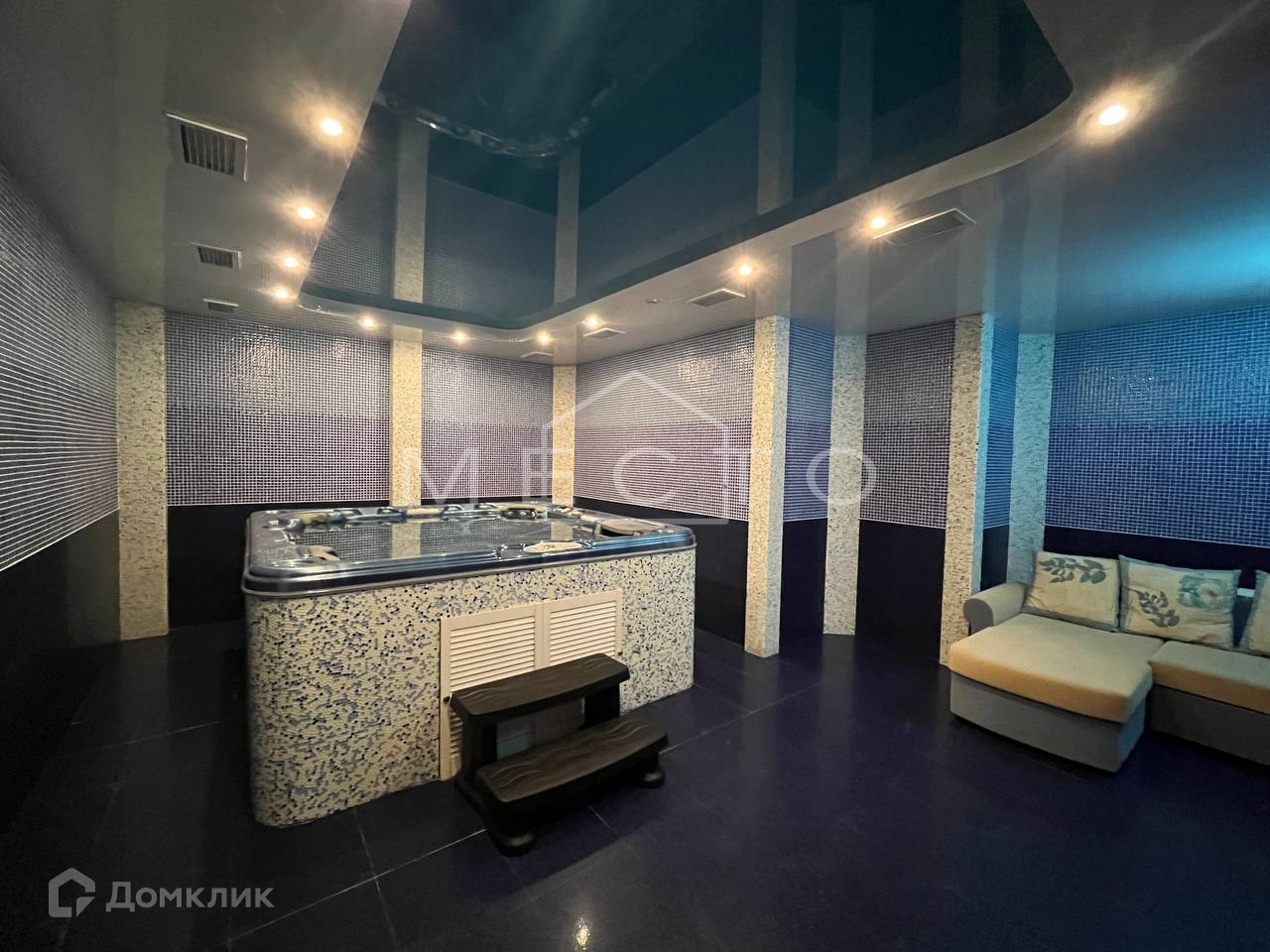 - Цокольный этаж : котельная (газ, система очистки воды), сауна, джакузи, тренажерный зал, сан-узел с душевой, солярий, постирочная