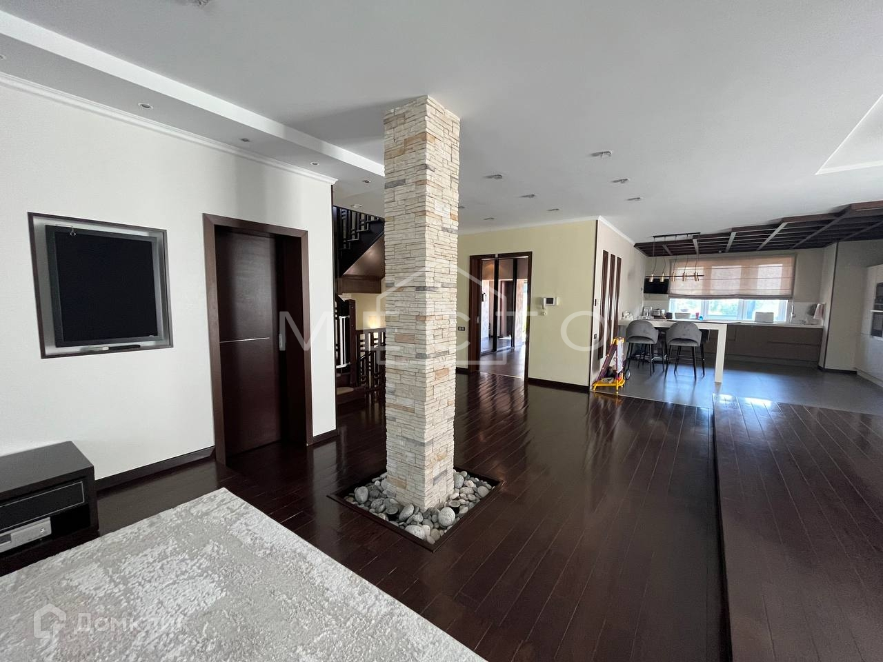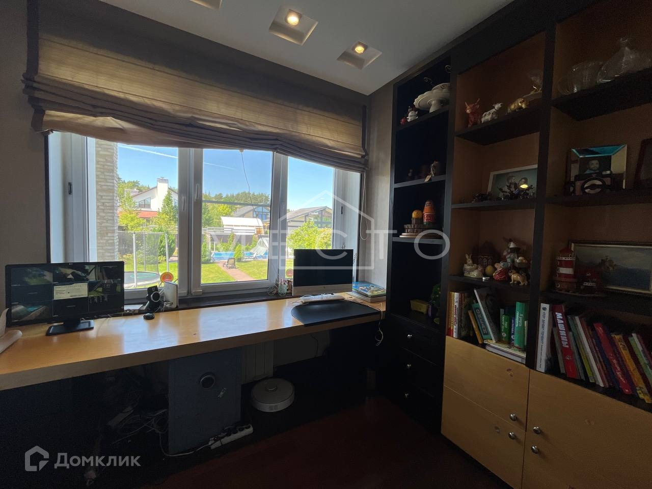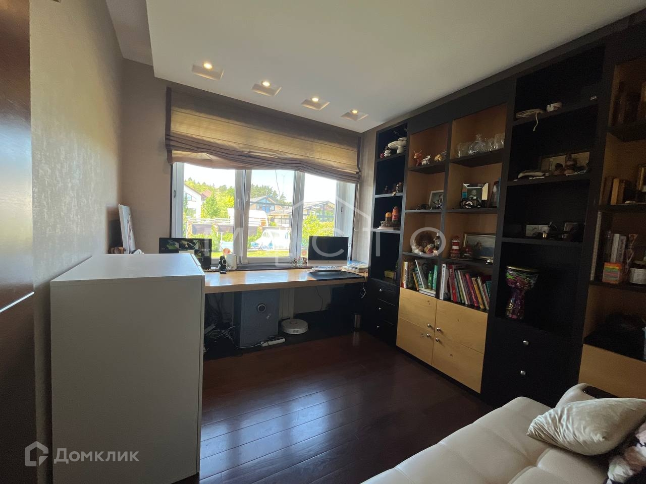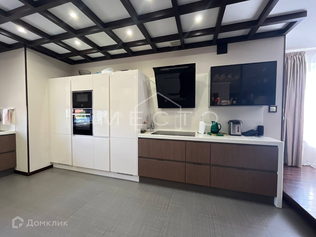 - 1 этаж : просторный коридор со шкафом купе, сан-узел, кухня-гостиная с встроенной бытовой техникой премиум класса (духовка, СВЧ фирмы NEFF), посудомоечная машина MIELE , два встроенных холодильника LIEBHERR, плита NEFF, вытяжка ELICA . Гостиная с камином, домашним кинотеатром, с выходом на задний двор, кабинет c рабочей зоной.