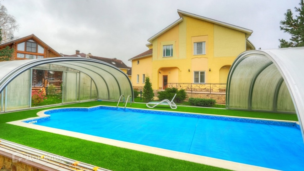 Номер объекта: 009843. Продам дом на Пятницком шоссе, в 5 км. от МКАД, в коттеджном поселке Горки-7. Дом 3-х уровневый, кирпичный, общей площадью 560 м.кв., расположен на участке размером 30 сот. Есть отдельностоящий гараж на 5 м/м. Все коммуникации центральные. Дом готов к проживанию. На первом этаже: холл, прихожая с гардеробом и с/у, кухня, столовая с выходом на террасу, гостиная с камином и кинотеатром, кабинет. На втором этаже: мастер-спальня с гардеробной, с/у и выходом на балкон, детская, 2 спальни, с/у, прачечная. В мансарде: гардеробная, спальня. На участке: гараж на 3 м/м. Дом для персонала с гаражом на 2 м/м. Баня с кухней, гостиной с камином, спальней и бильярдом. Крытый бассейн.