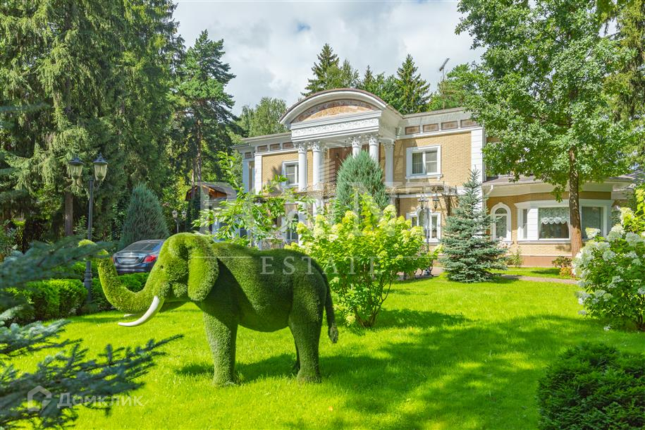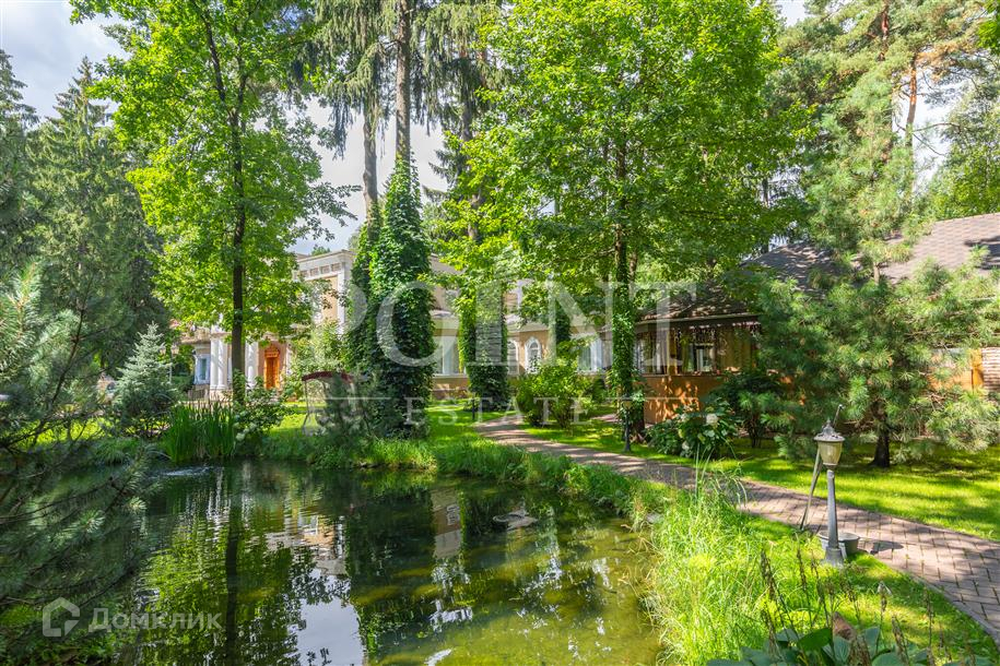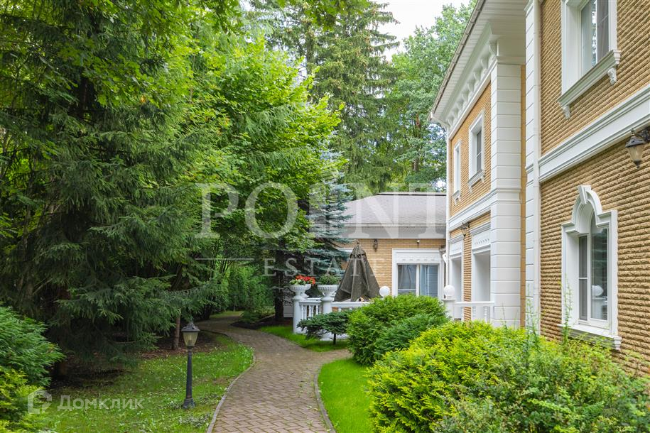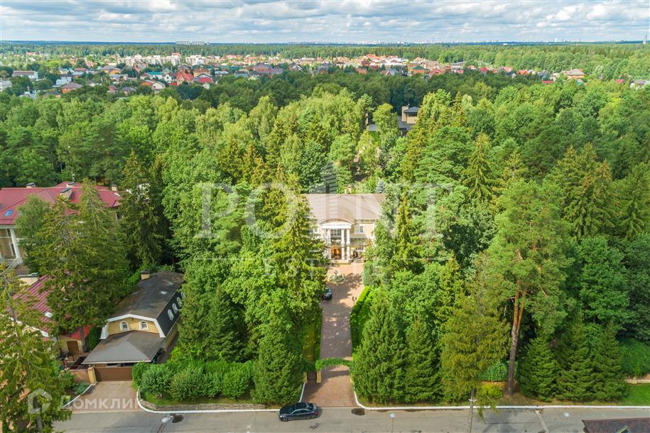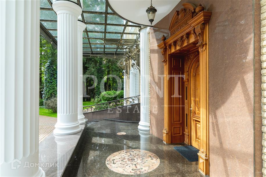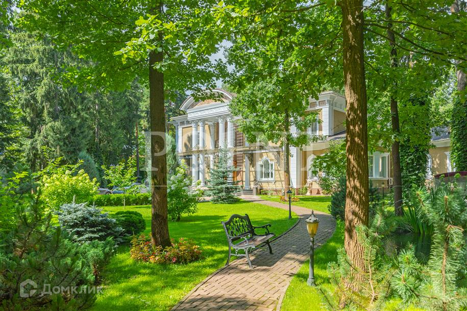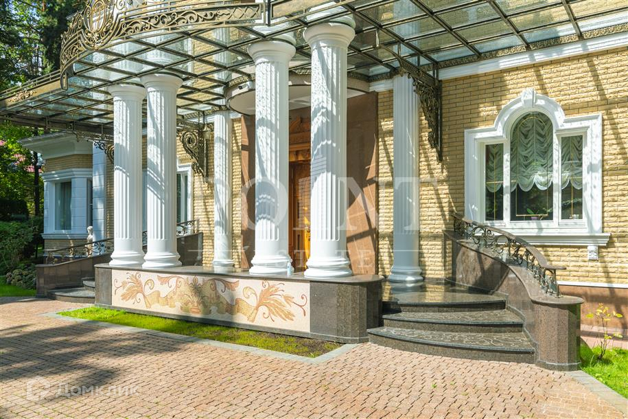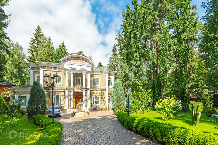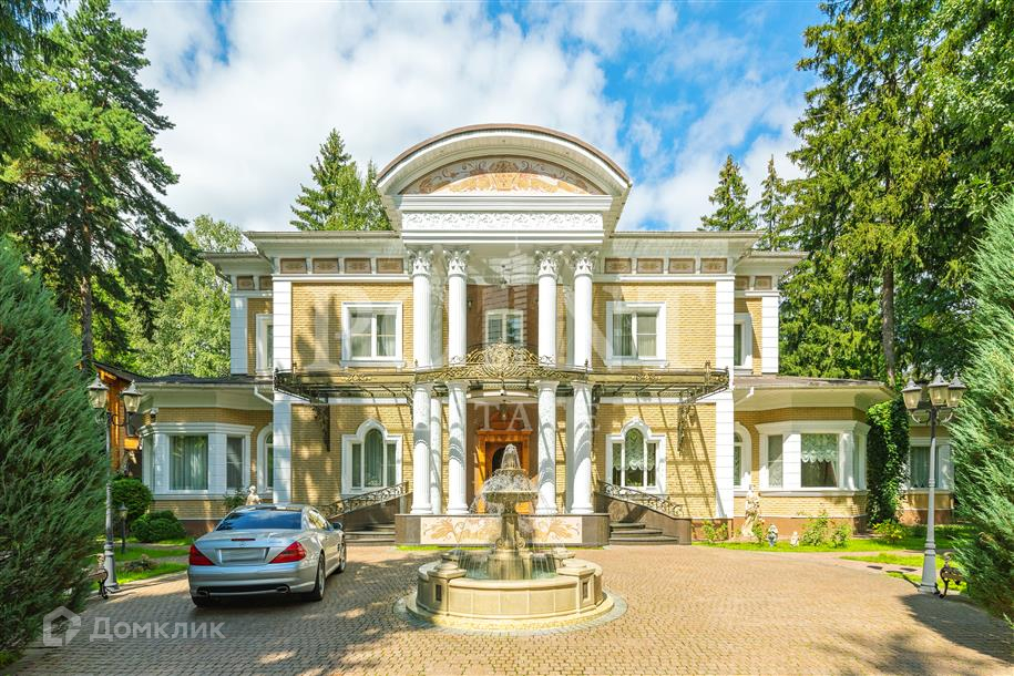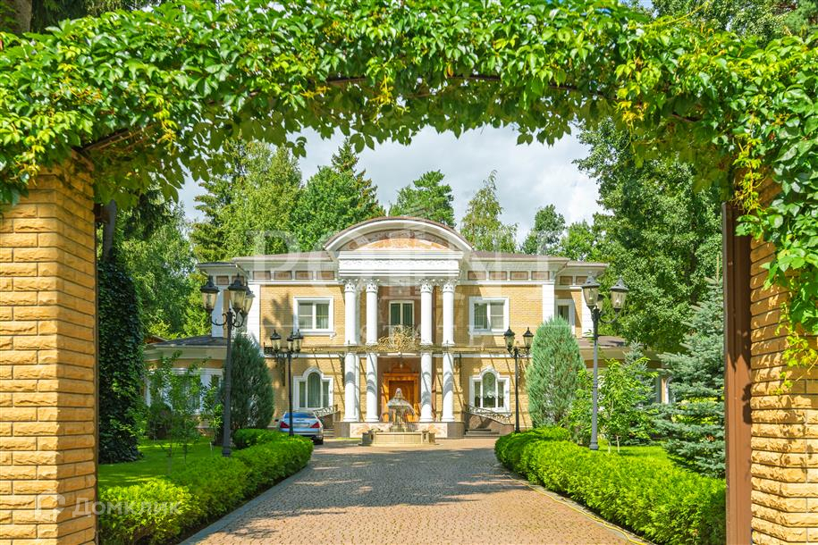 Лот: 101443.   Двухэтажный загородный особняк в классическом стиле площадью 670 кв.м под ключ с мебелью располагается на превосходном просторном участке 50 соток на территории лесного массива в охраняемом коттеджном поселке "Горки-7". Дом оснащен системами видеонаблюдения и сигнализации; предусмотрен дом для охраны. На первом этаже находится гостиная с камином, кухня, столовая, кабинет, две спальни, санузел, бассейн, тренажерный зал, зимний сад, гардеробная, большой холл. Второй этаж занимают четыре спальни с индивидуальными гардеробными и санузлами, а также детская игровая. Отдельно построены: гостевой дом из клееного бруса 230 кв.м с русской баней и бильярдной, гараж на четыре машино-места с квартирой для персонала на втором этаже, а также зимняя и летняя беседки вместимостью до 50 человек. На участке выполнен великолепный ландшафтный дизайн, работает система автоматического полива, высажены декоративные растения, имеется фонтан и пруд с осетрами, сазанами, амурами, линями и толстолобиками. Инфраструктура в этом районе Подмосковья более чем развита. В нескольких минутах езды на машине есть кафе, рестораны, магазины и все, что необходимо для жизни.