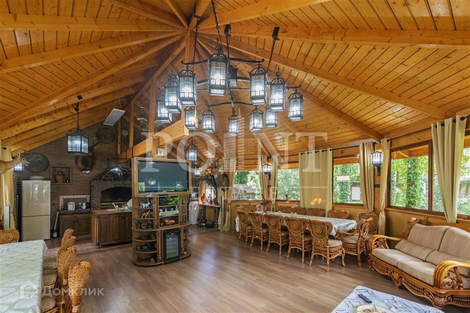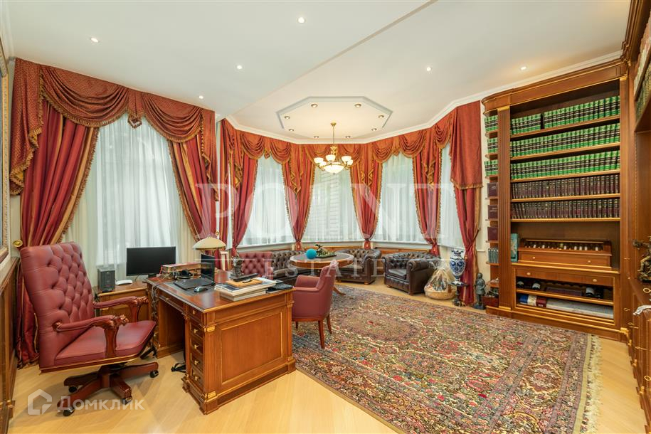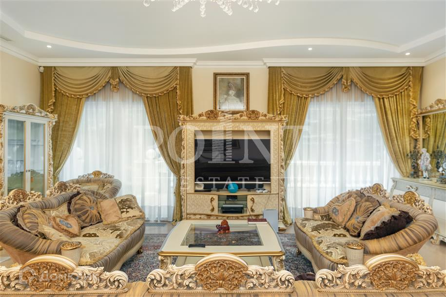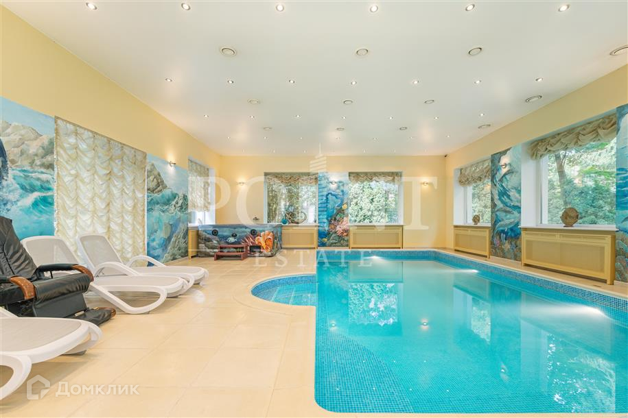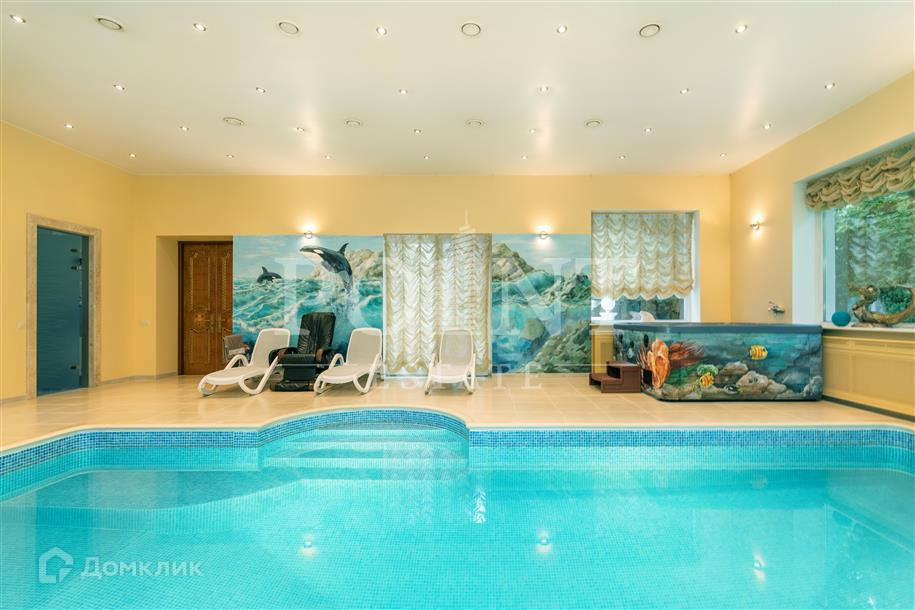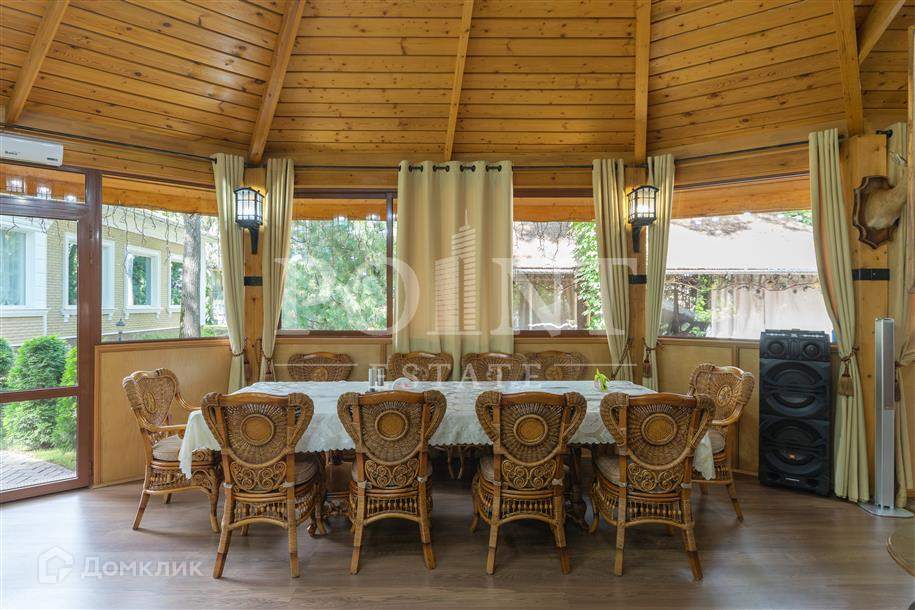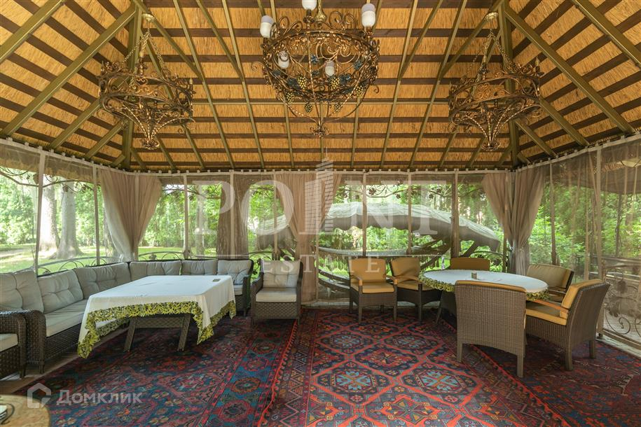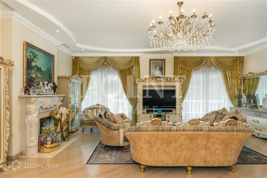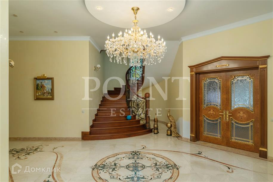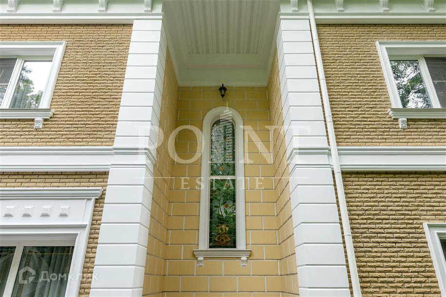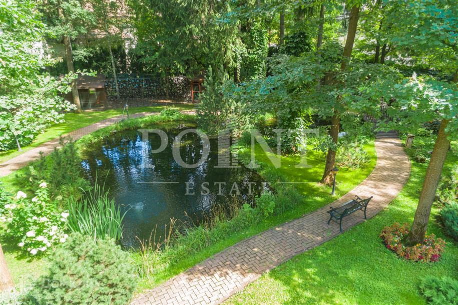 Лот: 101443.   Двухэтажный загородный особняк в классическом стиле площадью 670 кв.м под ключ с мебелью располагается на превосходном просторном участке 50 соток на территории лесного массива в охраняемом коттеджном поселке "Горки-7". Дом оснащен системами видеонаблюдения и сигнализации; предусмотрен дом для охраны. На первом этаже находится гостиная с камином, кухня, столовая, кабинет, две спальни, санузел, бассейн, тренажерный зал, зимний сад, гардеробная, большой холл. Второй этаж занимают четыре спальни с индивидуальными гардеробными и санузлами, а также детская игровая. Отдельно построены: гостевой дом из клееного бруса 230 кв.м с русской баней и бильярдной, гараж на четыре машино-места с квартирой для персонала на втором этаже, а также зимняя и летняя беседки вместимостью до 50 человек. На участке выполнен великолепный ландшафтный дизайн, работает система автоматического полива, высажены декоративные растения, имеется фонтан и пруд с осетрами, сазанами, амурами, линями и толстолобиками. Инфраструктура в этом районе Подмосковья более чем развита. В нескольких минутах езды на машине есть кафе, рестораны, магазины и все, что необходимо для жизни.
