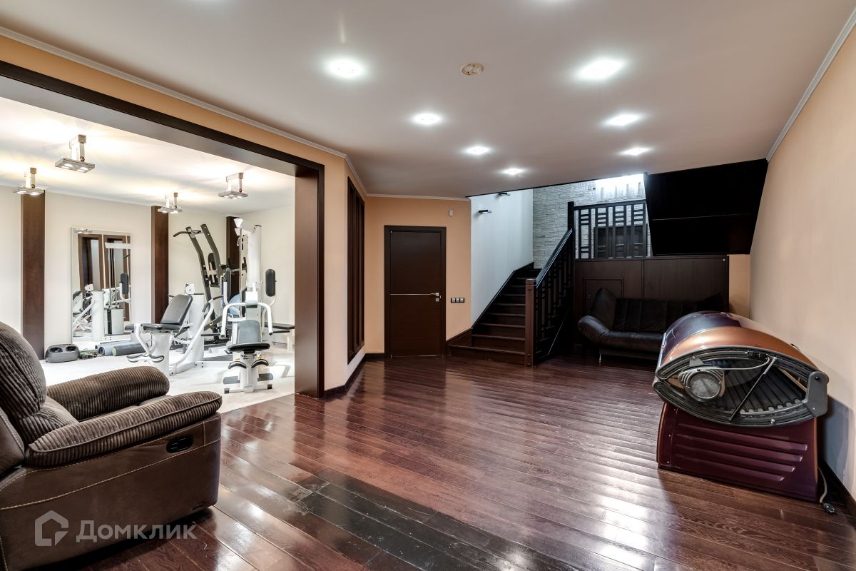 Цокольный этаж: котельная с газовым оборудованием, многоступенчатая система очистки воды, спортзал, сауна с джакузи, солярий, постирочная, санузел.