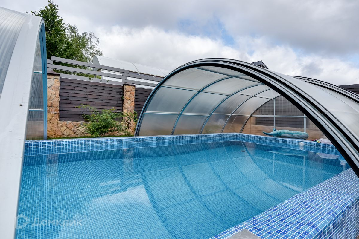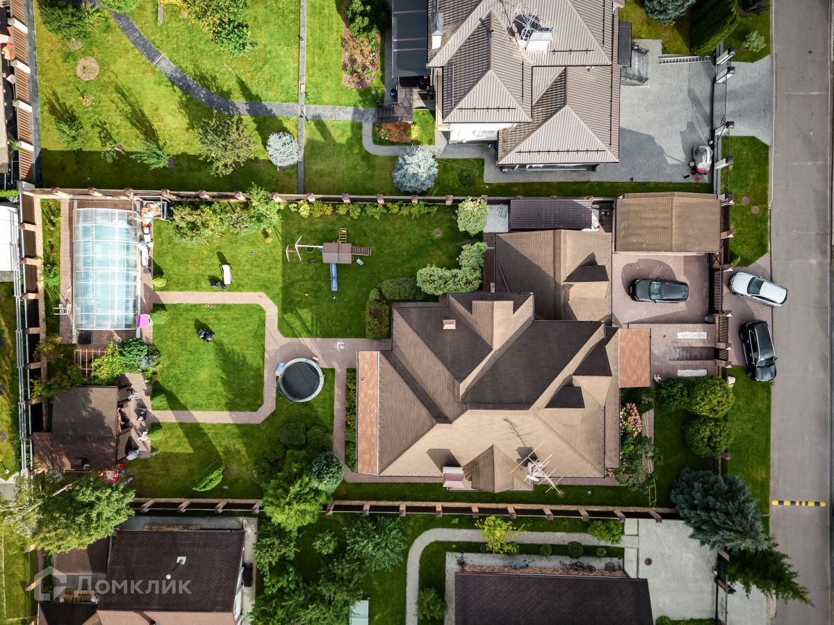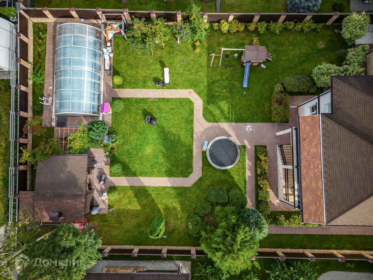 Участок благоустроенный, с ландшафтным дизайном, плодовыми деревьями и кустарниками, цветами. Бассейн с подогревом и фильтрацией. Детская площадка. Оборудованная зона барбекю. Есть обогреваемый гараж на 2 машиноместа, гостевой дом для персонала.