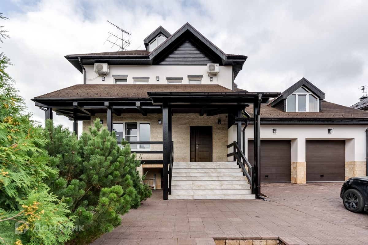 Дом расположен на ровном участке, правильной формы площадью 14,6 соток. Дом монолитно-кирпичный. Входная лестница с подогревом. На первом этаже установлены бронированные окна.