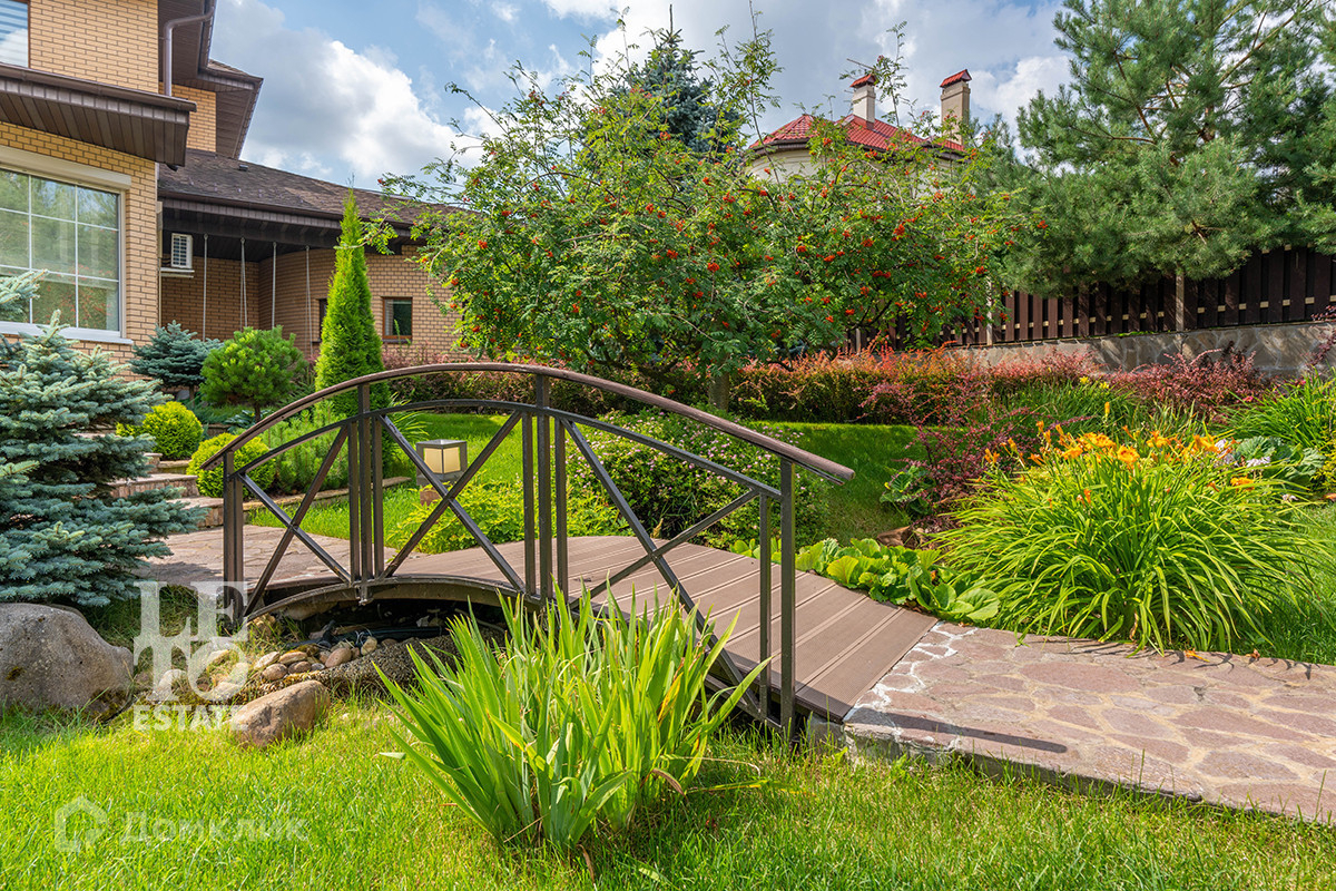 Ландшафтный дизайн завораживает с первого взгляда. Удивительно красивые декоративные кустарники, деревья и хвоя переплетаются в прекрасном танце с плодовыми растениями. В центре участка вашему вниманию представлен ручей, который идеально вписывается в живописный ландшафт.