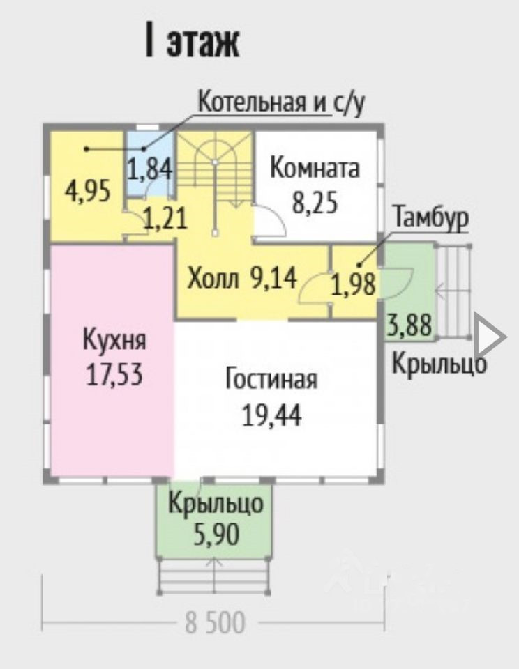1эт-кухня гостиная-38кв.м, комната-9кв.м,холл-9,14кв.м,с/узел