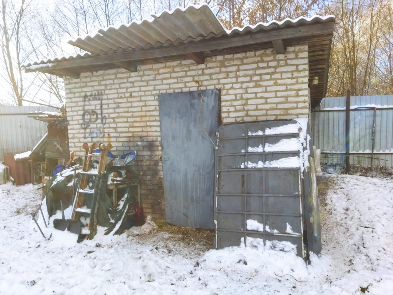 На участке имеется кирпичный сарай 4*4, курятник, смотровая яма из бетонных плит(фундамент под гараж)