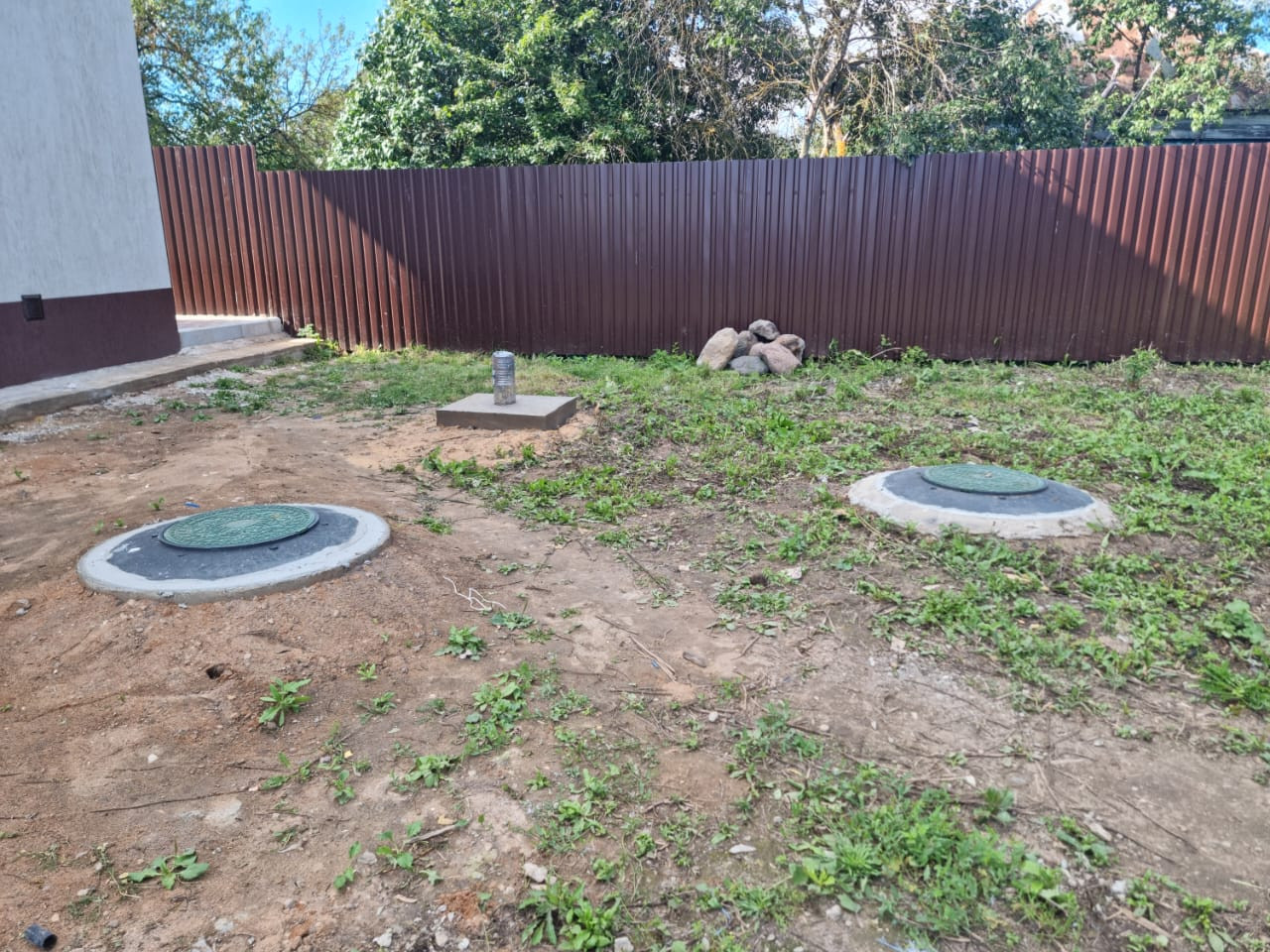 -Огорожен забором из профлиста;