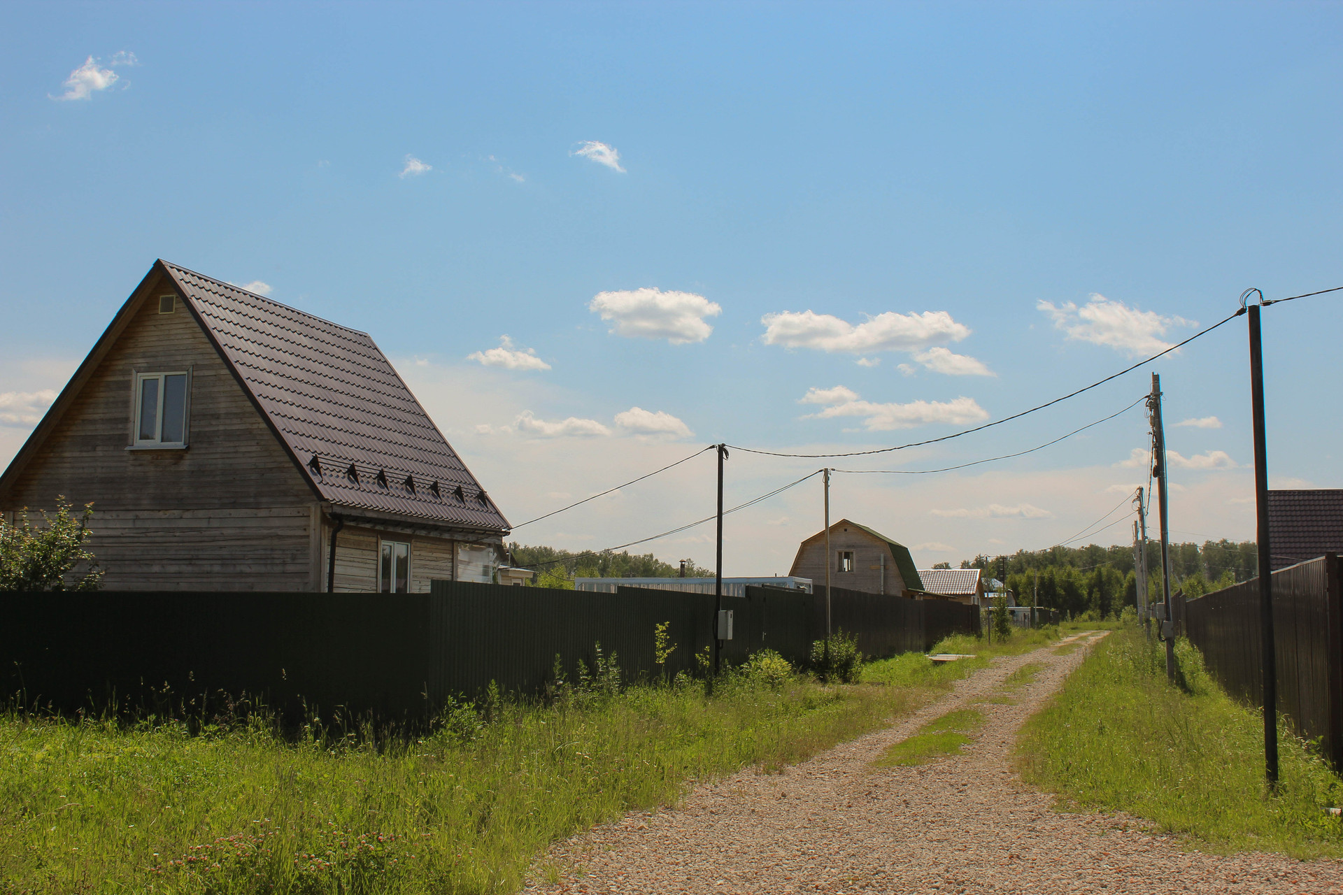Есть освещение, охрана и ограждение поселка, построена детская площадка. Соседи активно строятся.