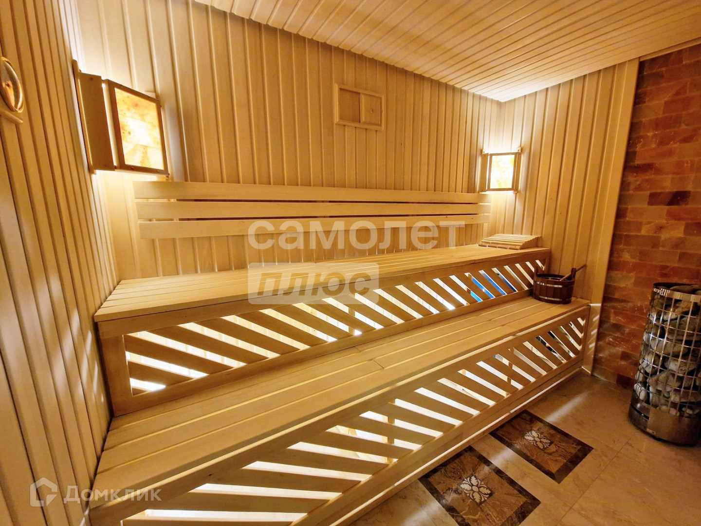 · пол выполнен из керамогранита, стены и потолок из липы, обеспечивая натуральность и комфорт